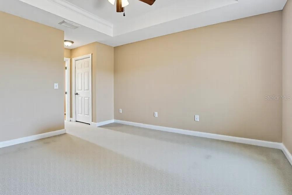 - Built-in Features, Ceiling Fans(s), Eat-in Kitchen, Kitchen/Family Room Combo, Primary Bedroom Main Floor, Solid Wood Cabinets, Split Bedroom, Stone Counters, Tray Ceiling(s), Vaulted Ceiling(s), Walk-In Closet(s), Window Treatments