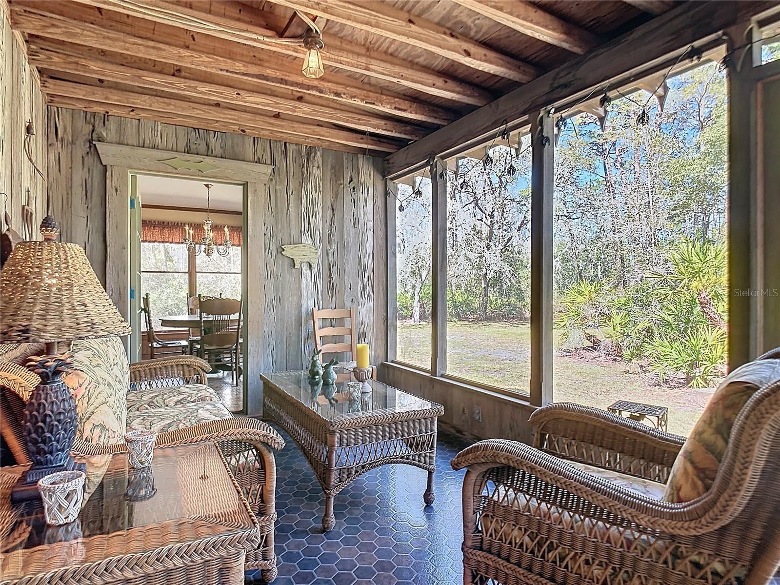 36.8 ACRES OF PRISTINE, WOODED LAND, PRIVACY AT IT BEST and a ONE-OF-A-KIND THREE STORY HOME! Cross between old Florida and Swiss chalet architecture. Clad entirely in old growth pecky cypress and situated among canopying oaks, towering long leaf pines, and stands of old cypress trees, this home was meticulously designed and constructed to blend seamlessly into its natural surroundings. Upon driving up the tree covered driveway, a 72 foot wide front porch welcomes you with plenty of seating space to just relax and enjoy the outdoors. As you walk through the double doors at the entry of the home you are greeted by a large foyer and a living room with a CATHEDRAL CEILING, EXPOSED WOOD BEAMS, a WOOD-BURNING FIREPLACE, and tons of natural light flooding in from windows all the way around allowing the beauty of the private land to be seen from every angle. It’s the kind of space where you can watch deer or turkeys pass by at sunrise or listen to the call of owls from the comfort of your sofa. As you continue through the home, you are treated to woodland views from every room. Connected to the breakfast nook and family room is a large, screened back porch providing another perfect place to slow down and unwind while listening to the swaying pines and vibrant birdlife and watching butterflies float by. The home offers two beautiful loft areas perfect for reading or just having a quiet moment to reflect. These loft areas look out to the wooded property as well as overlooking the foyer and beautiful living room. The largest guest bedroom, which could be a secondary primary suite, has a walk-in closet and is pre-plumbed to have its own private bathroom. A large balcony connected to this bedroom and the loft, offer more space to take in the gorgeous landscape and even stargaze in the dark, night sky. You will find an unfinished attic on the second floor that can be accessed through a full size door. This area is great for storage or could easily be finished as additional living space. As you walk up the stairs to the THIRD FLOOR you will walk into another attic space with windows and natural lighting, and this area could also easily be converted into more additional living space. This home has a SECOND HOME ON THE PROPERTY that has power but just needs water hook up and A/C. With solid heart of pine wood floors, this would be a PERFECT ART STUDIO, WORKSHOP or ADDITIONAL COTTAGE DWELLING UNIT. Across the road, OPEN PASTURE ADDS POTENTIAL FOR HORSES. Let your imagination run wild with the ENDLESS OPPORTUNITIES that this property has to offer with even current future land use allowing for one residents per 5 acres of land also allowing additional dwelling unit, barn, stables, etc! GREAT FUTURE POTENTIAL WITH THIS PROPERTY! This home is located in a beautiful, quiet, rural area tucked away from the hustle and bustle yet has easy access to anywhere you want to go! This home is located about a half hour to all shopping in Clermont on Hwy. 50 and one hour to Orlando International and Tampa International Airports. Easy access to the Clermont and Harris Chain of Lakes. Only a couple minutes from the 800 acre Pasture Reserve with miles of hiking trails. Just about 30 minutes to Colt Creek State Park, Lake Louisa State Park, Green Swamp East Tract and just about one hour to Ocala National Forest. Don’t wait to come see this beautiful piece of paradise!