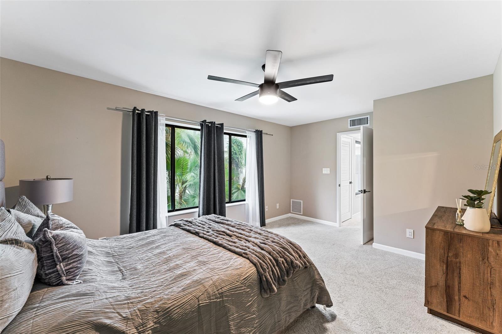 - Ceiling Fans(s), Eat-in Kitchen, High Ceilings, Open Floorplan, PrimaryBedroom Upstairs, Solid Surface Counters, Stone Counters, Walk-In Closet(s), Wet Bar