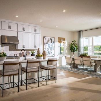 Award winning model home in Laurel Pointe Lake Nona. The Marsanne's welcoming covered entry with double doors opens onto the inviting foyer, and views to the spacious great room, casual dining area, and desirable covered lanai beyond. The well-designed gourmet kitchen is equipped with a large center island with breakfast bar, plenty of counter and cabinet space, and ample walk-in pantry. The delightful primary bedroom suite is enhanced by dual walk-in closets and deluxe primary bath with dual-sink vanity, large soaking tub, luxe shower, and private water closet. Central to a generous loft, secondary bedrooms feature sizable closets, one with private bath, the other with shared hall bath. Additional highlights include a desirable first floor bedroom with walk-in closet, private bath and sitting room making it a lovely multi-gen suite. There is a versatile flex room off the foyer, convenient powder room, centrally located laundry, and additional storage. The Marsanne's furnishings are negotiable.