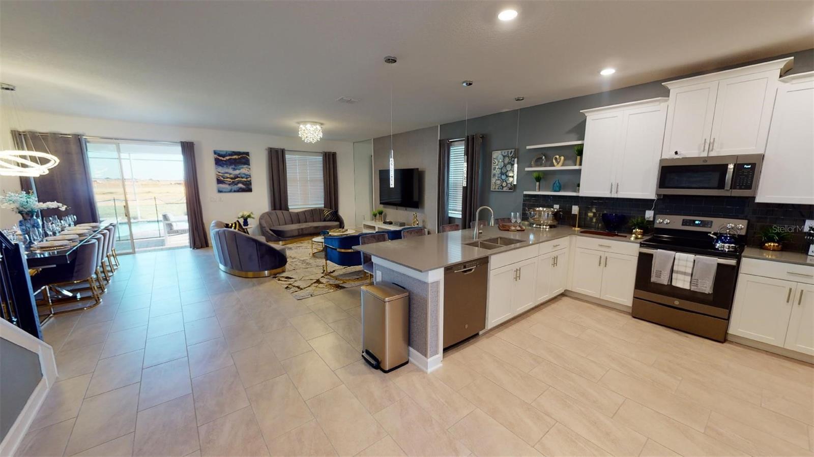 - High Ceilings, Living Room/Dining Room Combo, Open Floorplan, Thermostat, Window Treatments