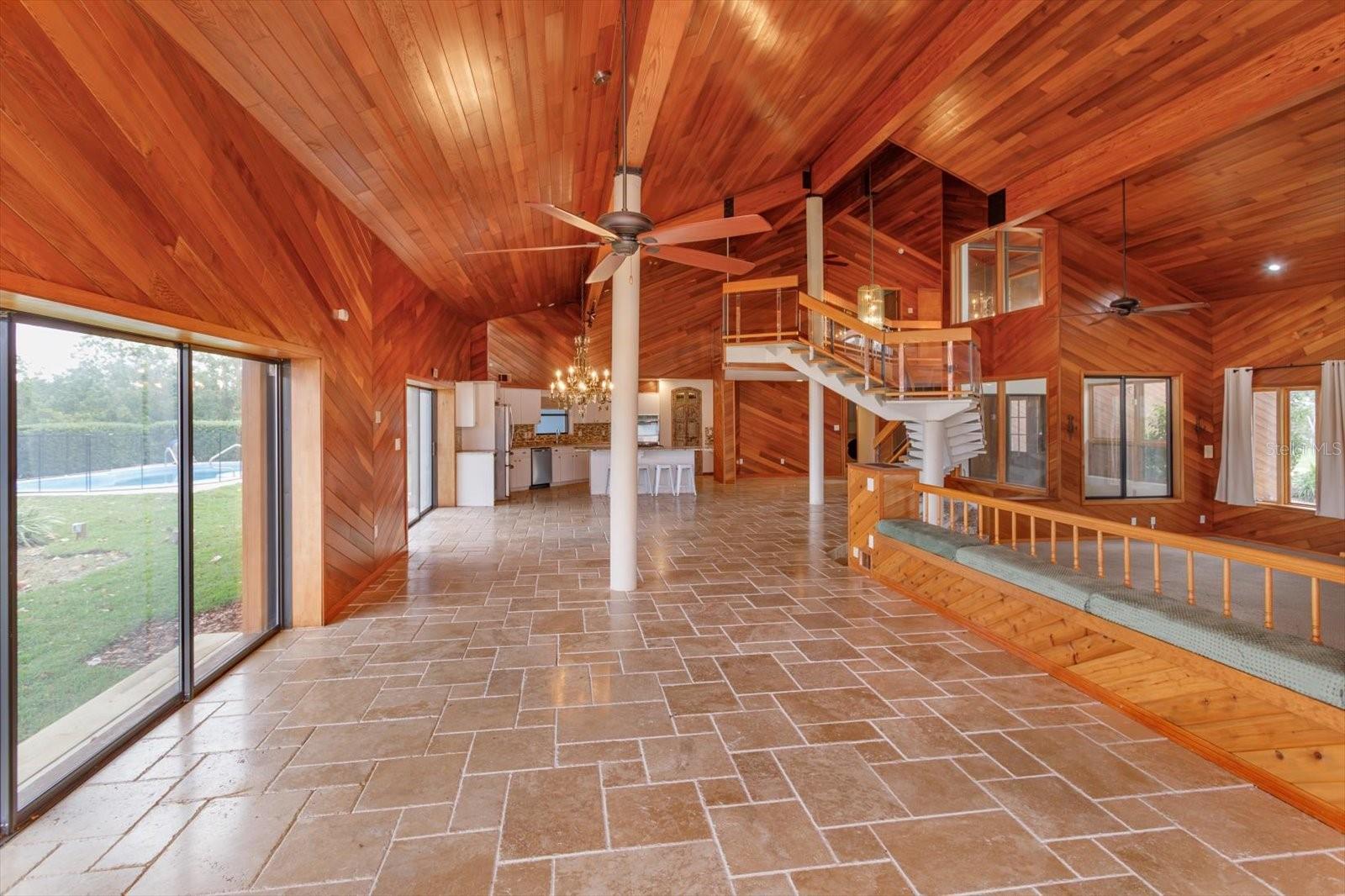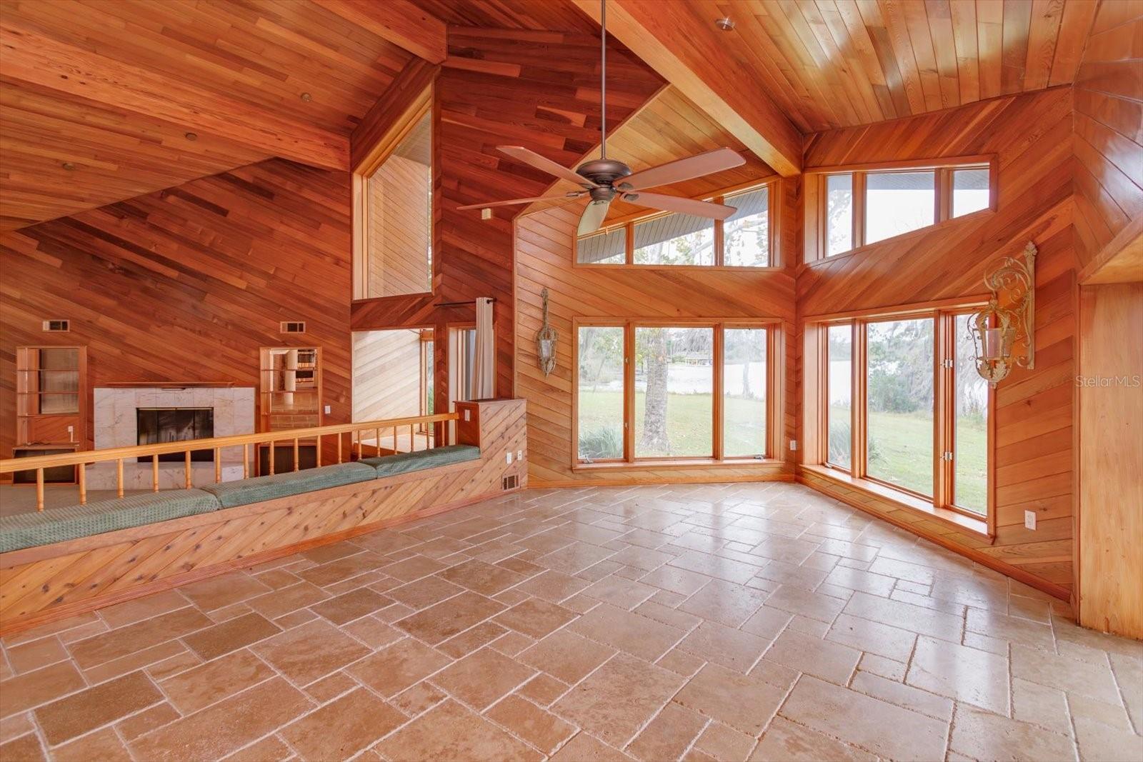 - Cathedral Ceiling(s), Ceiling Fans(s), Eat-in Kitchen, High Ceilings, Kitchen/Family Room Combo, Open Floorplan, Primary Bedroom Main Floor, Solid Surface Counters, Walk-In Closet(s)
