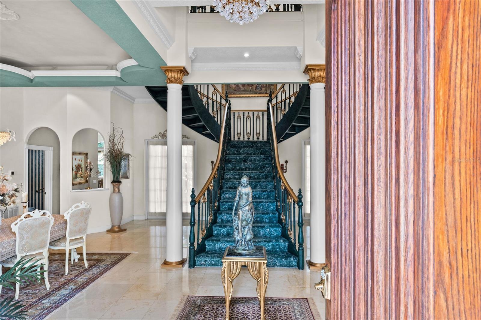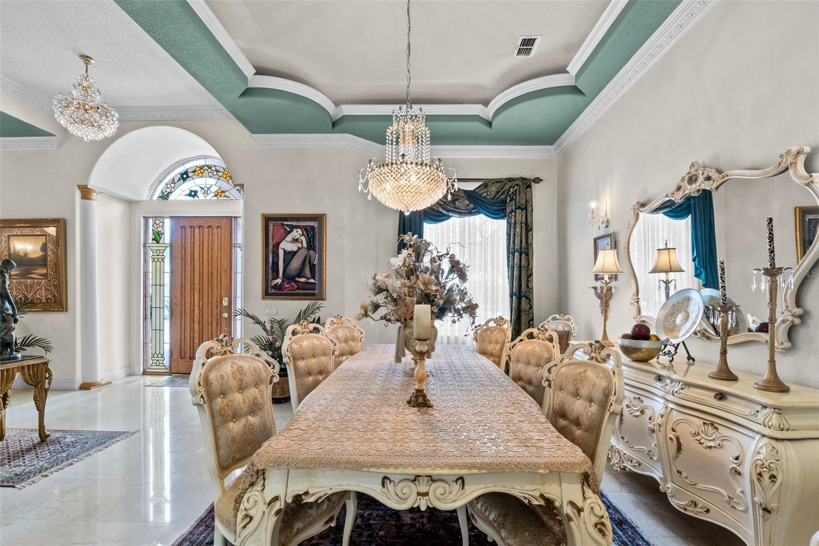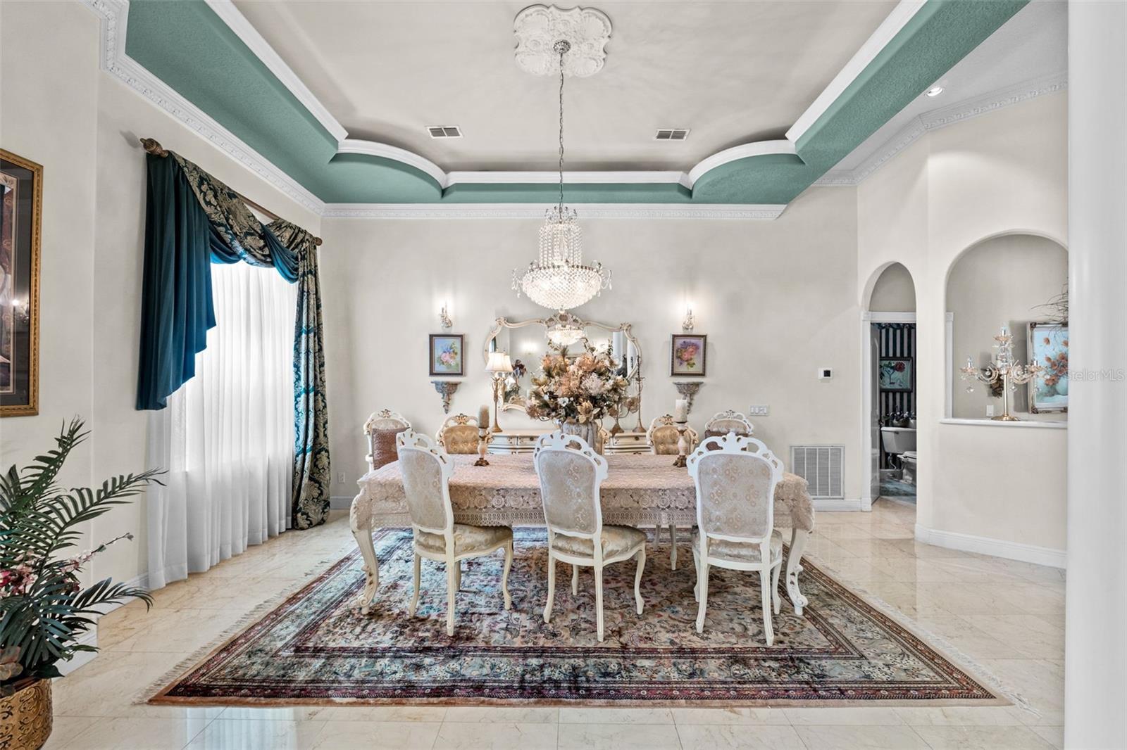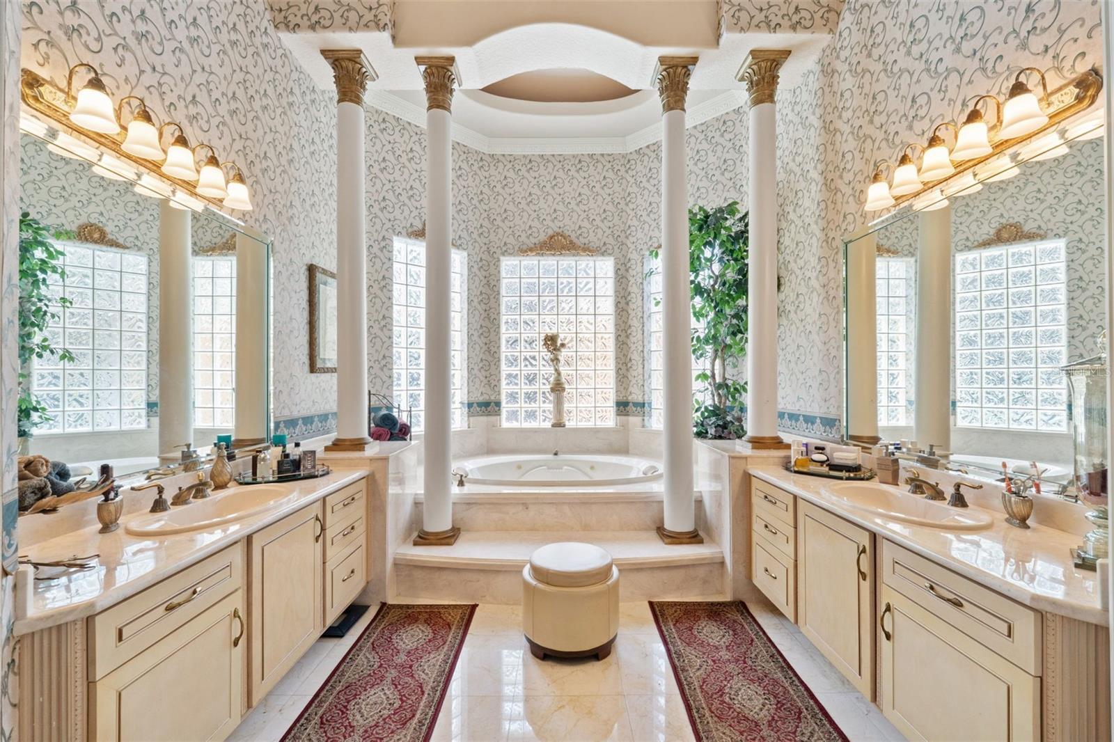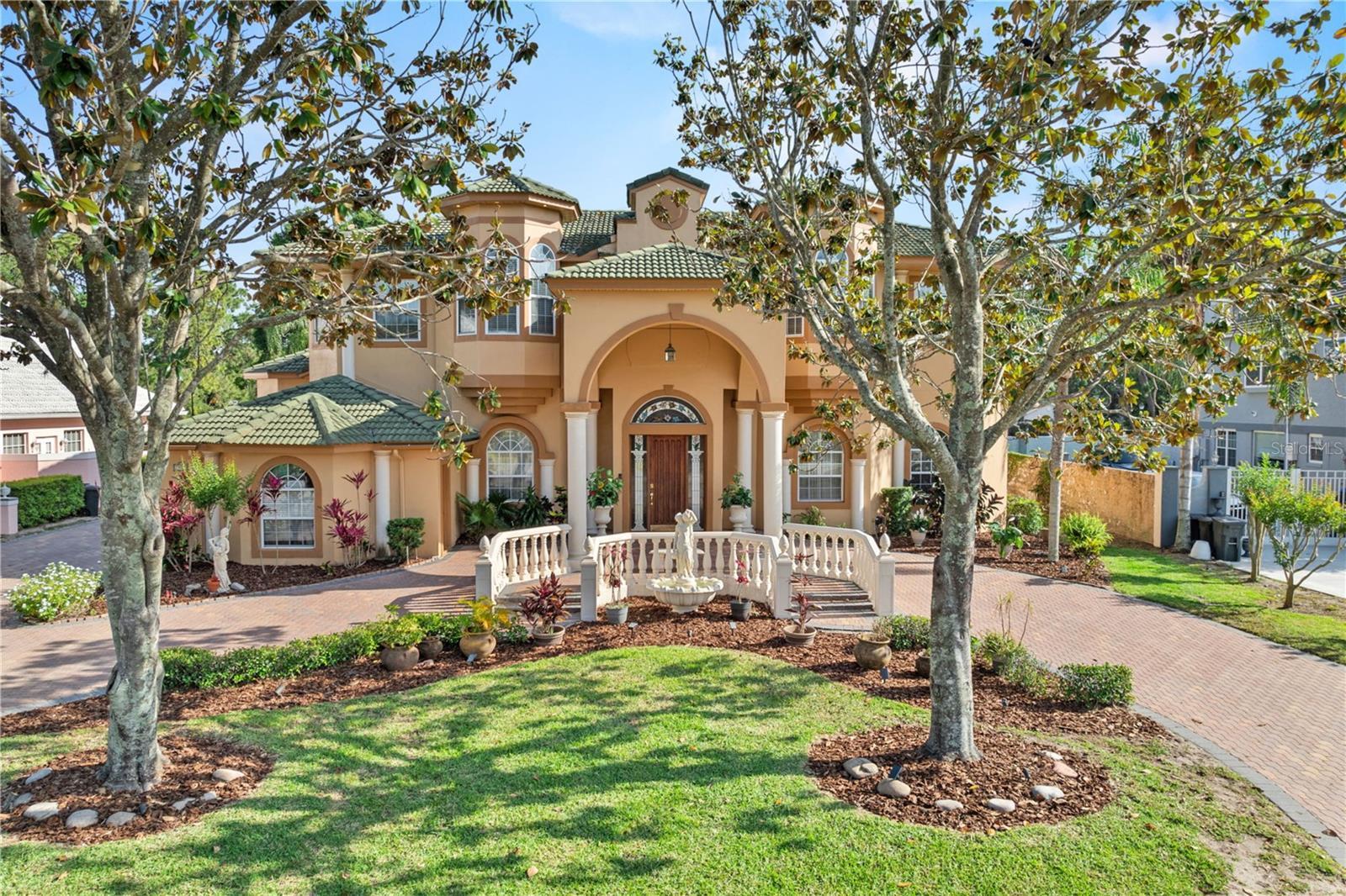 MOTIVATED SELLER. A Rare Opportunity Awaits: Own a Custom Estate in Coveted South Bay. Discover this exceptional, custom-designed residence in the highly desirable South Bay community of Southwest Orlando's Dr. Phillips area. Crafted by a renowned architect, this magnificent single-family home exudes sophistication from the moment you arrive via the improved brick paver circular driveway. Step inside this impeccably maintained home to experience refined living, greeted by a striking split staircase. The formal living spaces showcase soaring 16' pocket tray ceilings and designer chandeliers, setting a tone of understated elegance. The state-of-the-art kitchen, recently modernized with high-end GE Café appliances, seamlessly flows into the expansive family room, perfect for grand entertaining. Each of the five spacious bedroom suites offers a private sanctuary with walk-in closets and en-suite bathrooms. This home boasts superior construction, including solid block and steel-wrapped rafters, enhanced by a new air conditioning system. The screened outdoor living space is an entertainer's dream, featuring a stunning custom pool, spa, and fountain, plus a convenient pool house with a shower and grill. While move-in ready, this distinguished residence presents a unique canvas for the discerning buyer to apply their personal vision, offering an unparalleled return on investment for those ready to customize and elevate this luxurious space. South Bay offers residents exclusive amenities including private tennis courts and, most notably, private dock access to the renowned Butler Chain of Lakes via Lake Tibet. Its premier location provides unparalleled convenience to world-class dining on Restaurant Row, the Bay Hill Golf Course, major theme parks, and exemplary Dr. Phillips schools. This rare opportunity to own a custom estate has created an opening for an attractive and expedited transaction. The Sellers are highly motivated and receptive to all qualified offers. Bring us your vision.