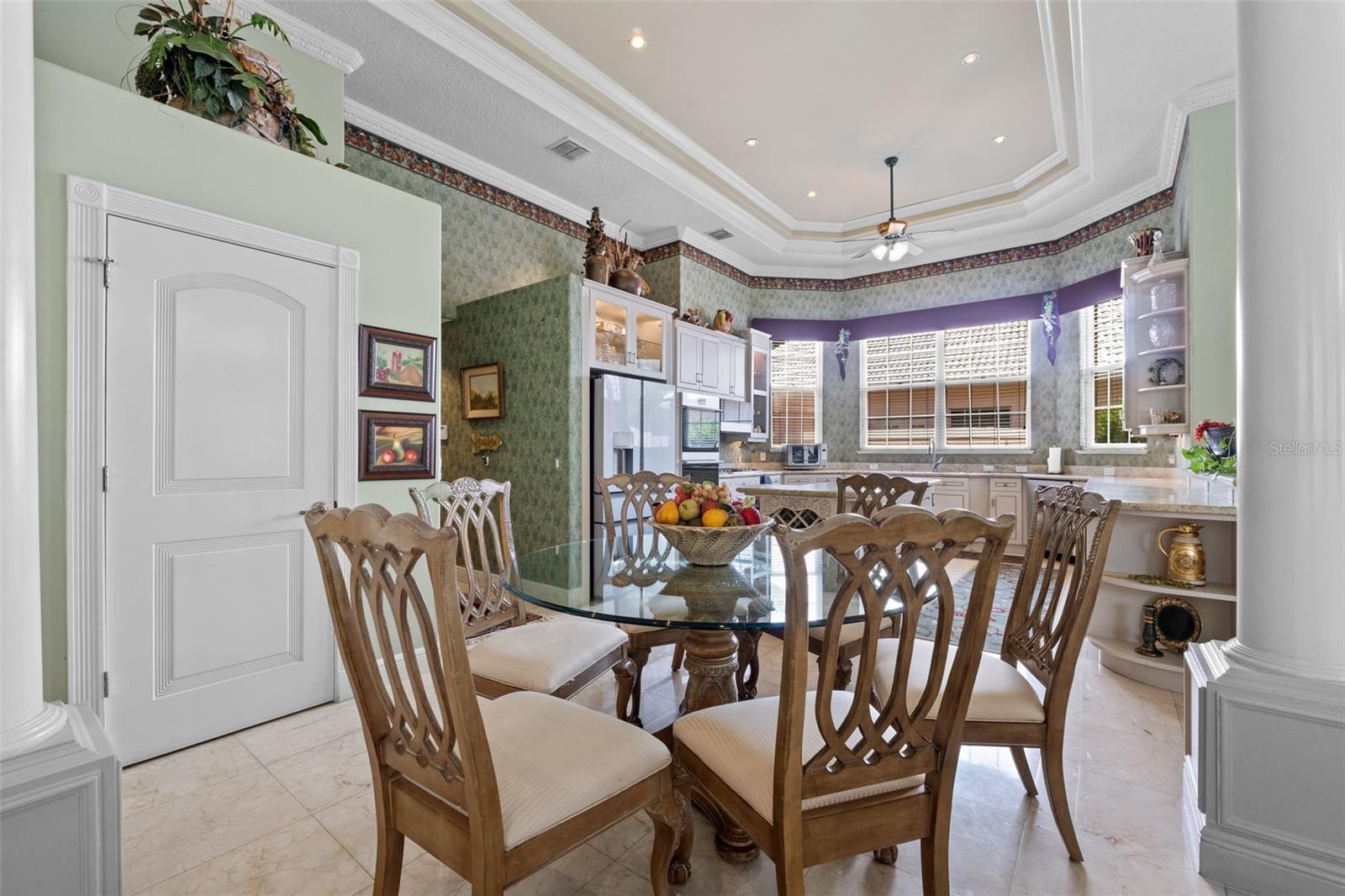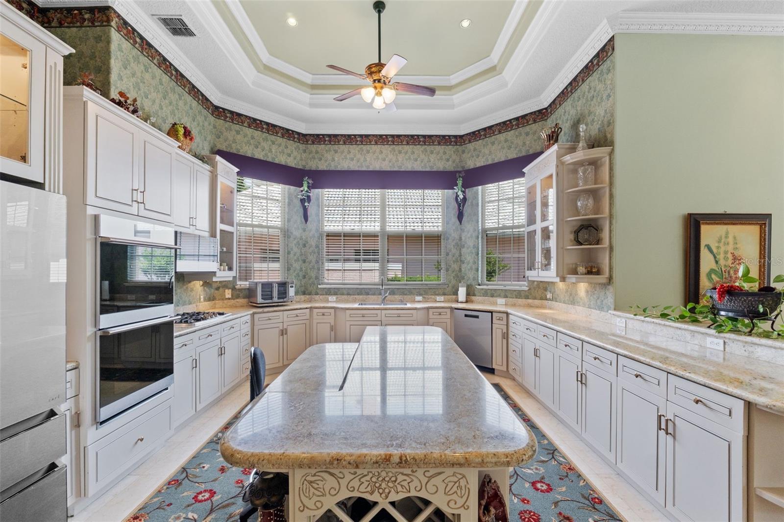 - Built-in Features, Cathedral Ceiling(s), Ceiling Fans(s), Chair Rail, Coffered Ceiling(s), Crown Molding, Eat-in Kitchen, High Ceilings, Kitchen/Family Room Combo, Living Room/Dining Room Combo, Open Floorplan, Primary Bedroom Main Floor, Split Bedroom, Stone Counters, Thermostat, Walk-In Closet(s), Window Treatments