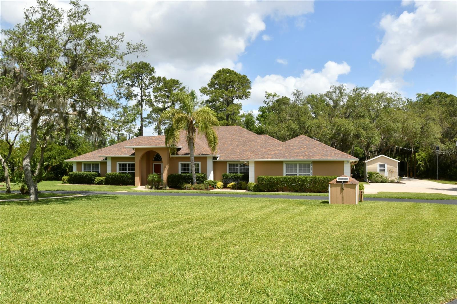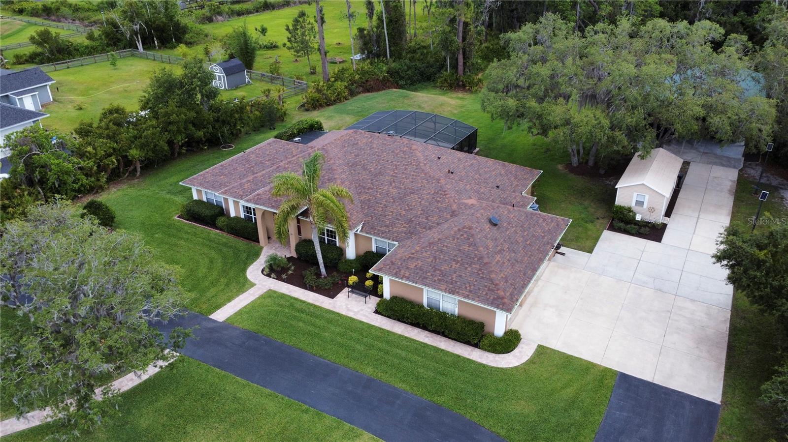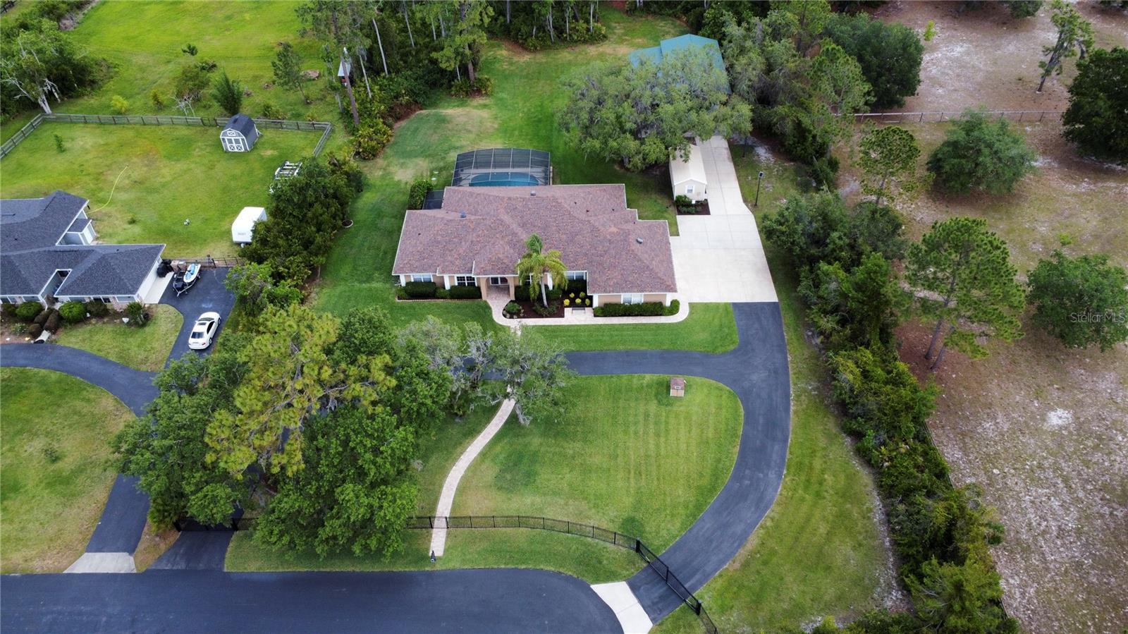 Welcome to your dream retreat in the highly desired Old Mill Run community of Tavares—this stunning custom-built 4-bedroom, 3-bathroom pool home sits on a beautifully landscaped one-acre lot, offering the perfect blend of luxury, comfort, and privacy. Designed with a spacious open and split floor plan, this immaculate home features a large kitchen with upgraded counters and appliances, upgraded porcelain tile flooring throughout, a brand-new roof with solar-powered attic fans, freshly painted exterior, new gutters, new pool screens, and a generously extended circular driveway. The outdoor space is truly exceptional and unique, with a large 36x48 pole barn equipped with 30 amp service that can easily be enclosed if desired, and an insulated workshop with full power—ideal for hobbies, storage, or even a business setup. The gated property, which borders a 30 acre farm, includes a solar-powered remote gate, providing peace of mind and seclusion in your own private sanctuary. Just ten minutes from the charming towns of Mt. Dora and Tavares, and only a fifteen minute commute to the 429, you’ll enjoy the serenity of country living while staying close to everything. We challenge you to find another home this meticulously maintained—don’t miss the opportunity to make it yours.