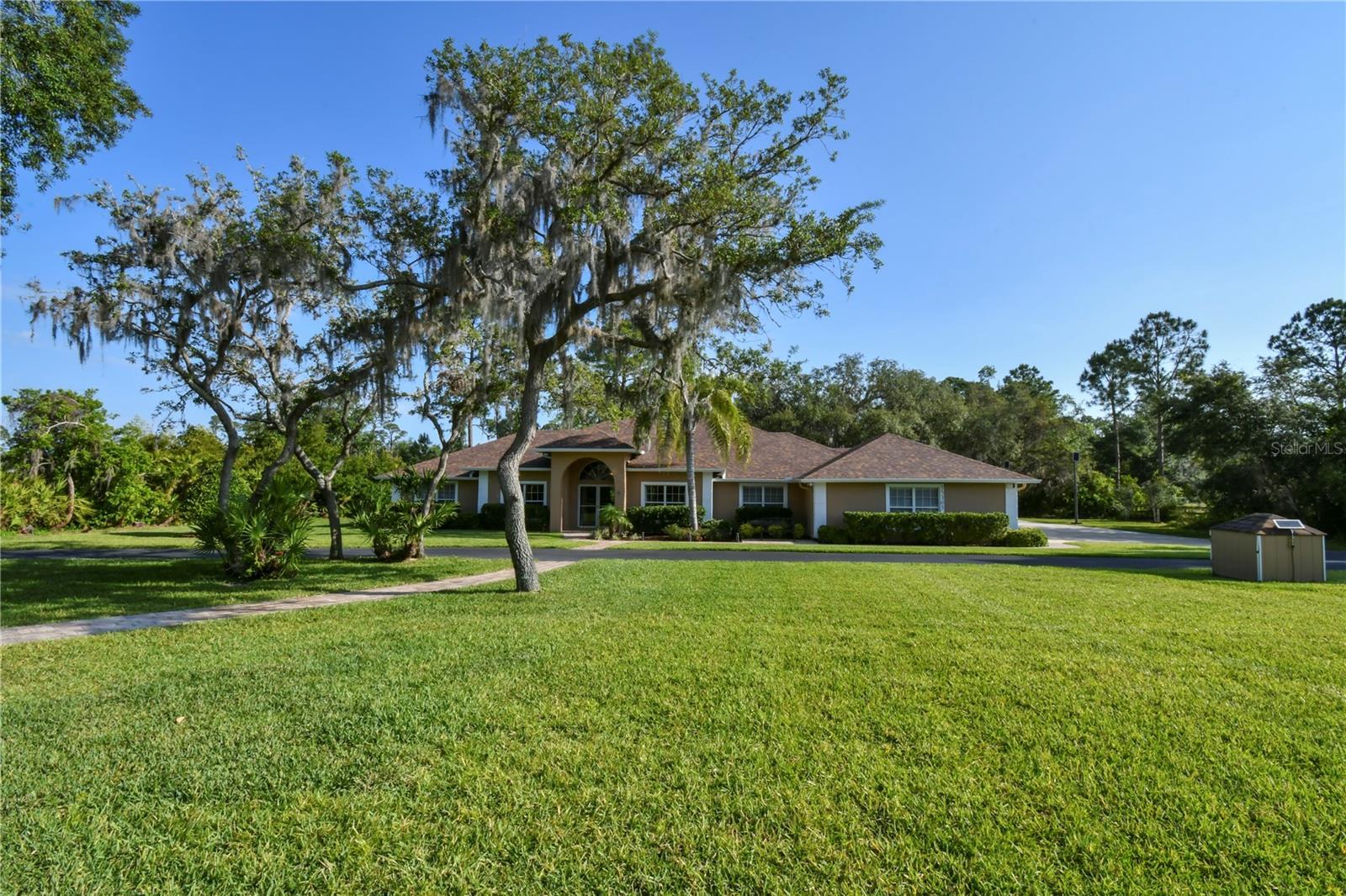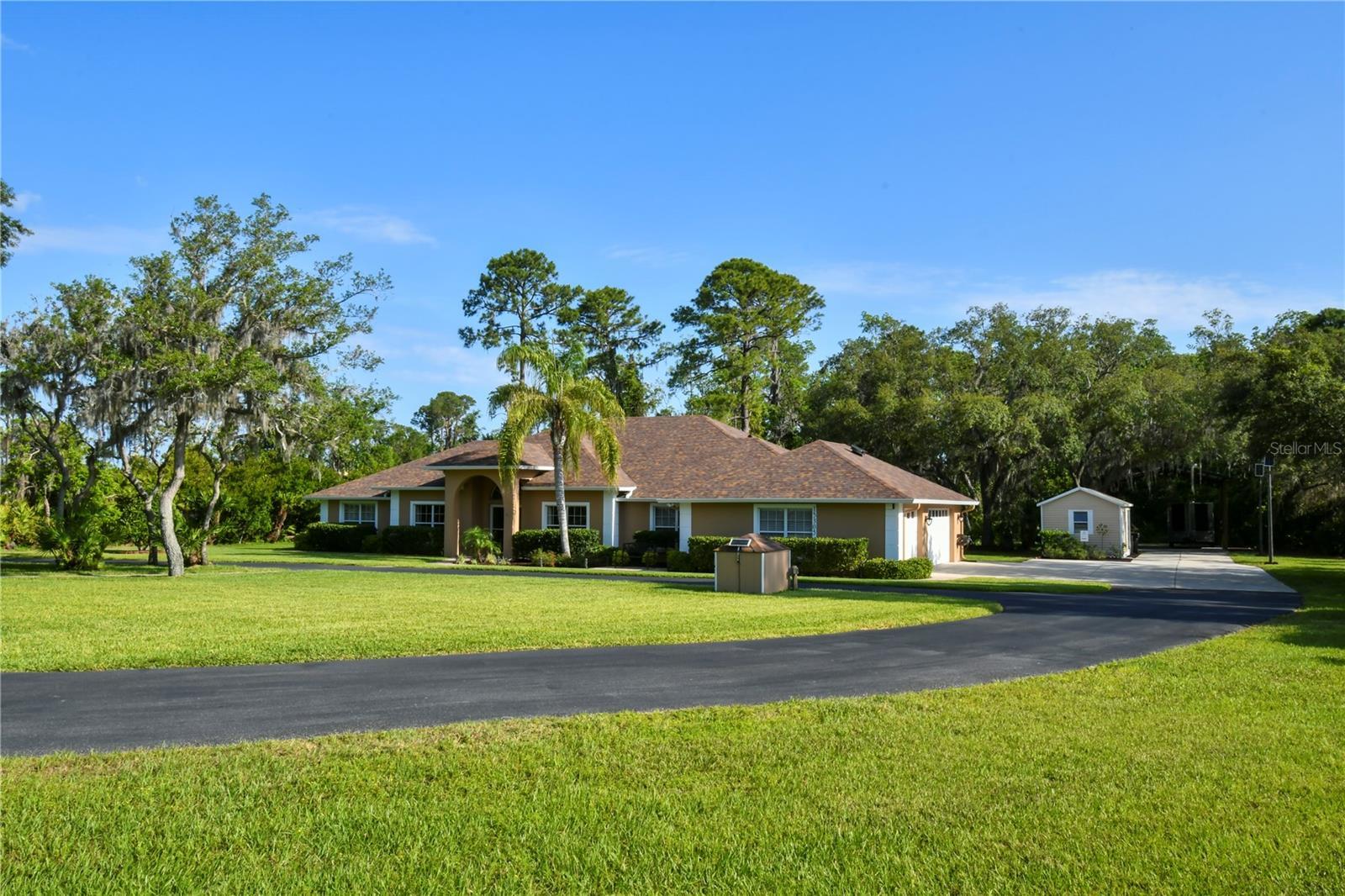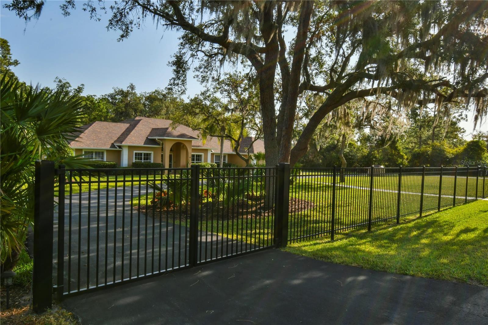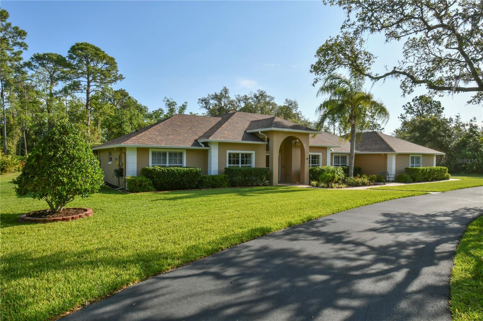 Welcome to your dream retreat in the highly desired Old Mill Run community of Tavares—this stunning custom-built 4-bedroom, 3-bathroom pool home sits on a beautifully landscaped one-acre lot, offering the perfect blend of luxury, comfort, and privacy. Designed with a spacious open and split floor plan, this immaculate home features a large kitchen with upgraded counters and appliances, upgraded porcelain tile flooring throughout, a brand-new roof with solar-powered attic fans, freshly painted exterior, new gutters, new pool screens, and a generously extended circular driveway. The outdoor space is truly exceptional and unique, with a large 36x48 pole barn equipped with 30 amp service that can easily be enclosed if desired, and an insulated workshop with full power—ideal for hobbies, storage, or even a business setup. The gated property, which borders a 30 acre farm, includes a solar-powered remote gate, providing peace of mind and seclusion in your own private sanctuary. Just ten minutes from the charming towns of Mt. Dora and Tavares, and only a fifteen minute commute to the 429, you’ll enjoy the serenity of country living while staying close to everything. We challenge you to find another home this meticulously maintained—don’t miss the opportunity to make it yours.