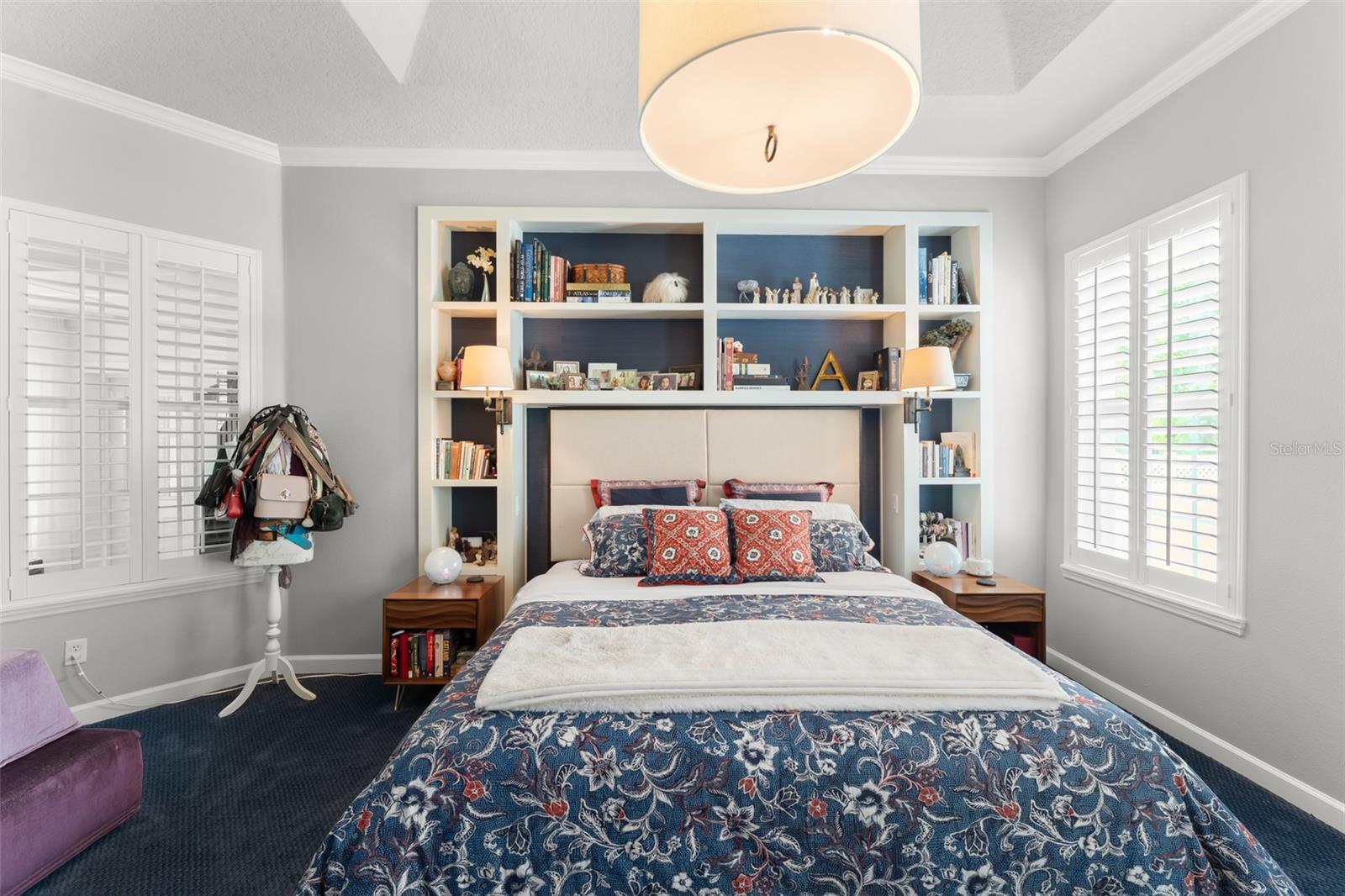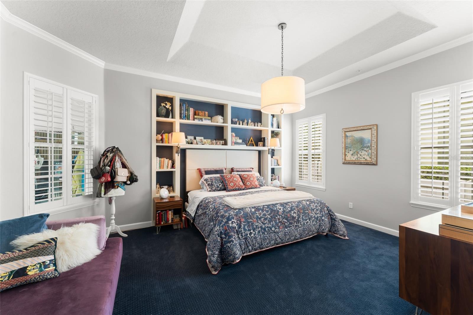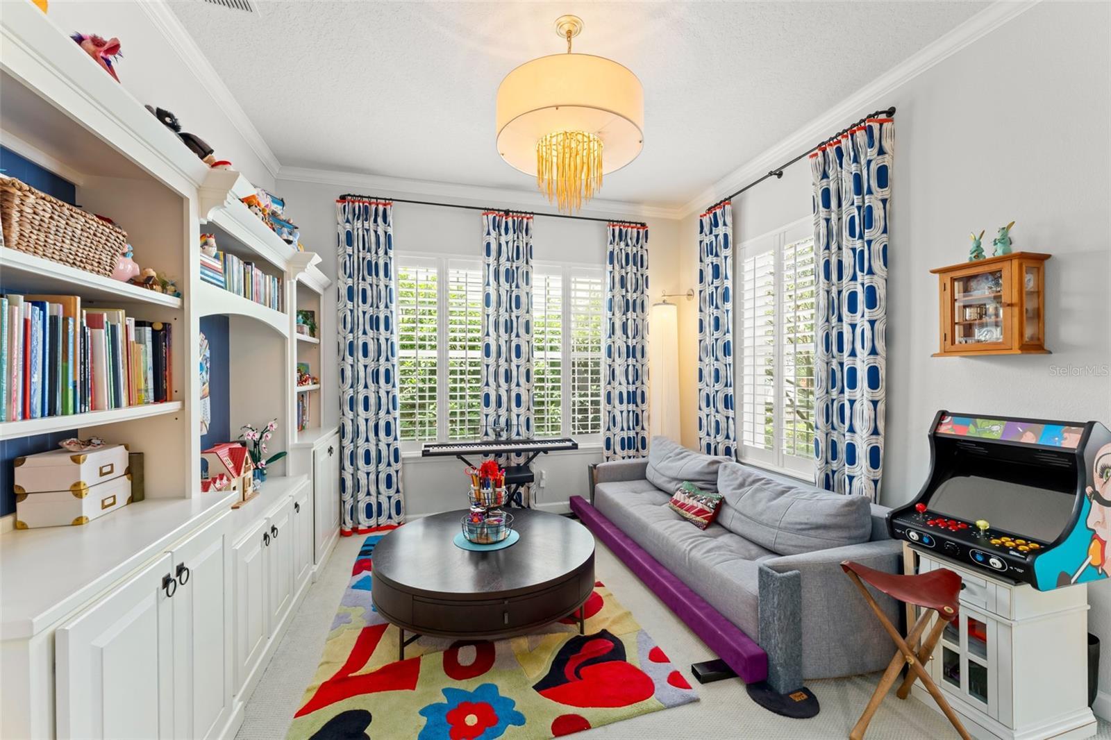 - Built-in Features, Ceiling Fans(s), Crown Molding, Kitchen/Family Room Combo, Open Floorplan, Primary Bedroom Main Floor, Stone Counters, Walk-In Closet(s), Window Treatments