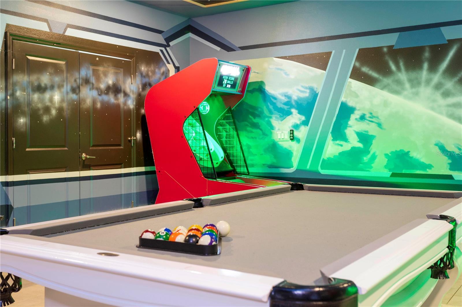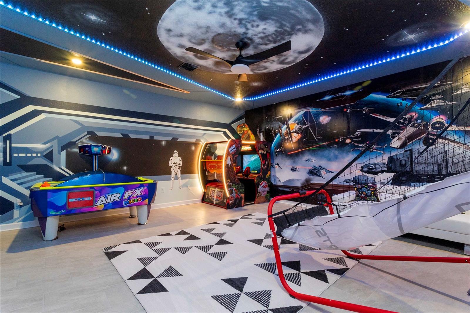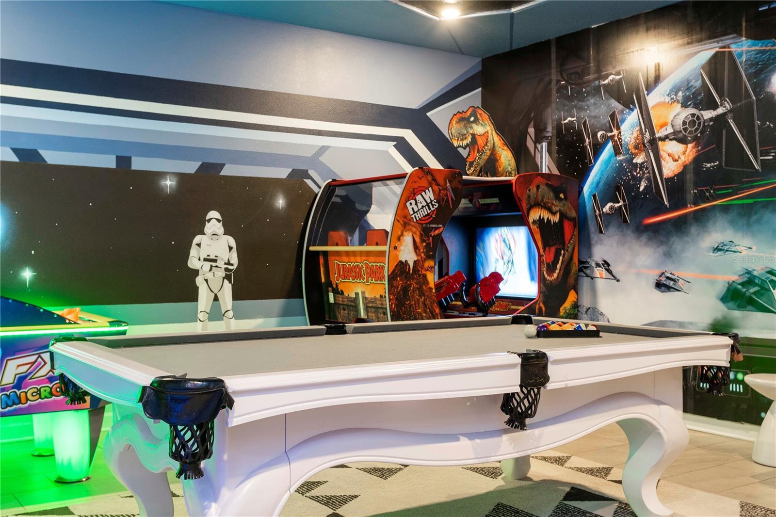 Check out these Numbers!!! 2022 April-Dec: $203026 2023 Yr: $246271 2024 Yr: $181007 9 Bedroom! Storey Lake! Star Wars-Themed Game Room! Get ready to experience the ultimate vacation home and investment property in the popular Storey Lake Resort in Kissimmee! *Fully furnished home. *Two bedrooms located on the main floor—perfect for guests of all ages. *Star Wars-themed game room complete with arcade games for hours of indoor fun. *Private screened-in pool with peaceful pond views and no rear neighbors! *Bright and open kitchen, dining, and living area perfect for entertaining large groups. *Leased solar panels help reduce monthly electric bills, providing energy savings for the new owner. **Storey Lake Resort has world-class amenities: Two expansive clubhouses each featuring a lazy river, resort-style pools, and tiki bars serving delightful food and beverages. Dual water slides, a splash pad, and a kid-friendly beach entry pool. Mini-golf course, basketball, and sand volleyball courts. State-of-the-art fitness centers. Kayak and canoe rentals. Private cabanas, picnic areas with fire pits, and a boardwalk for relaxation and socializing. *24-hour gated entry ensuring a secure and peaceful environment. *Located just minutes from Walt Disney World, Universal Studios, SeaWorld, and premier shopping and dining options, this home is perfectly positioned for both personal enjoyment and rental income potential.