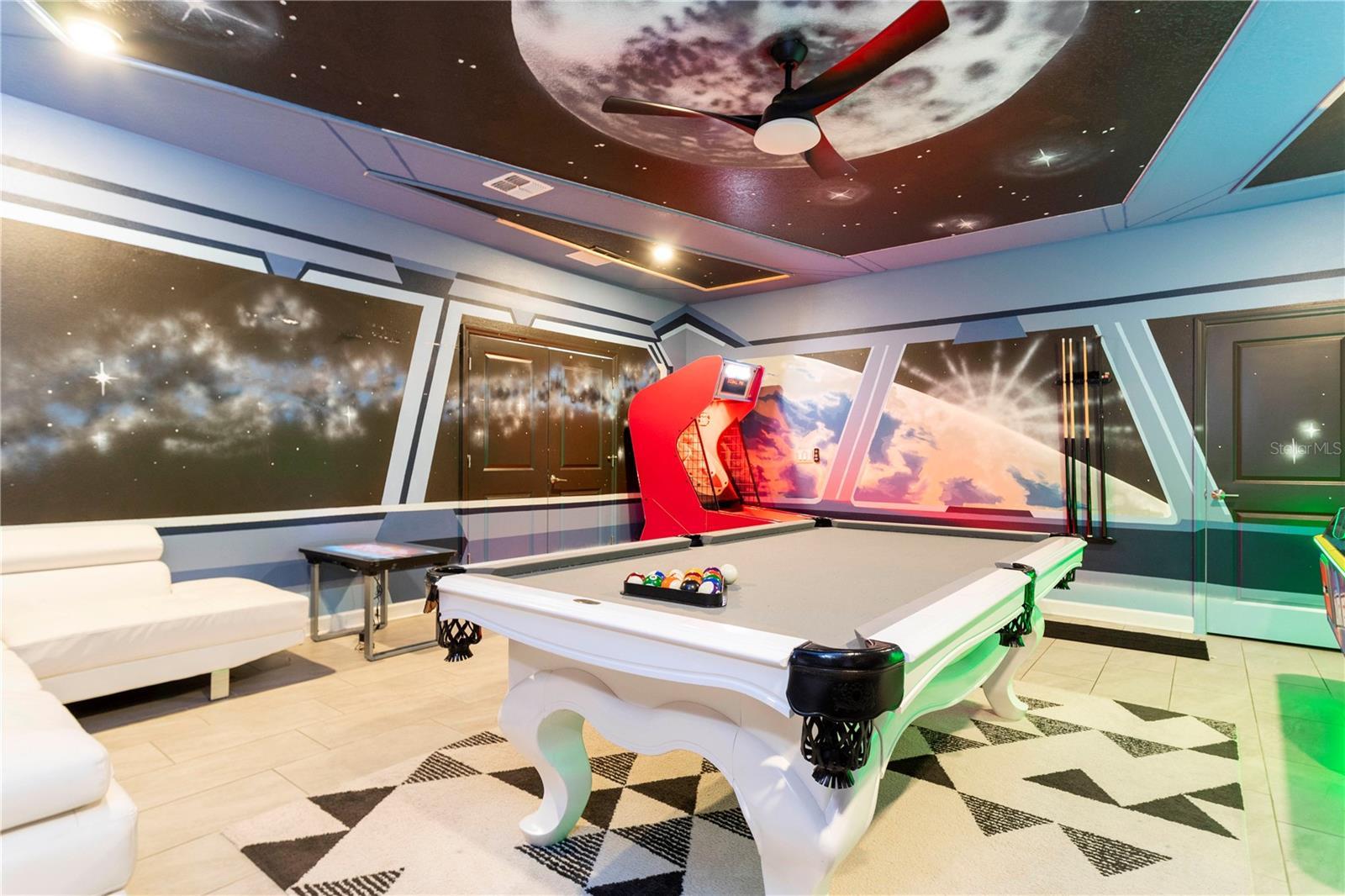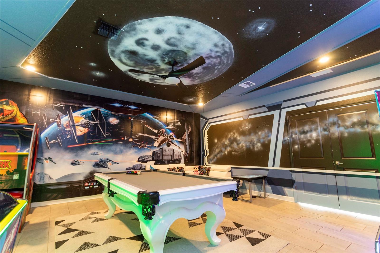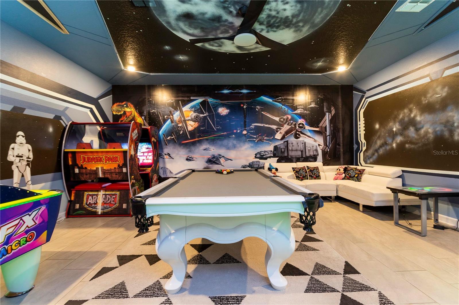 Check out these Numbers!!! 2022 April-Dec: $203026 2023 Yr: $246271 2024 Yr: $181007 9 Bedroom! Storey Lake! Star Wars-Themed Game Room! Get ready to experience the ultimate vacation home and investment property in the popular Storey Lake Resort in Kissimmee! *Fully furnished home. *Two bedrooms located on the main floor—perfect for guests of all ages. *Star Wars-themed game room complete with arcade games for hours of indoor fun. *Private screened-in pool with peaceful pond views and no rear neighbors! *Bright and open kitchen, dining, and living area perfect for entertaining large groups. *Leased solar panels help reduce monthly electric bills, providing energy savings for the new owner. **Storey Lake Resort has world-class amenities: Two expansive clubhouses each featuring a lazy river, resort-style pools, and tiki bars serving delightful food and beverages. Dual water slides, a splash pad, and a kid-friendly beach entry pool. Mini-golf course, basketball, and sand volleyball courts. State-of-the-art fitness centers. Kayak and canoe rentals. Private cabanas, picnic areas with fire pits, and a boardwalk for relaxation and socializing. *24-hour gated entry ensuring a secure and peaceful environment. *Located just minutes from Walt Disney World, Universal Studios, SeaWorld, and premier shopping and dining options, this home is perfectly positioned for both personal enjoyment and rental income potential.