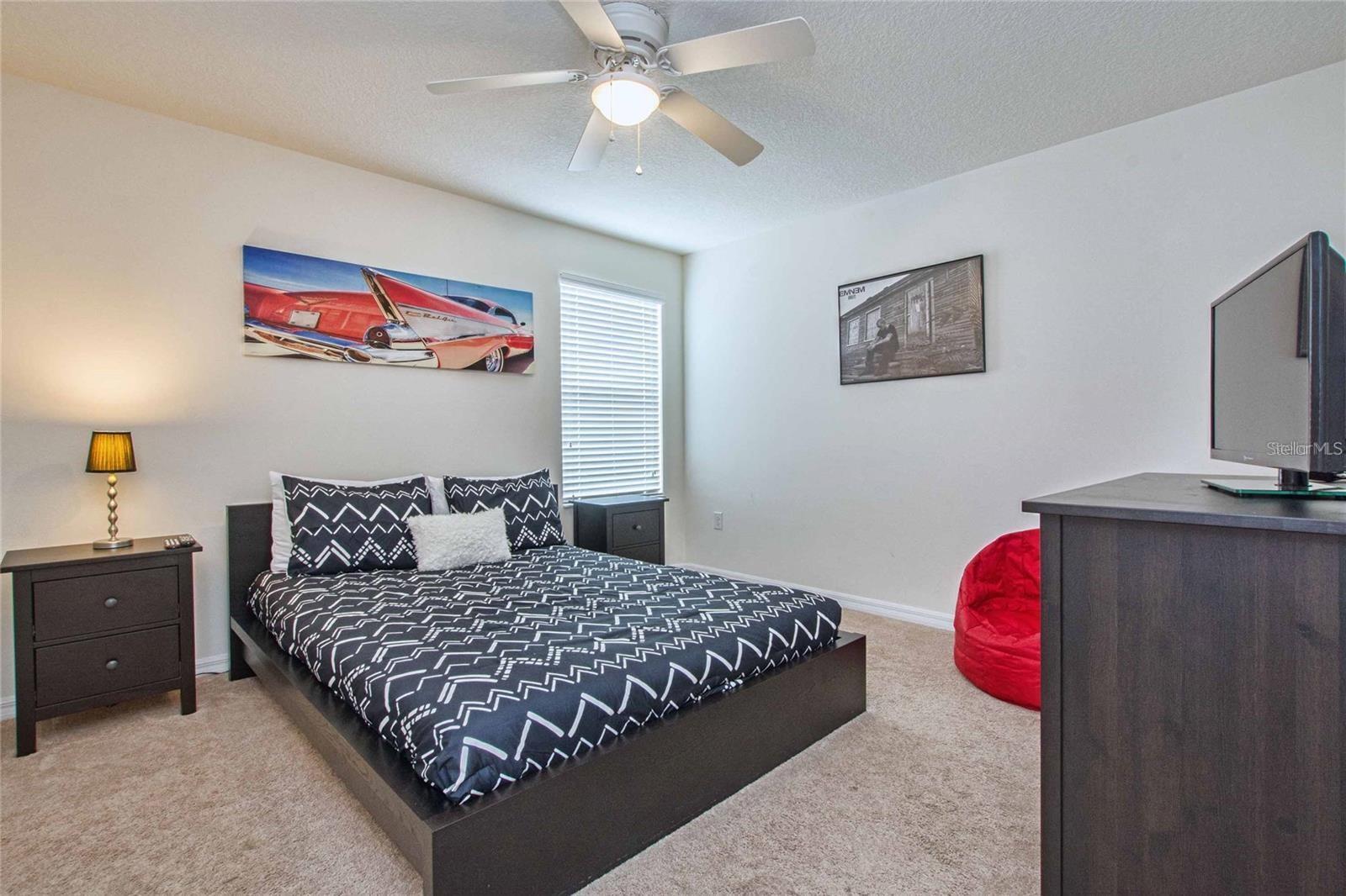 Nestled in the gated Veranda Palms community, this stunning 5-bedroom, 4.5-bath fully furnished home offers exceptional space and comfort for long-term living. The home features a private south-facing pool with tranquil conservation and pond views, creating a peaceful outdoor setting ideal for everyday enjoyment. Inside, the open-concept layout includes a formal dining room, a well-appointed kitchen with granite countertops, maple cabinetry, and stainless steel appliances, along with a bright family room overlooking the pool. The primary suite on the main level offers a spa-style bathroom with dual sinks, garden tub, walk-in shower, and a spacious walk-in closet. Upstairs, a second suite and three additional generously sized bedrooms provide flexibility for family, guests, or work-from-home needs. Ceramic tile accents the main living areas, with plush carpeting in the bedrooms, and granite countertops throughout all bathrooms. Conveniently located near shopping, dining, major roadways, and daily amenities, this home offers both privacy and accessibility. Ideal for tenants seeking a long-term residence in a premier gated community. Schedule your private showing today. No pets.