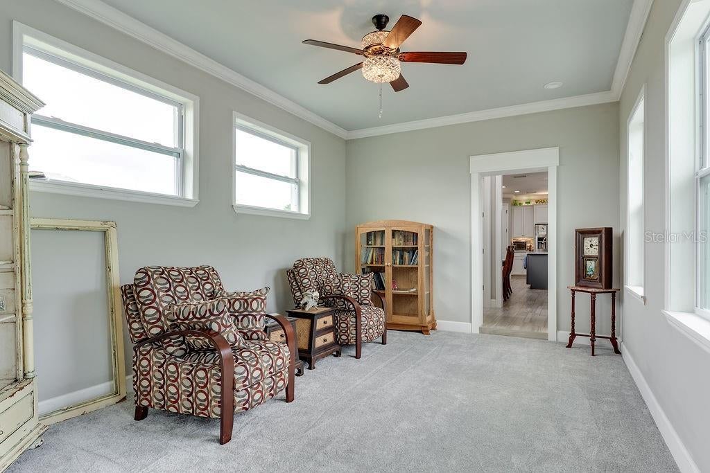 - Built-in Features, Ceiling Fans(s), Crown Molding, Eat-in Kitchen, High Ceilings, Open Floorplan, Primary Bedroom Main Floor, Split Bedroom, Walk-In Closet(s)