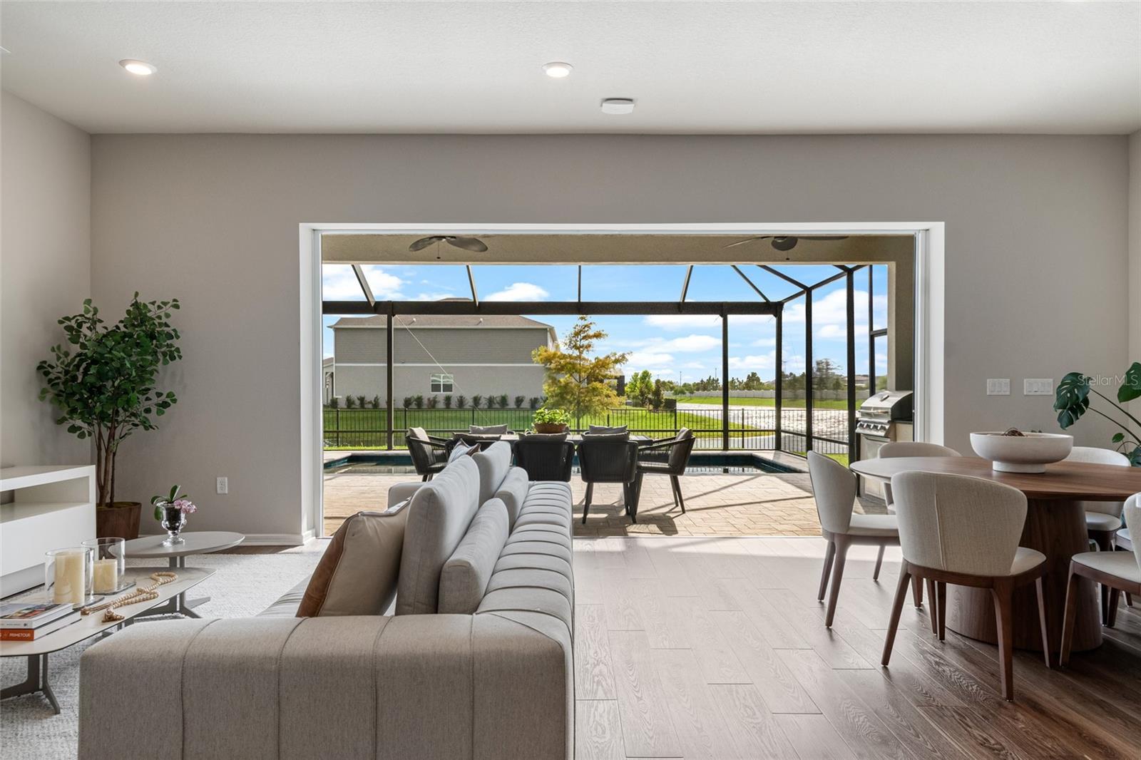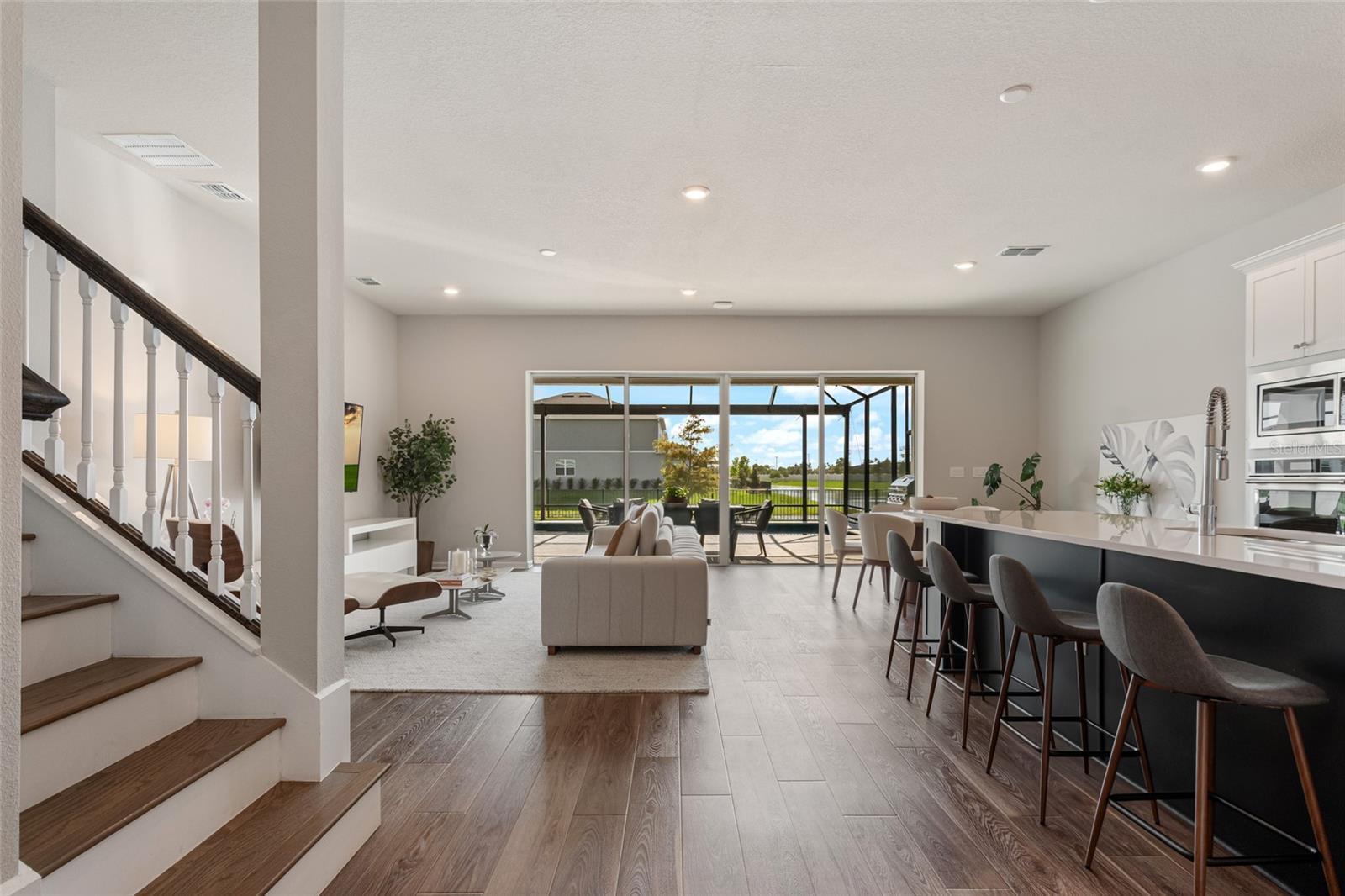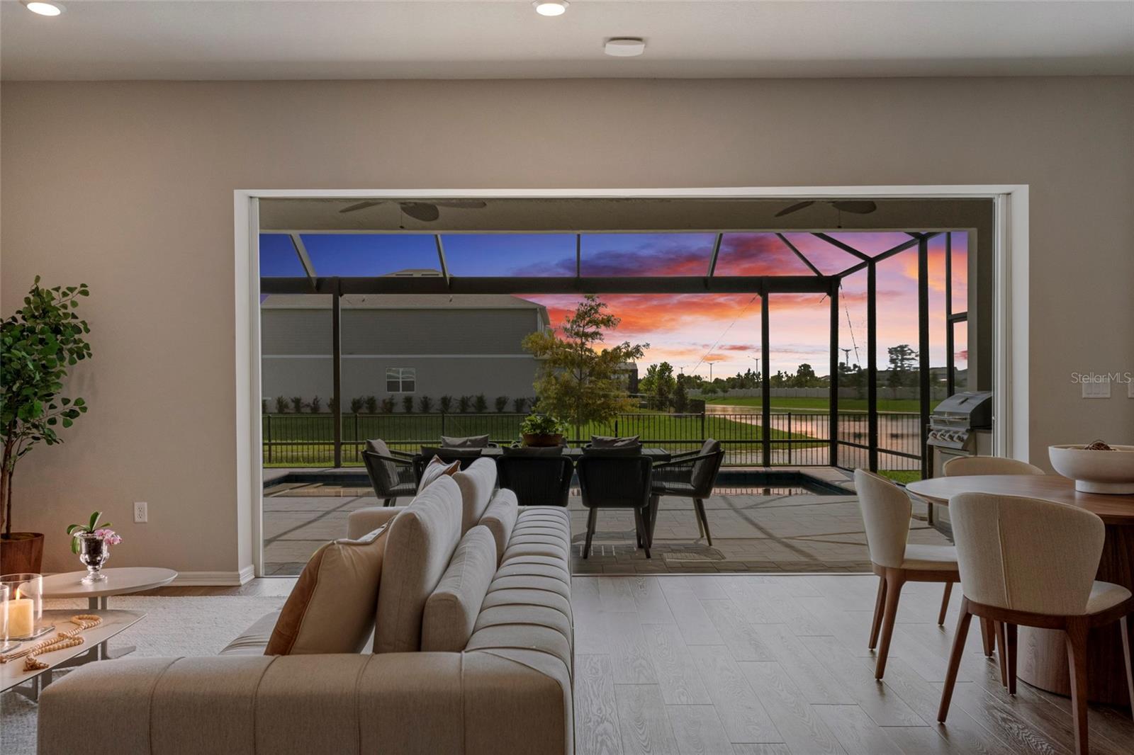 Under contract-accepting backup offers. One or more photo(s) has been virtually staged. Welcome Home to Your NEW Home Nestled in the Highly Sought After Isles of Lake Nona community. This Impeccably Maintained, Move-in-Ready home offers the Perfect blend of PRIVACY, STYLE, and FLORIDA OUTDOOR LIVING, Featuring 4 bedrooms, 3.5 bathrooms, a dedicated office, a spacious loft, and a stunning outdoor space with PANORAMIC Water Views and Breathtaking Sunsets. Step inside to find Luxury Vinyl Plank flooring throughout the main living areas and a thoughtfully designed layout ideal for both relaxation and entertaining. Enjoy a dedicated office space privately situated at the front of your home with glass french doors. The heart of the home is the GOURMET Kitchen featuring a two-tone cabinet design with crown molding, quartz countertops, a stylish backsplash, a large island with custom wrap, a gas cooktop, stainless steel appliances, trash pull-out, and a closet pantry. Adjacent to the kitchen, the open-concept dining and living area is filled with natural light and showcases transom sliding glass doors that seamlessly connect to the covered lanai. The screened-in outdoor patio features a built-in summer kitchen and overlooks the sparkling pool and serene waterfront—an entertainer’s dream. The first-floor primary suite offers tranquil water views and a spa-like en-suite with double square sinks, quartz countertops, shaker-style cabinetry, upgraded fixtures, 12x24 tile, a walk-in shower with frameless glass enclosure, and a large walk-in closet. Upstairs, you’ll find an oversized loft, three secondary bedrooms (including one with an en-suite), a full guest bath, and upgraded carpeting throughout. Your spacious two car garage comes with a Lovely Epoxy Finish and Electric Car Outlet. Enjoy the BEAUTY of the Lake Nona Sunsets in your new Gated Community Located in the heart of Lake Nona’s Medical City, this home offers access to top-rated schools, dining, shopping, and major highways, with HOA amenities that include a resort-style pool, fitness center, parks, trails, sport courts, a Splash Pad, Up to 1 Gig of Internet, Landscaping, Minutes to MCO, USTA, Nemours Hospital, VA Medical Center, KPMG, and more.