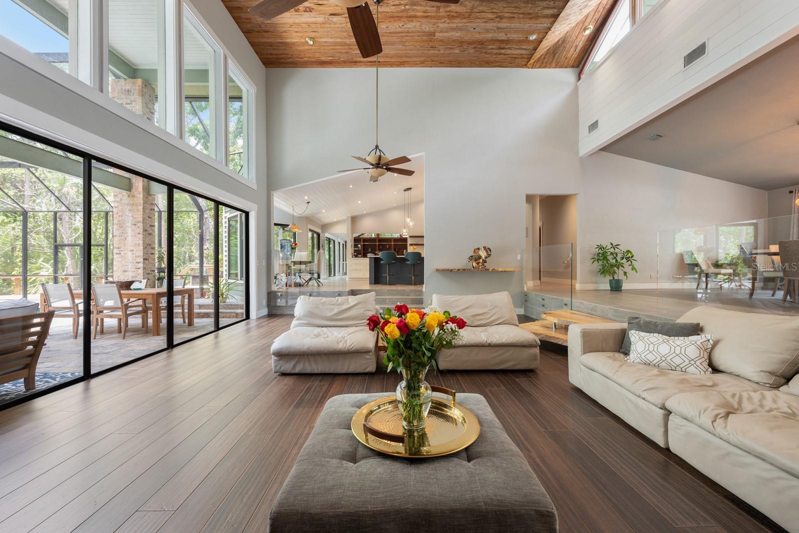 Seller may consider buyer concessions if made in an offer ~ Not just a home… Twelve Oaks Trail is a lifestyle! Tucked away at the end of a quiet CUL-DE-SAC in the desirable Trails community of Ormond Beach, this extraordinary CUSTOM WATERFRONT ESTATE sits on 1.31 ACRES surrounded by mature trees with a SCREENED POOL/SPA and PRIVATE DOCK on the TOMOKA RIVER, offering unmatched privacy in a tranquil setting. From the moment you arrive you will know this property is truly something special! FULLY REMODELED and thoughtfully UPGRADED, your waterfront pool home delivers a sprawling layout with a natural flow, soaring ceilings and a 3-WAY SPLIT FLOOR PLAN that balances space and privacy perfectly. FLOOR TO CEILING WINDOWS flood the home with light and your formal living and dining areas make a dramatic impression with a showstopping fireplace, wood slat ceiling and glass partition. Designed for both grand entertaining and comfortable living, the OPEN CONCEPT kitchen boasts chic two-tone cabinetry, a large center island, top of the line stainless steel appliances, breakfast bar and a light filled casual dining nook. The kitchen flows seamlessly into both formal and family living areas – perfect for hosting or relaxing! Step outside and into an outdoor paradise: a screened salt water pool, heated spa, outdoor shower, and a dream worthy patio space and deck await. A long, scenic dock winds through the woods behind the home and leads to your private boat dock on the Tomoka River with direct access to the Halifax Intracoastal and the open ocean beyond. BOAT PARKING and an OVERSIZED 3-CAR GARAGE make it easy to bring your lifestyle with you! Back inside, a spiral staircase leads to a BONUS/LOFT space overlooking the family room – ideal for a study, studio or anything else you or your family might need. There is also a separate DEN/OFFICE space complete with rich built-in cabinetry, a perfect library or space to work from home. The PRIMARY SUITE is also a must see connecting to a luxurious en-suite bath - updated, spacious and private. Every detail has been curated to offer comfort, function and a timeless elegance! Rounding out this expansive home is the basement level IN-LAW SUITE (remodeled 2025) with both an interior and exterior entrance and kitchenette; versatile for additional living space, visiting guests or multigenerational living. No detail was overlooked in the recent renovations: ROOF (2023) • A/C (2023) • MOST WINDOWS & SLIDERS (2024) • BATHROOMS UPDATED (2024/2025) • NEW FLOORING IN BEDROOMS & FAMILY ROOM (2025) • REFRESHED LANDSCAPING, NEW LIGHTING & IRRIGATION (2025) • FRENCH DRAIN SYSTEM, INTELLIJACK SUPPORTS & FOUNDATION PIERS (2024/2025) • NEW GUTTERS (2024) • Located just minutes from W Granada Blvd and I-95, and just a short drive to the beach, this home is close to everything yet feels like your own private retreat. The community itself offers walking trails and a welcoming HOA. Bring your boat, bring your dreams - this estate has it all!