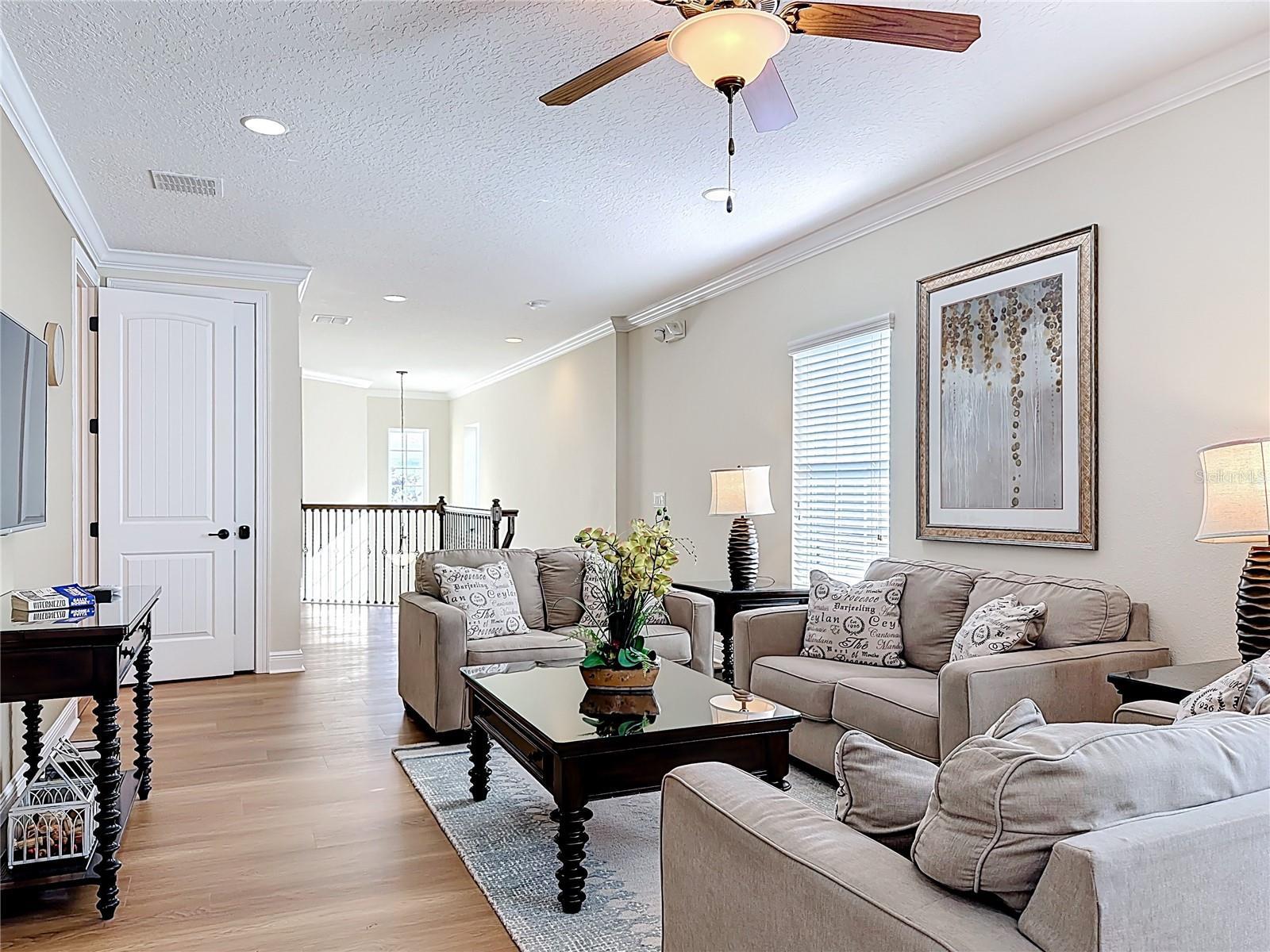 - Ceiling Fans(s), Primary Bedroom Main Floor, PrimaryBedroom Upstairs, Solid Surface Counters, Solid Wood Cabinets, Split Bedroom, Stone Counters, Thermostat, Vaulted Ceiling(s), Walk-In Closet(s), Window Treatments