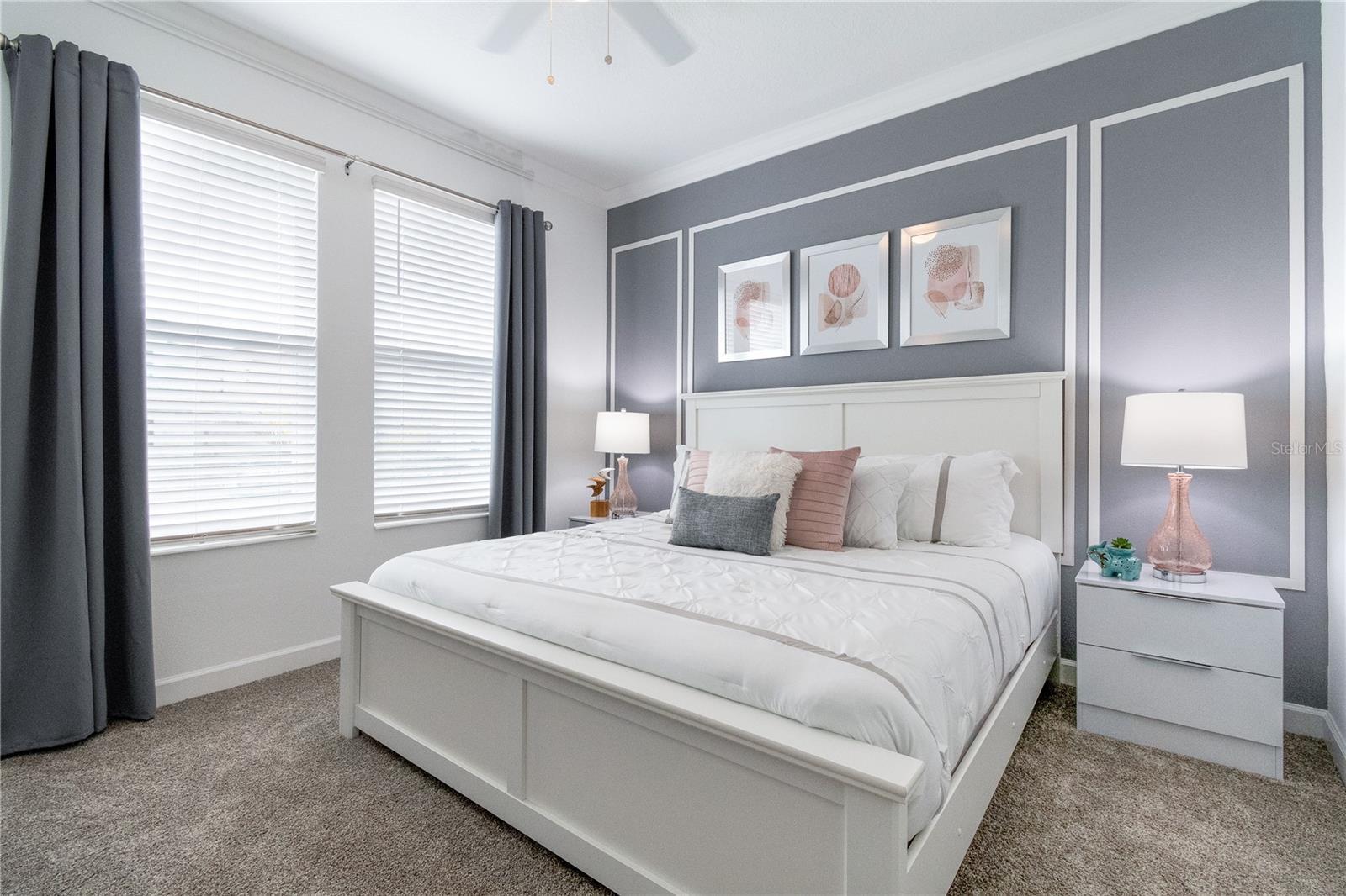- Ceiling Fans(s), High Ceilings, In Wall Pest System, PrimaryBedroom Upstairs, Thermostat, Walk-In Closet(s), Window Treatments