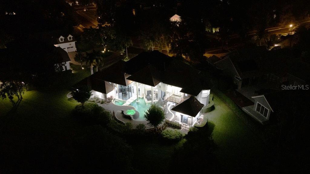 Welcome to 9138 Great Heron Circle, !!!!!!! SELLER FINANCING AVAILABLE !!!!!! A true masterpiece of architectural excellence nestled in the highly sought-after guard-gated community of Cypress Point in Orlando. Built by esteemed builder Ray Coudriet and designed by architect Tom Price, this custom estate was meticulously crafted to withstand winds up to 145 mph, reflecting the highest standards of quality construction and luxury living. !!! BRAND NEW ROOF !! ( West Lake Concrete Tile Sterling Grey with NEW White 6 inch gutters around the complete home totaling $145,733 completed September 5, 2025). Bathed in natural light from expansive picture windows, the home is perfectly positioned to offer panoramic views of a tranquil pond and the breathtaking sunsets over Lake Sheen, part of the prestigious Butler Chain of Lakes. Inside, modern design meets timeless elegance, beginning with a grand foyer featuring gleaming granite and white-washed bamboo wood floors illuminated by ambient LED cove lighting, and 16 surveillance cameras. The open-concept layout is tailored for both comfort and entertainment, featuring a spacious home theatre and a glass-enclosed home office for privacy and productivity. Ascend the sleek open-air staircase to discover the serene master suite, which offers a peaceful exercise space overlooking the water, a private balcony for morning coffee, and a spa-inspired retreat atmosphere. The gourmet kitchen is a chef’s dream, outfitted with modern European cabinetry, high-end stainless steel appliances including a Sub-Zero refrigerator, and a layout that inspires culinary excellence. A generously sized laundry room includes a utility shower, while a second large home office provides a tranquil and functional workspace. Floor-to-ceiling glass windows frame uninterrupted views of the pond and lake, enhancing the home’s connection to nature. For wine connoisseurs, the 1,100-bottle wine cellar offers both luxury and function, while the resort-style pool with a swim-up bar and a summer kitchen—featuring a striking backlit Aqua Blue Agate surface and automated pool controls—create the ultimate setting for outdoor entertaining. Car enthusiasts will appreciate the climate-controlled garage with space for up to five vehicles, equipped with two hydraulic lifts and glass doors for a sleek, modern look. With every detail carefully considered and top-tier amenities throughout, this home is the pinnacle of refined living. Don’t miss your opportunity to experience the unmatched elegance, comfort, and sophistication of this extraordinary residence. Schedule your private showing today.