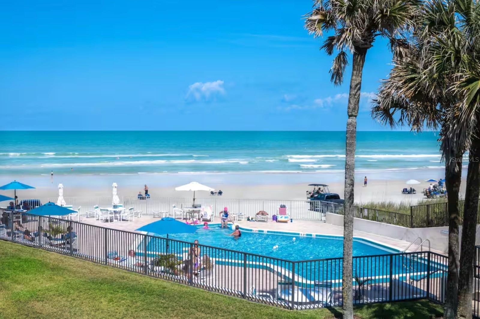 PRICED TO SELL!! The Best Investment Opportunity around Flagler Avenue! Rare opportunity to own a fully furnished, high-end oceanfront condo in the sought-after Coronado Del Mar. One of New Smyrna Beach’s most desirable boutique communities with only 23 units. This beautifully remodeled and professionally decorated 2-bedroom, 2.5-bath unit offers breathtaking panoramic ocean views, a prime central beachside location blocks from Flagler Avenue, and is move-in or rental-ready with a strong revenue track record from short-term rentals. The unit includes an in-unit washer and dryer, and one assigned parking space conveniently located near the stairs. Recent upgrades include a new water heater (2024) and A/C (2020). The unique two-story layout provides spacious living, with an open-concept first floor featuring a bright living/dining area and a well-appointed modern kitchen. The upstairs offers two private bedroom suites, each with renovated en-suite bathrooms, and stunning views of the Atlantic. Enjoy your morning coffee or evening wine on the private oceanfront balcony, or lounge on the oceanfront pool deck in this quiet, respectful, and well-managed community. Whether you're looking for a luxury beachfront escape or a turnkey investment property with proven rental income, this is coastal living at its finest.