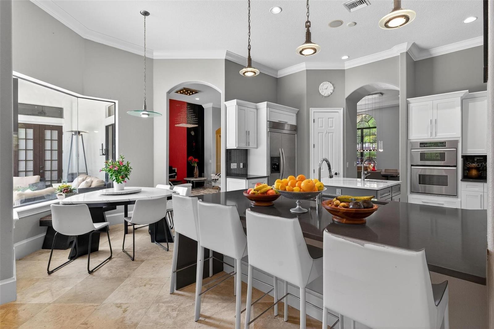 REDUCED - Dream home in Windermere! Nestled inside the gates of the luxurious community of Reserve at Lake Sound. Move-in ready home! Tile roof replaced in 2021. Heated area of 3868 sqft built with high quality material and finishing, tall ceilings and travertine floors in the common areas. The refurbishment, done 4 years ago, resulted in adding modern sophistication to the home. The double door entrance lets you in a broad dining room and living room area with modern accent walls and exquisite fireplace. The kitchen combines comfort and functionality. Inviting to the family to the open floor plan in the family room. Countertops, high cabinets, upgraded stainless steel appliances, beverage refrigerator and much more, that together, makes the space aesthetics and pleasant. The splendid garden on the back yard increases the pleasure to enjoy a coffee at the breakfast area. Split floor plan with 5bed / 5 bath plus an office. Spacious master with California closets. Master bath with his/her sinks, walk-in shower and gorgeous floating tub. Upstairs bonus room can be used as 2nd master or guest room. French doors opening to a spacious pool area, ideal for play or party receptions. Convenient 3 car garage and a brick pavers driveway. House has a private well for irrigation, reducing considerably the water bill.