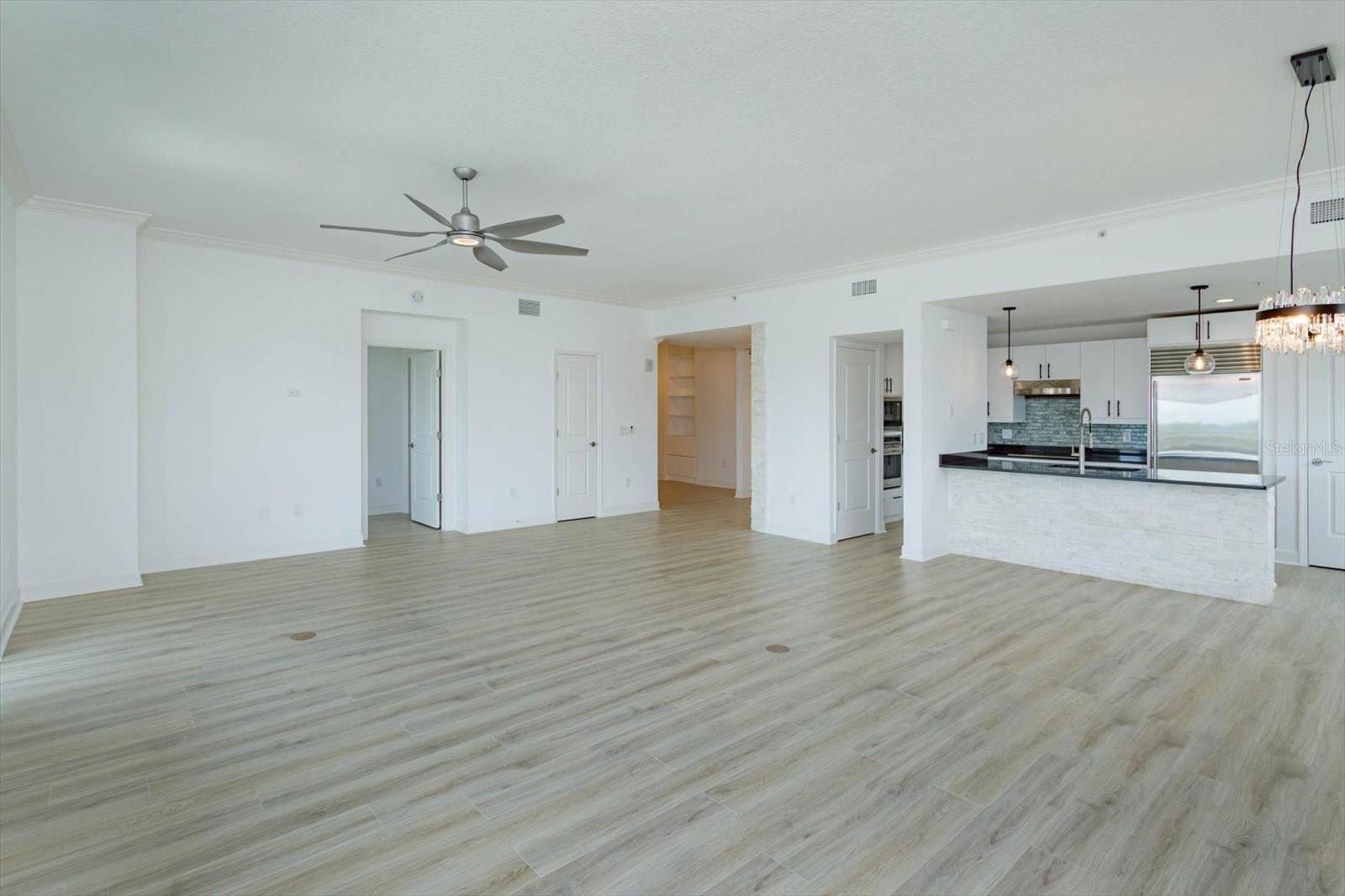 - Ceiling Fans(s), Crown Molding, Kitchen/Family Room Combo, Open Floorplan, Solid Surface Counters, Walk-In Closet(s)