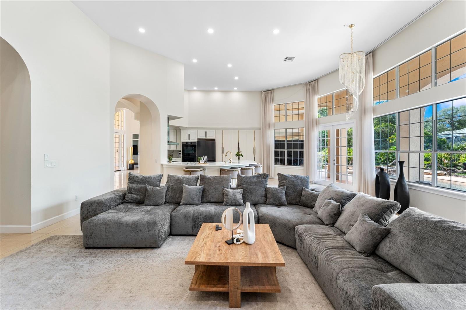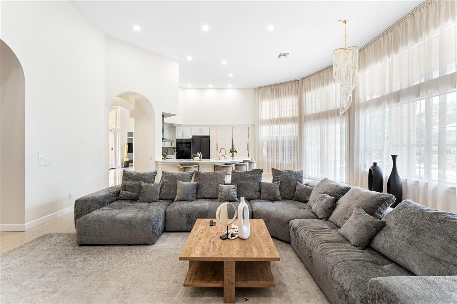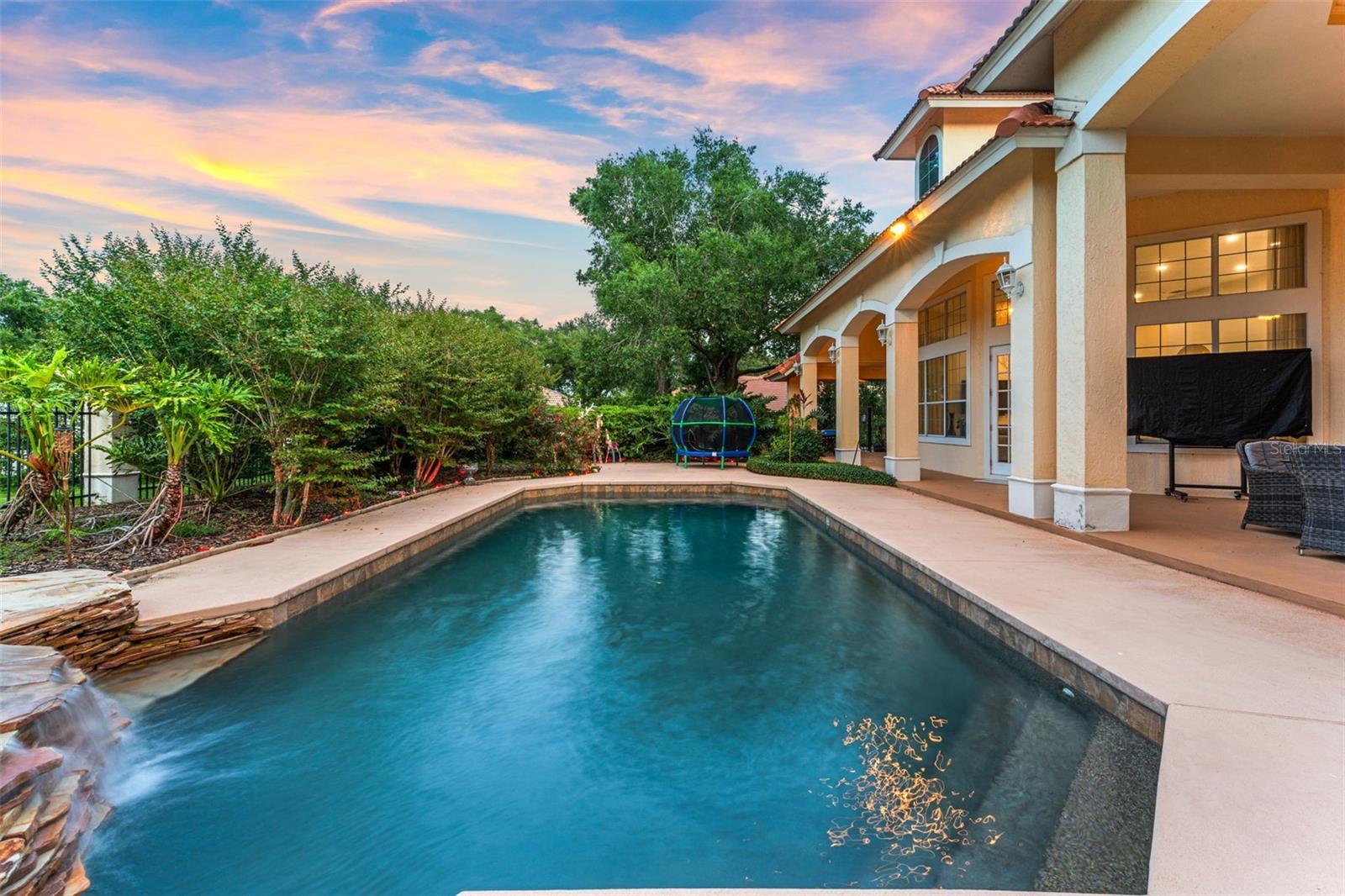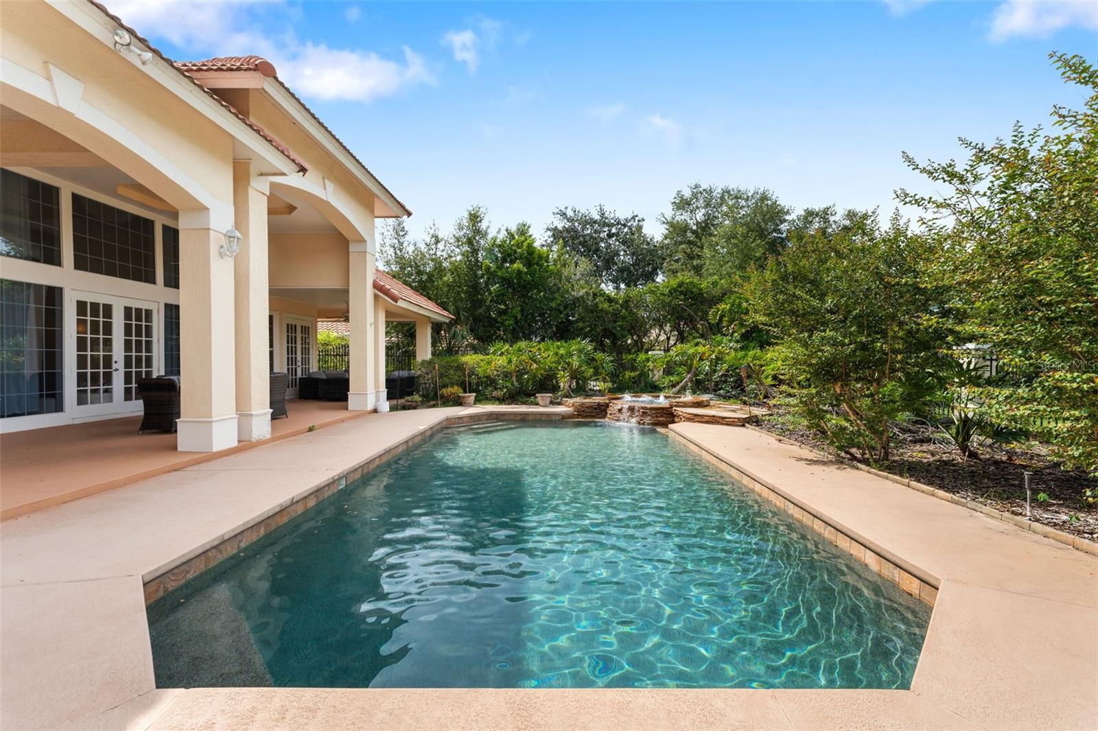 Back on the market; buyer financing fell through. Welcome to 1274 Prince Court—an elegant and thoughtfully renovated custom one-story pool home located in the prestigious gated community of Heathrow. Nestled at the end of a quiet cul-de-sac on a private lot, this beautifully updated residence offers 4 spacious bedrooms, 3 full bathrooms, and a dedicated executive office. Step through the striking glass and iron double doors into a grand foyer with brand-new carpet underfoot and soaring 22-foot cathedral ceilings that create an immediate sense of openness and sophistication. The living room provides stunning views of the newly painted saltwater pool and lush landscaping beyond, setting the tone for serene Florida living. To your right, a formal dining room is perfect for hosting, while the executive office to the left offers an ideal work-from-home setup. The renovated kitchen is a chef’s dream—featuring modern white cabinetry, granite countertops, a center island, new stainless steel appliances, and an open flow into the spacious family room, ideal for entertaining. Enjoy newer porcelain tile in the main living areas, brand-new luxury vinyl plank flooring in the bedrooms, and remote-controlled curtains throughout the home for modern convenience. The expansive primary suite includes transom windows that flood the space with natural light, a large walk-in closet, and a beautifully updated en-suite bath with hand-cut tile details, dual granite-topped vanities, and a custom walk-in shower. Two additional bedrooms, each with their own fully renovated baths, are tucked away on the opposite side of the home for maximum privacy—perfect for guests or family members. Step outside to your private backyard oasis, where a rock waterfall spills into the sparkling saltwater spa and pool, all enclosed by a wrought-iron fence and surrounded by mature landscaping. The covered lanai includes a summer kitchen and generous seating areas, making it ideal for outdoor gatherings year-round. Additional features include a side-entry three-car garage, circular driveway, and freshly painted interiors. This home combines custom elegance with modern upgrades for truly turnkey living. Located within the highly desirable Heathrow community, residents enjoy access to an exclusive country club, an 18-hole championship golf course designed by Ron Garl, tennis courts, playgrounds, and walking trails—all within a top-rated school district. Don’t miss the opportunity to make this luxurious and move-in ready property your next home!