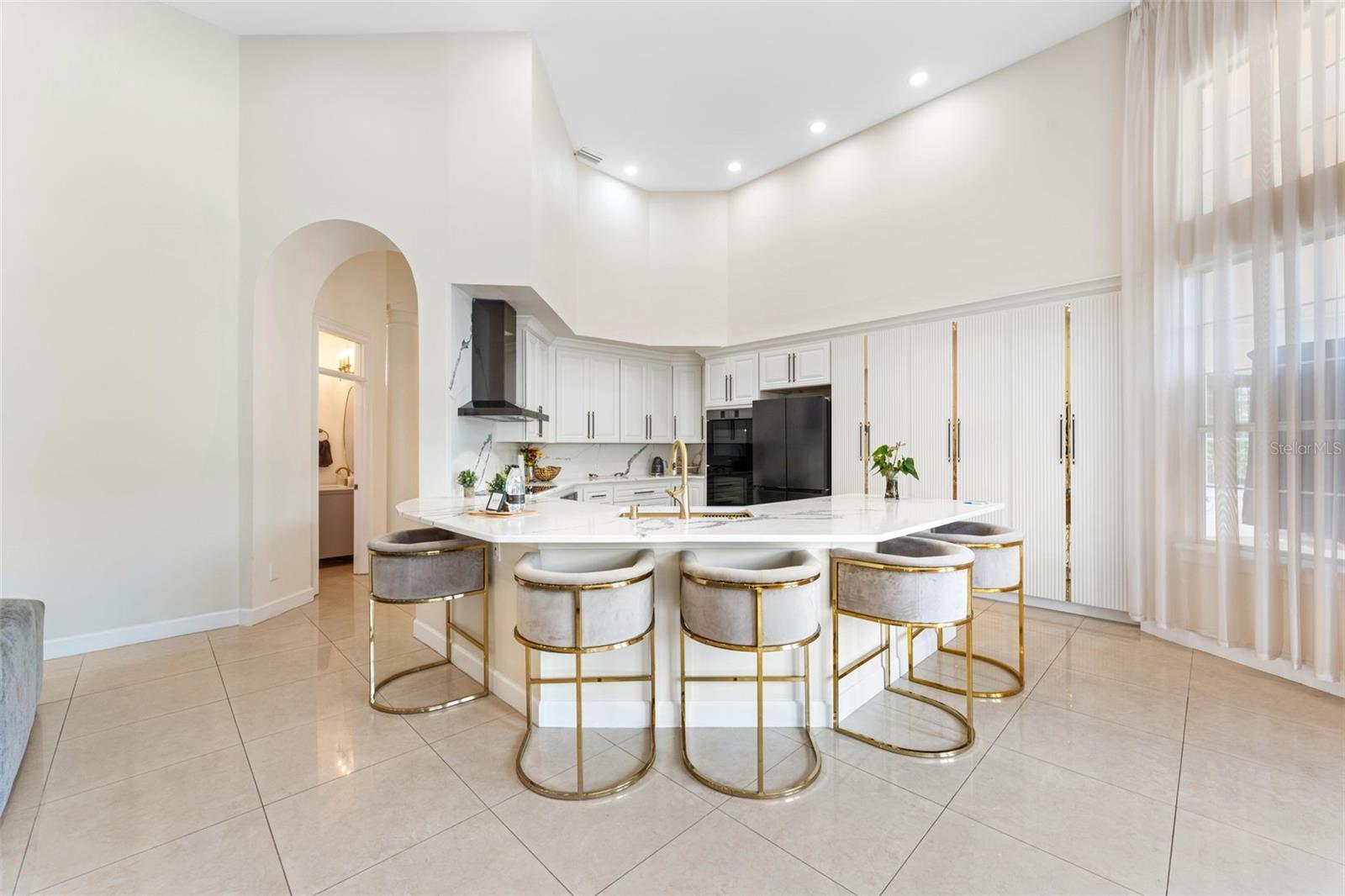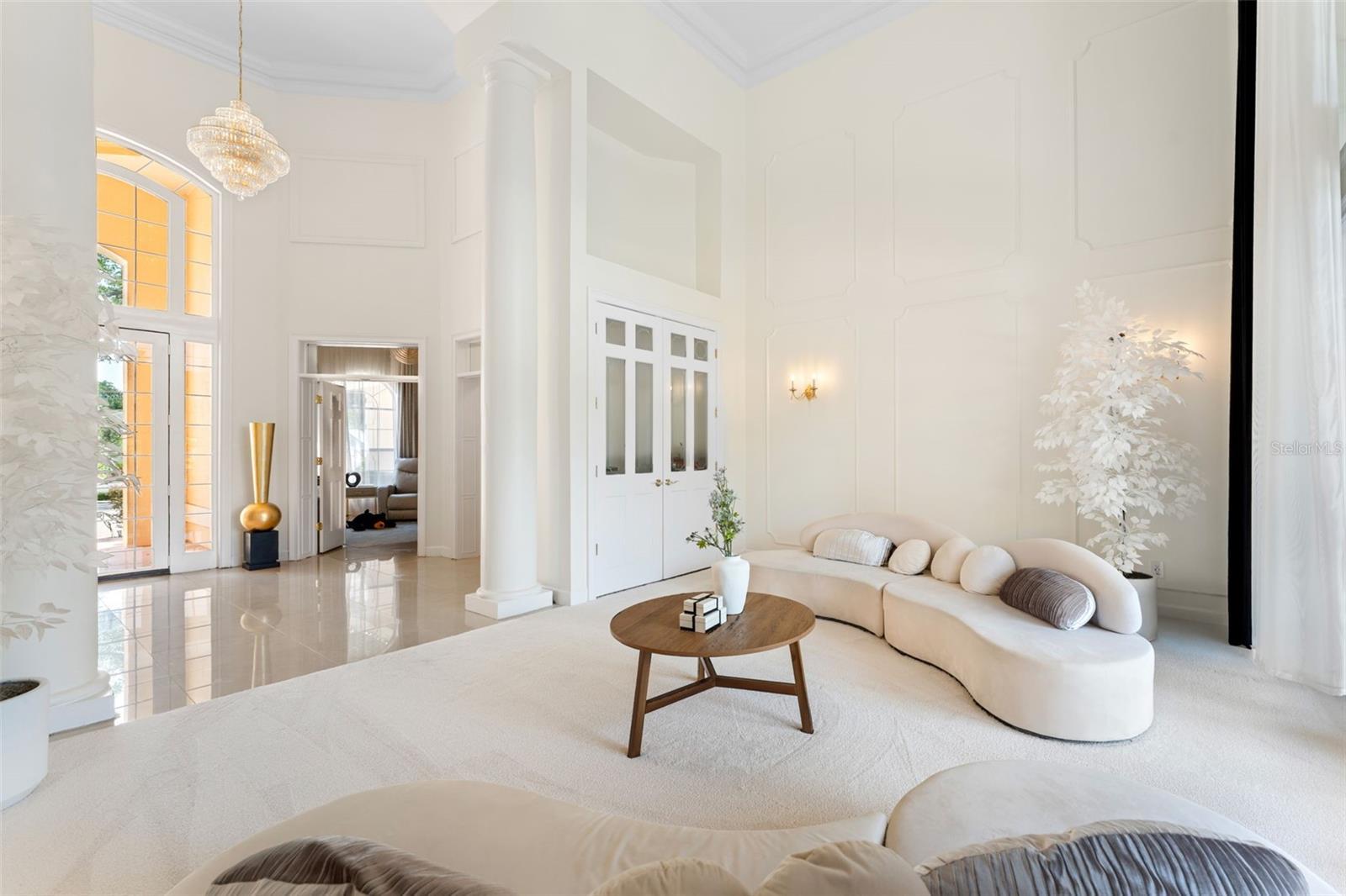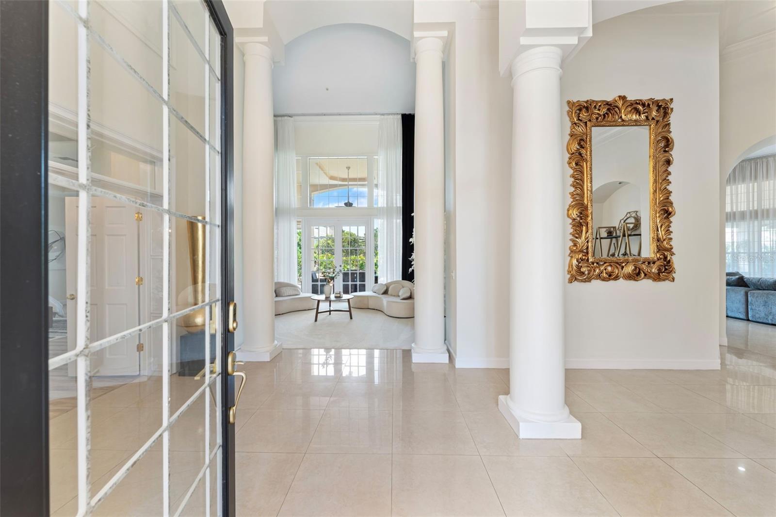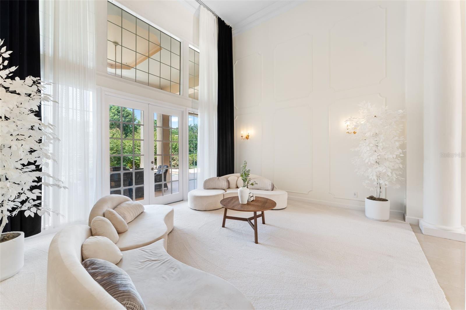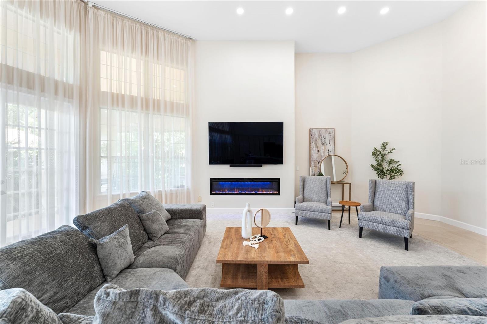 Back on the market; buyer financing fell through. Welcome to 1274 Prince Court—an elegant and thoughtfully renovated custom one-story pool home located in the prestigious gated community of Heathrow. Nestled at the end of a quiet cul-de-sac on a private lot, this beautifully updated residence offers 4 spacious bedrooms, 3 full bathrooms, and a dedicated executive office. Step through the striking glass and iron double doors into a grand foyer with brand-new carpet underfoot and soaring 22-foot cathedral ceilings that create an immediate sense of openness and sophistication. The living room provides stunning views of the newly painted saltwater pool and lush landscaping beyond, setting the tone for serene Florida living. To your right, a formal dining room is perfect for hosting, while the executive office to the left offers an ideal work-from-home setup. The renovated kitchen is a chef’s dream—featuring modern white cabinetry, granite countertops, a center island, new stainless steel appliances, and an open flow into the spacious family room, ideal for entertaining. Enjoy newer porcelain tile in the main living areas, brand-new luxury vinyl plank flooring in the bedrooms, and remote-controlled curtains throughout the home for modern convenience. The expansive primary suite includes transom windows that flood the space with natural light, a large walk-in closet, and a beautifully updated en-suite bath with hand-cut tile details, dual granite-topped vanities, and a custom walk-in shower. Two additional bedrooms, each with their own fully renovated baths, are tucked away on the opposite side of the home for maximum privacy—perfect for guests or family members. Step outside to your private backyard oasis, where a rock waterfall spills into the sparkling saltwater spa and pool, all enclosed by a wrought-iron fence and surrounded by mature landscaping. The covered lanai includes a summer kitchen and generous seating areas, making it ideal for outdoor gatherings year-round. Additional features include a side-entry three-car garage, circular driveway, and freshly painted interiors. This home combines custom elegance with modern upgrades for truly turnkey living. Located within the highly desirable Heathrow community, residents enjoy access to an exclusive country club, an 18-hole championship golf course designed by Ron Garl, tennis courts, playgrounds, and walking trails—all within a top-rated school district. Don’t miss the opportunity to make this luxurious and move-in ready property your next home!