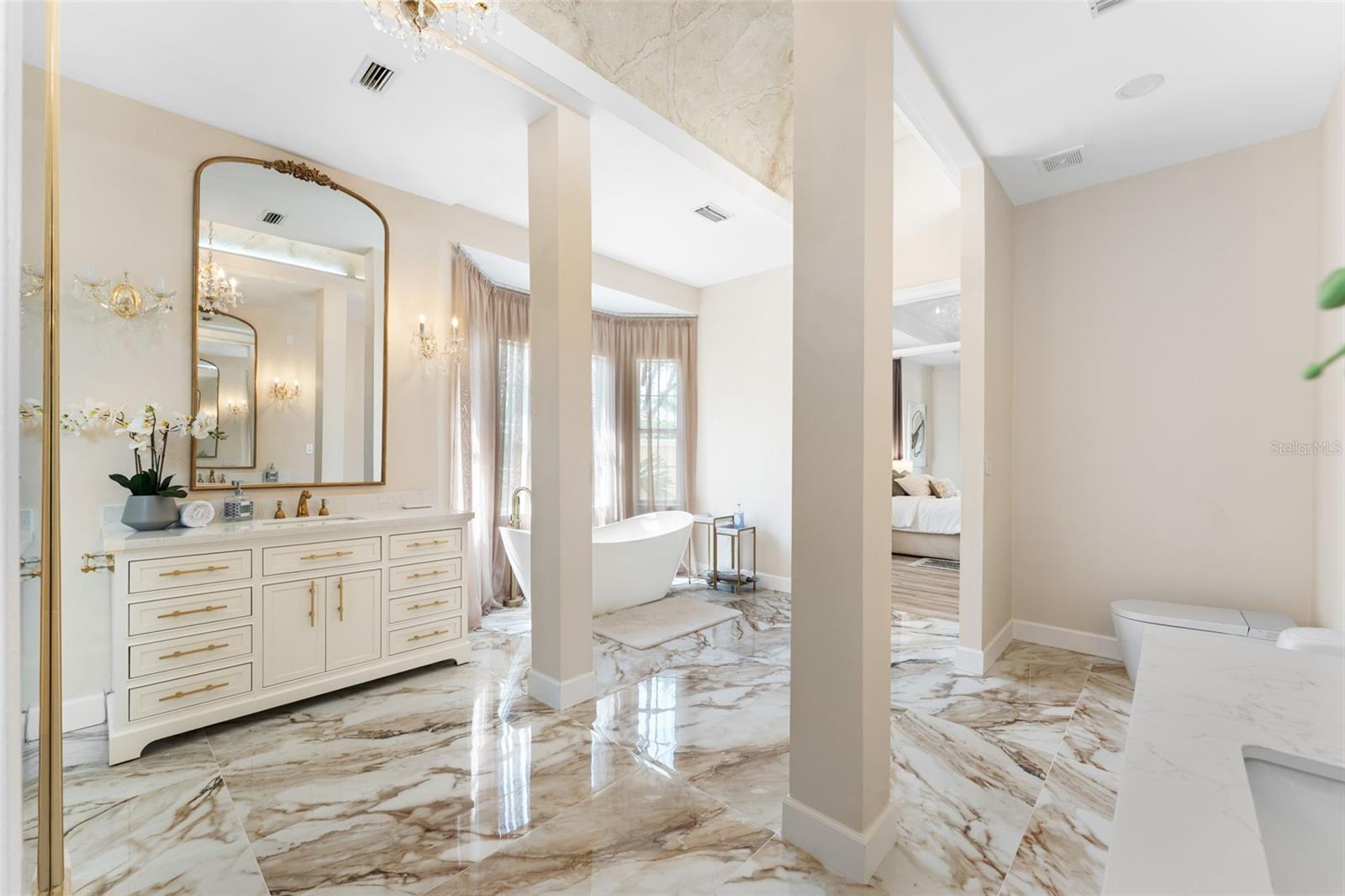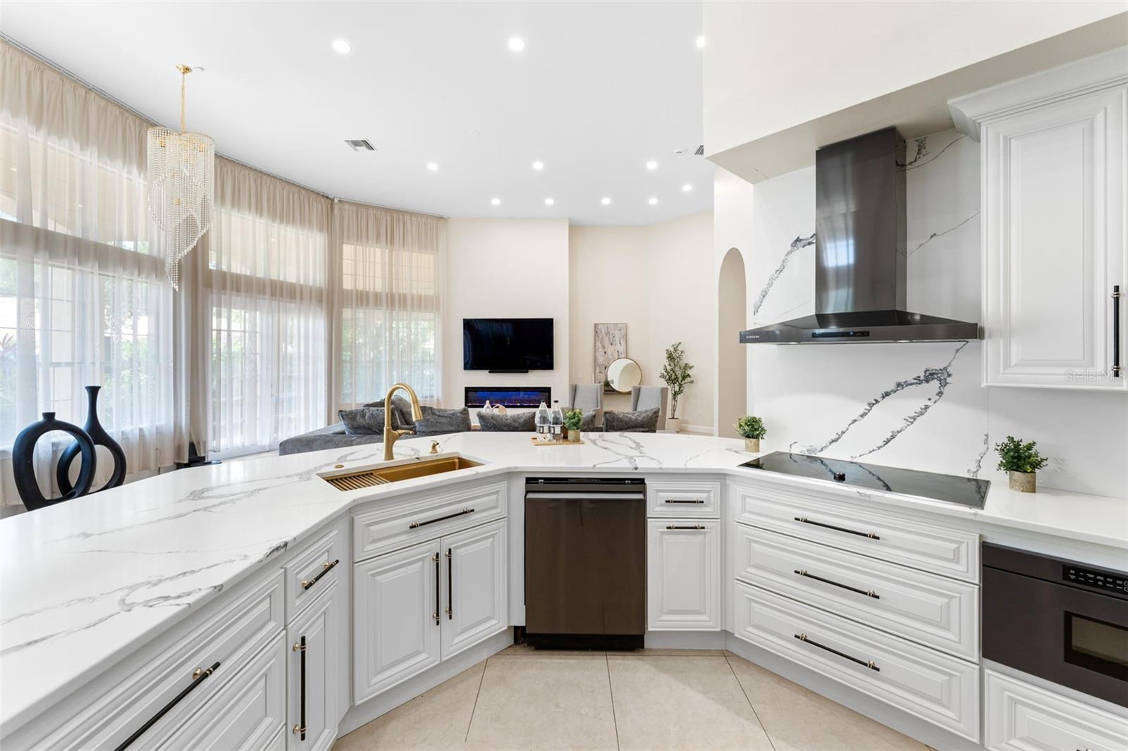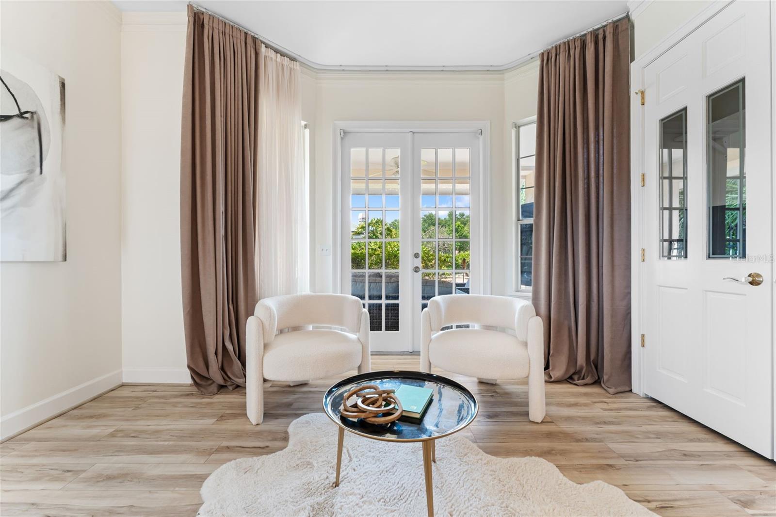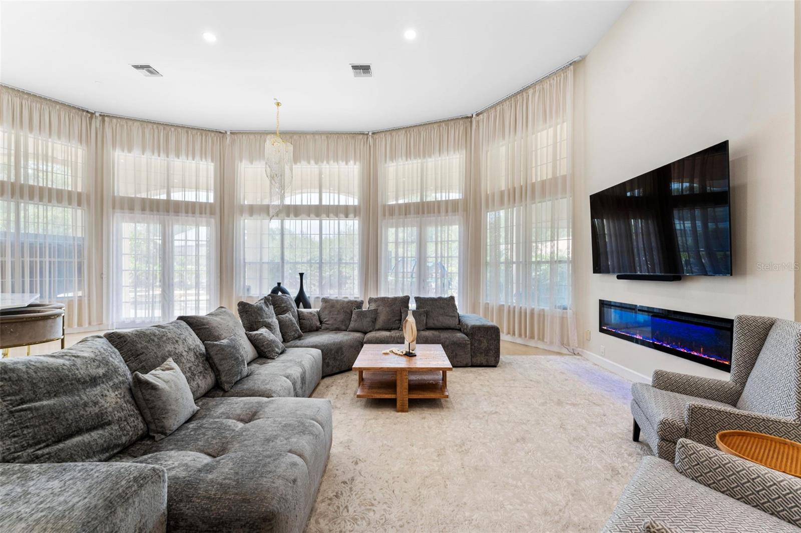 Back on the market; buyer financing fell through. Welcome to 1274 Prince Court—an elegant and thoughtfully renovated custom one-story pool home located in the prestigious gated community of Heathrow. Nestled at the end of a quiet cul-de-sac on a private lot, this beautifully updated residence offers 4 spacious bedrooms, 3 full bathrooms, and a dedicated executive office. Step through the striking glass and iron double doors into a grand foyer with brand-new carpet underfoot and soaring 22-foot cathedral ceilings that create an immediate sense of openness and sophistication. The living room provides stunning views of the newly painted saltwater pool and lush landscaping beyond, setting the tone for serene Florida living. To your right, a formal dining room is perfect for hosting, while the executive office to the left offers an ideal work-from-home setup. The renovated kitchen is a chef’s dream—featuring modern white cabinetry, granite countertops, a center island, new stainless steel appliances, and an open flow into the spacious family room, ideal for entertaining. Enjoy newer porcelain tile in the main living areas, brand-new luxury vinyl plank flooring in the bedrooms, and remote-controlled curtains throughout the home for modern convenience. The expansive primary suite includes transom windows that flood the space with natural light, a large walk-in closet, and a beautifully updated en-suite bath with hand-cut tile details, dual granite-topped vanities, and a custom walk-in shower. Two additional bedrooms, each with their own fully renovated baths, are tucked away on the opposite side of the home for maximum privacy—perfect for guests or family members. Step outside to your private backyard oasis, where a rock waterfall spills into the sparkling saltwater spa and pool, all enclosed by a wrought-iron fence and surrounded by mature landscaping. The covered lanai includes a summer kitchen and generous seating areas, making it ideal for outdoor gatherings year-round. Additional features include a side-entry three-car garage, circular driveway, and freshly painted interiors. This home combines custom elegance with modern upgrades for truly turnkey living. Located within the highly desirable Heathrow community, residents enjoy access to an exclusive country club, an 18-hole championship golf course designed by Ron Garl, tennis courts, playgrounds, and walking trails—all within a top-rated school district. Don’t miss the opportunity to make this luxurious and move-in ready property your next home!