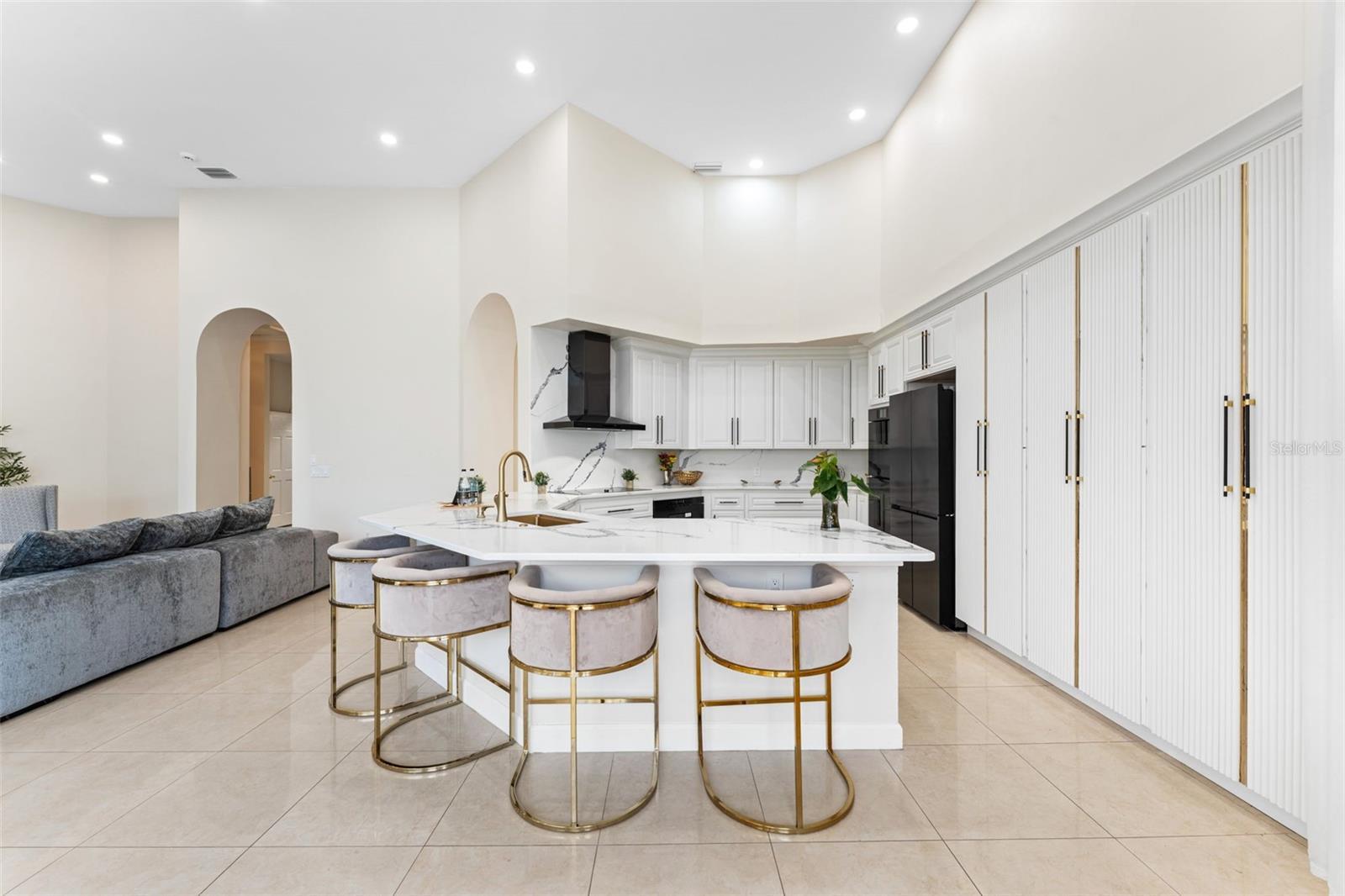 - Built-in Features, Cathedral Ceiling(s), Ceiling Fans(s), Crown Molding, High Ceilings, Kitchen/Family Room Combo, Open Floorplan, Primary Bedroom Main Floor, Solid Surface Counters, Solid Wood Cabinets, Split Bedroom, Stone Counters, Tray Ceiling(s), Walk-In Closet(s), Wet Bar, Window Treatments