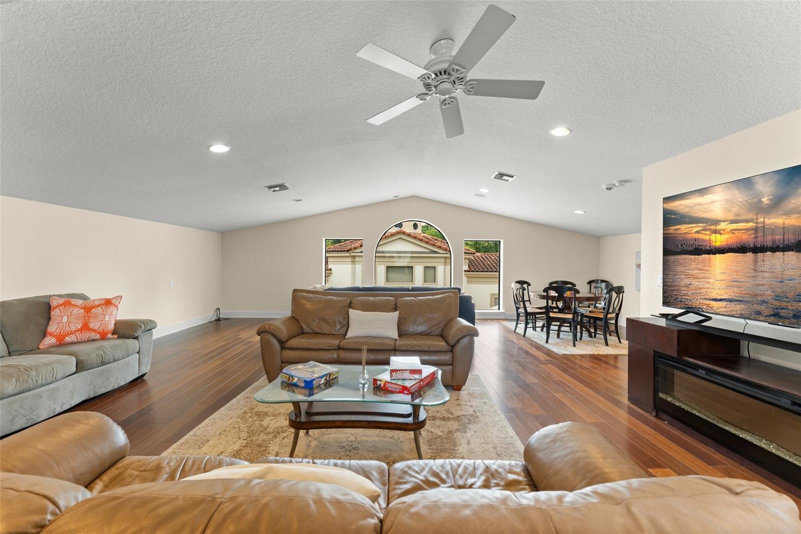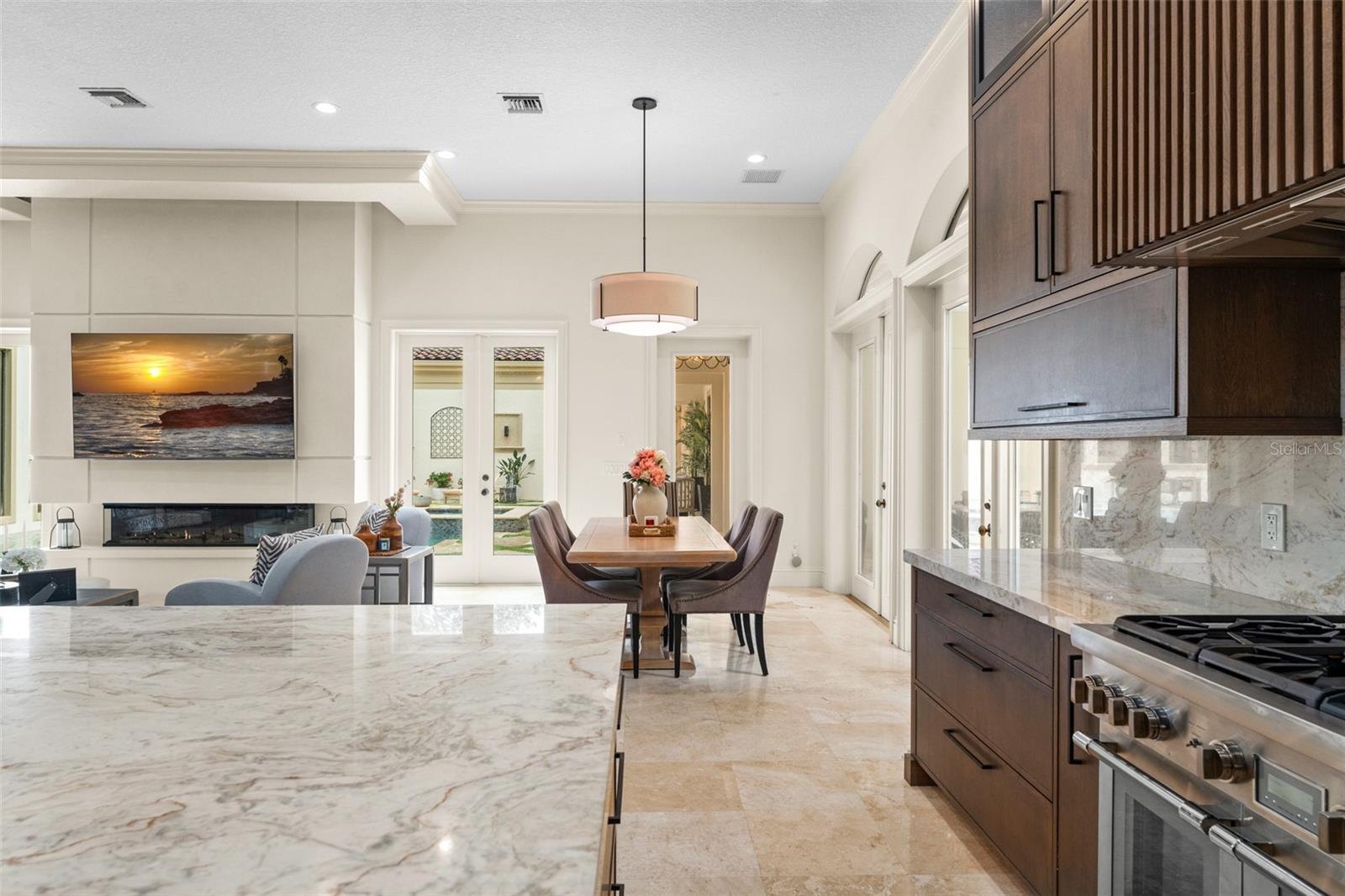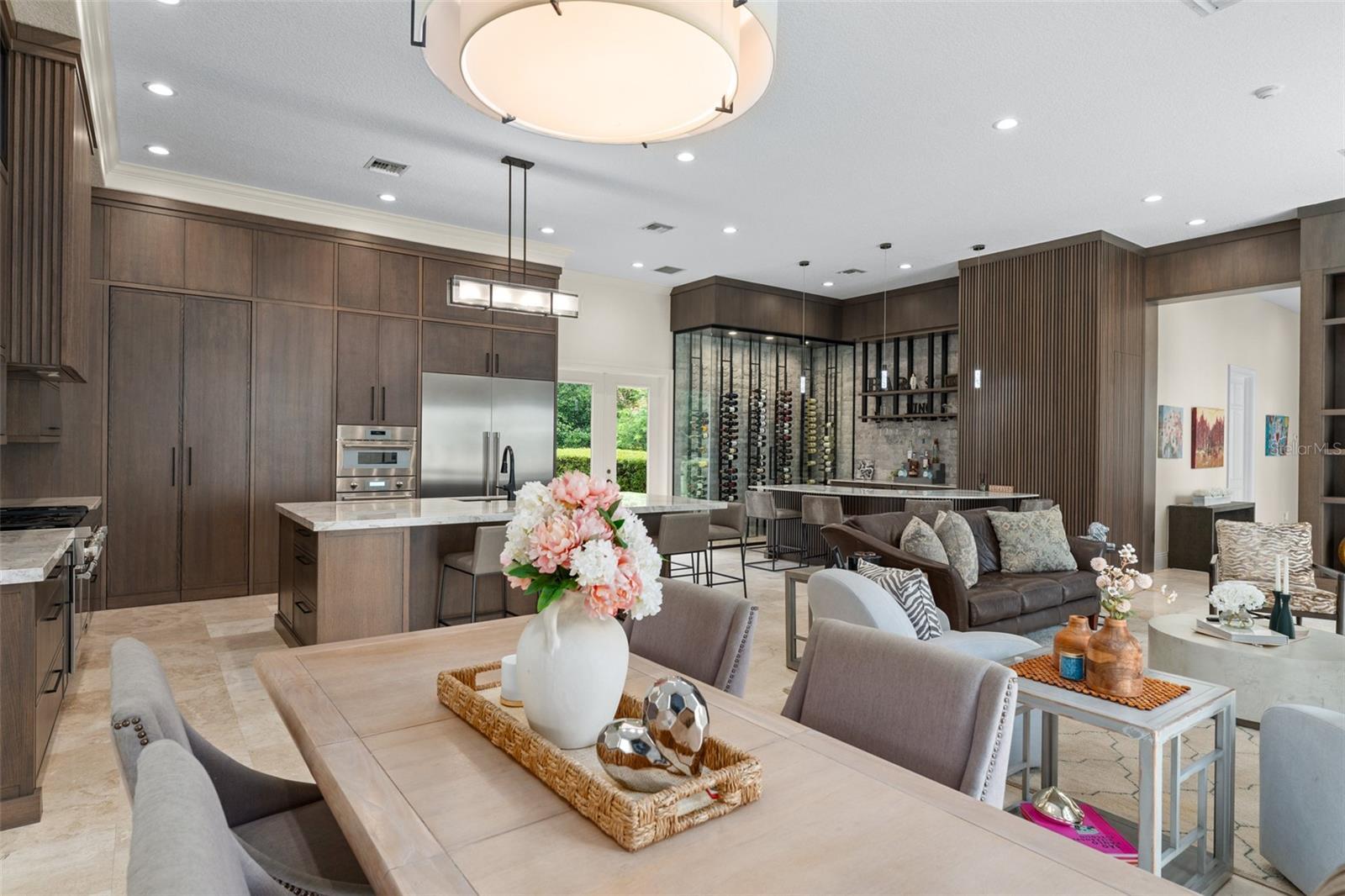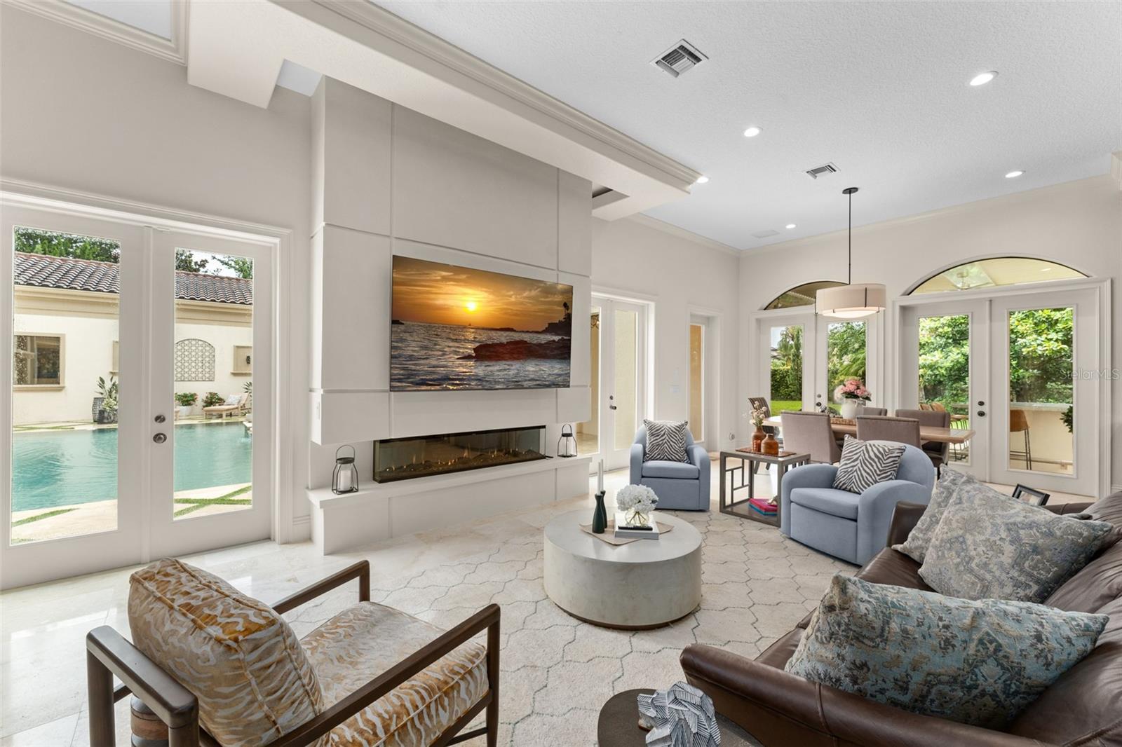 Under contract-accepting backup offers. An exceptional estate, masterfully renovated and transformed into a reimagined showplace: complete with a brand-new exquisite chef’s kitchen, family room, and bar with glass enclosed wine rack – plus mammoth private swimming pool and spa with new decking and checkerboard synthetic turf with multiple sitting venues. Featured on CNBC as “most sought-after floor plan,” this masterpiece residence impresses with 30-foot-tall ceilings, tongue and grove with wooden beams overhead, and a wall of windows to greet guests on entry. The spectacular home surrounds the pool area with three bedrooms all ensuite plus den and flex space for a gym in the main residence and a two-story attached building with renovated 4th bedroom or mother-in-law suite and bonus space, offering detached privacy but still within the confines of the residence, connected by breezeway. The family room, bar, and kitchen are all brand new with top-of-the-line Thermador appliances including a Pro Harmony® 48-inch-wide gas range with 6 burners and griddle, built in microwave and oven, refrigerator, double dishwashers, walk-in pantry, island, quartz counters and back splash. The just-completed impressive bar with beverage cooler, wine bottle display, sink and built-in shelving is a showstopper. The distinguished primary retreat and office encompass an entire wing with an oversized bedroom, grand bath with double vanities, jetted tub, tile-enclosed shower, wet bar, walk-in closet, and den with built-in display shelving. A formal dining room is elegantly appointed and perfectly suited for entertaining. For a more casual setting enjoy dining alfresco on the patio with the newly added summer kitchen with louvered pergola off the family room. Expansive grounds take full advantage of the 1-acre lot size. A 4-car garage plus a sizeable paver drive with ample parking affords space for all. Gated Chaine du Lac is known for its generously sized lots and is conveniently located within biking distance to Windermere Elementary. Downtown Windermere offers quaint shopping, an idyllic town hall, monthly food trucks, and weekly Farmer’s Market. Neighborhood also offers easy access to Windermere Prep, Winter Garden Village, the 429, and Florida’s Turnpike.
