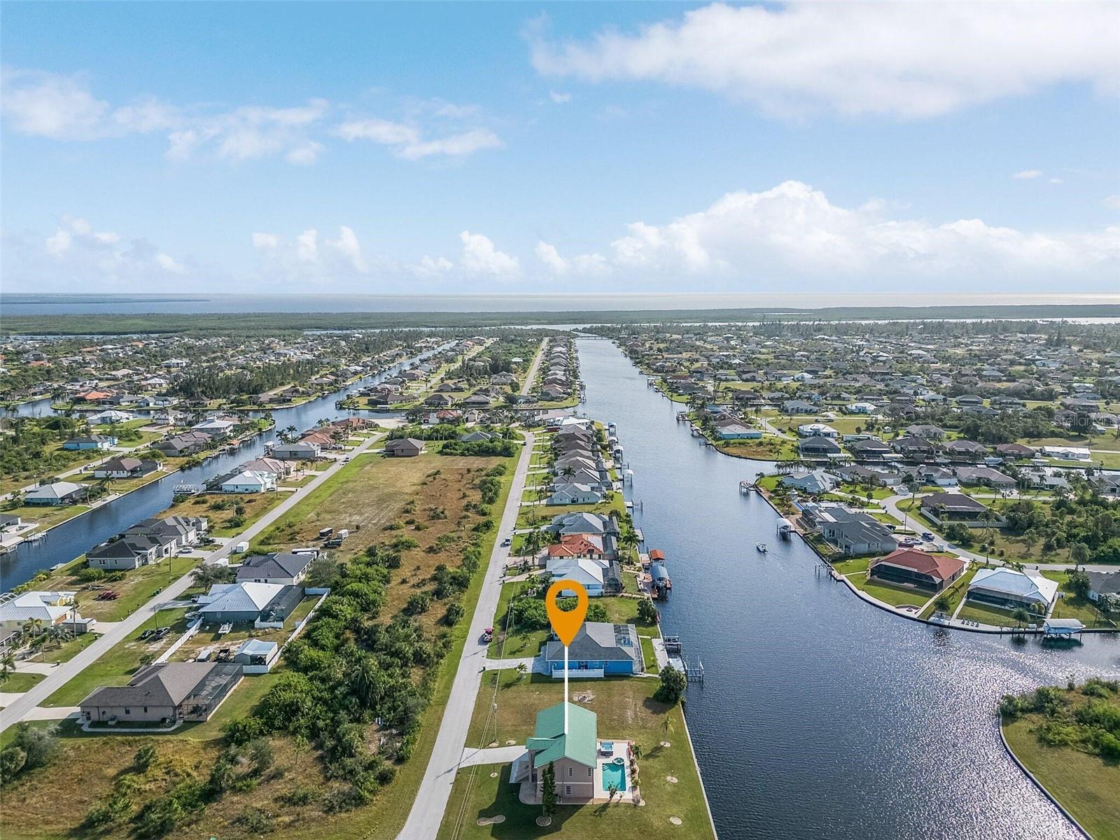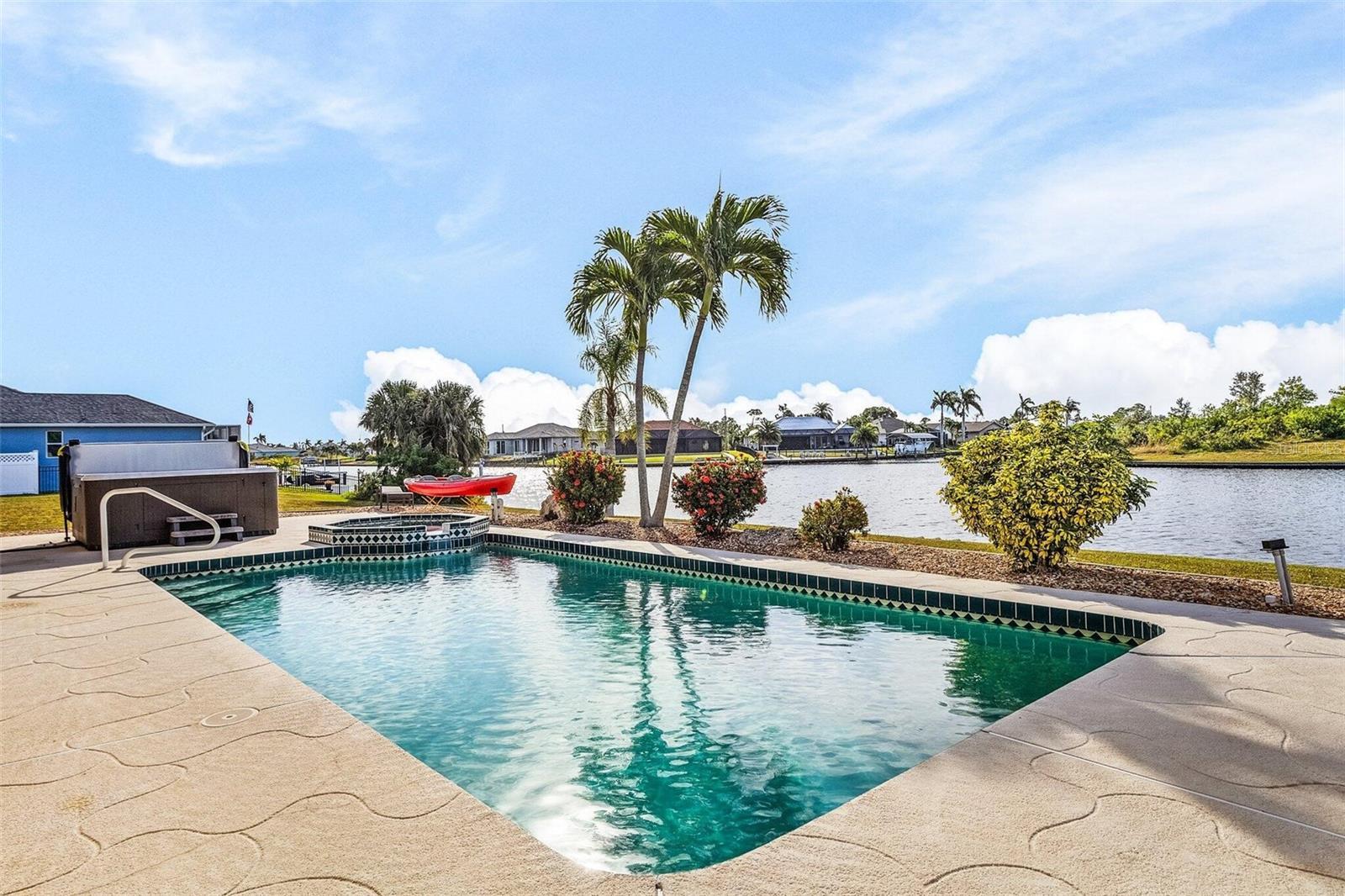 This CUSTOM RESORT STYLE HOME, has spectacle views and is user-friendly all year round inside and out. The upper level ENORMOUS windows provide you with 360° views insuring your views will never be blocked in the future. (No ranch style small windows here!) The vantage point on the second story will provide a unique outlook on life to the point as soon as you wake up you’ll be smiling knowing no matter where you are in the home you'll have some nice scenery out your windows. The 8 person octagon spa flows over into your real size 14’x28’ pool suitable for laps. Then after your workout just relax in the SIMPLY AMAZING 115 jet therapeutic luxury spa . In your backyard is an extra EXTRA wide intersecting waterway that has 88 feet of seawall assuring room to park your boat or have your own fishing spot. Leave in your boat and go east or west on your way to the Gulf of Mexico and you won't have to come back the same way. (Sorry no skinny dead end garbage collecting smelly water here) !!!!!!!! The depth of the water is controlled by a lock So the depth remains constant, allowing you to get your boat in and out at anytime !!!!!!! The yard has room for parking a trailer, rv or even a volleyball court. Ginormous? Heck YA,,,,Open up your 33 feet of pocketing sliders to give you an OPEN concept 1730 sq ft upper level. This unique style home allows for separate living areas if so desired. Live upstairs and rent downstairs or possibly an Airbnb or snowbird rental. The lower level scullery is ready for a kitchenette in case you desire separate living spaces. No Florida home is complete without the VERY MOST IMPORTANT FEATURE southern exposure!! You will be assured a user-friendly exterior environment whether in the penthouse or on the lower level. Outdoor activities are possible all year round and you will not be trapped inside behind your shades all day long. The upper outdoor area/ office provides a unique perspective on life while watching the boats navigate through the waters. (No wasted space walls here!!) The year round user-friendly southern exposure second level outdoor living area provides cool breezes in the summer and warmth in the winter. There are 55 miles of canals in your neighborhood just steps out your back door to explore in your kayak. Your choice, You may find yourself coming to Florida to explore but you may soon realize that your home has everything and you really don’t need to go anywhere else. This custom style home is for those few individuals that can appreciate the finer things in life and take their own path. All updates now Included.