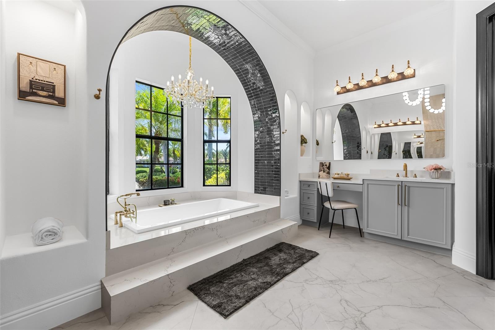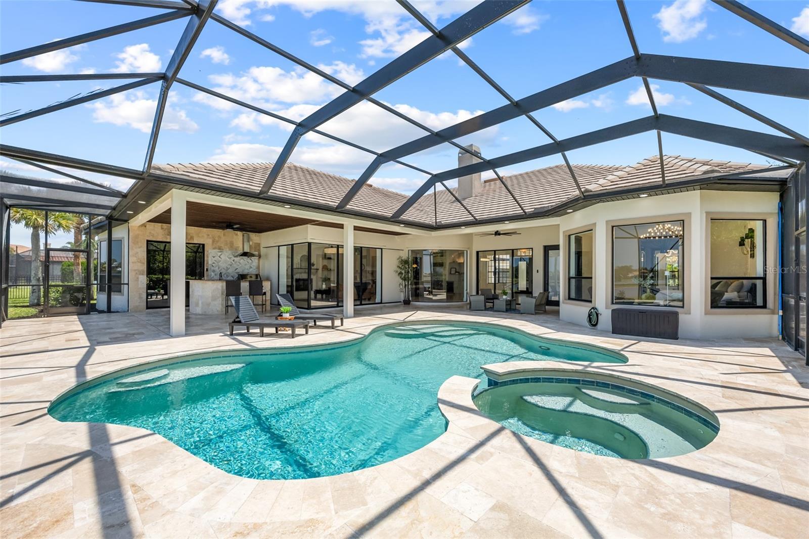 An unmatched designer estate nestled within the prestigious gated community of Summer Lakes in Viera West. This stunning lakefront residence offers an unparalleled blend of modern elegance & vintage charm - boasting 4 bedrooms, 4 bathrooms, a regal home office & media room all within a meticulously designed living space on a sprawling 0.82-acre lot. The heart of the home is the expansive kitchen featuring an oversized Taj Mahal quartzite island, equipped with Wolf & Sub-Zero appliances, custom cabinetry & moroccan brass fixtures. The home's open-concept living areas & 90-degree sliding glass doors seamlessly flow to the outdoor oasis that boasts this highly sought after lake-view in Viera. AC Units (2019 & 2017), Hot Water Heater & Pool Heater (2025).