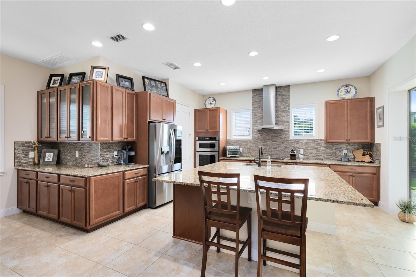 - Built-in Features, Ceiling Fans(s), Dry Bar, Eat-in Kitchen, High Ceilings, Kitchen/Family Room Combo, Living Room/Dining Room Combo, Open Floorplan, PrimaryBedroom Upstairs, Split Bedroom, Stone Counters, Thermostat, Tray Ceiling(s), Walk-In Closet(s), Window Treatments