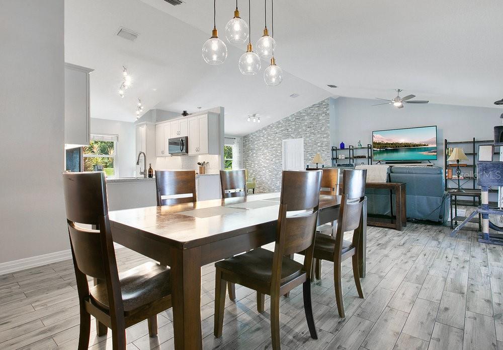 - Ceiling Fans(s), High Ceilings, Living Room/Dining Room Combo, Open Floorplan, Primary Bedroom Main Floor, Solid Wood Cabinets, Split Bedroom, Stone Counters, Thermostat, Vaulted Ceiling(s), Walk-In Closet(s), Window Treatments