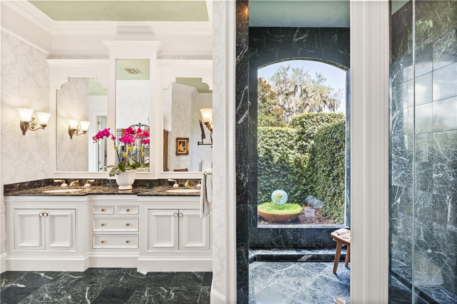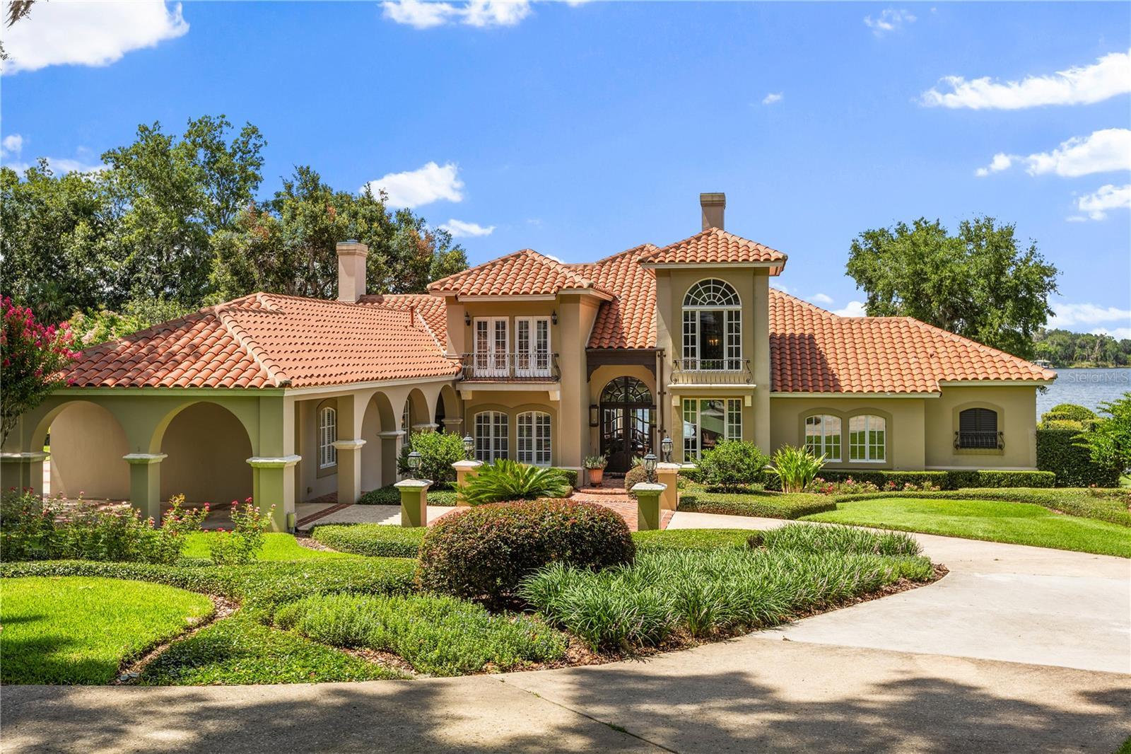 A rare opportunity to own one of the most distinguished lakefront estates on Lake Brantley, Central Florida’s premier private, sand-bottom ski lake. This custom-built estate spans 4,956 square feet, featuring 4 spacious bedrooms, 5.5 baths, a private library, wine cellar/basement, and an oversized three-car garage with a stately porte-cochere. Gas lanterns invite you beyond custom mahogany entrance doors to soaring 20-foot ceilings and expansive lake vistas. Two wood-burning masonry fireplaces, and a wealth of architectural details—extensive use of St. Louis brick, hand-scraped hard-wood flooring, and artesian crafted wrought iron throughout. Designed for the distinguished homeowner, the exquisite cherry-paneled library (or office) is a masterpiece of craftsmanship. The open-air pool and spa, fully equipped summer kitchen, and lush lawn unfold onto a private sandy beach where you can even build a sandcastle. A private dock with boat lift invites boating, skiing, or simply taking in the peaceful lake views. As twilight falls, the estate comes alive with a complete landscape lighting package, setting the scene for evening entertaining or tranquil nights under the stars. This luxury home is situated on 1.25 acres with flawless landscaping. This architectural masterpiece embodies refined relaxation right in the heart of Longwood - one of Seminole County’s most established and sought-after communities. Known for its A-rated schools, tree-lined streets, and timeless appeal, Longwood offers the perfect blend of tranquility, prestige, and convenience, with quick access to boutique shopping, upscale dining, major highways, and Orlando’s top employers. This is more than a home—it’s a one-of-a-kind legacy property that offers elegance, privacy, and Lake Brantley living at its finest.