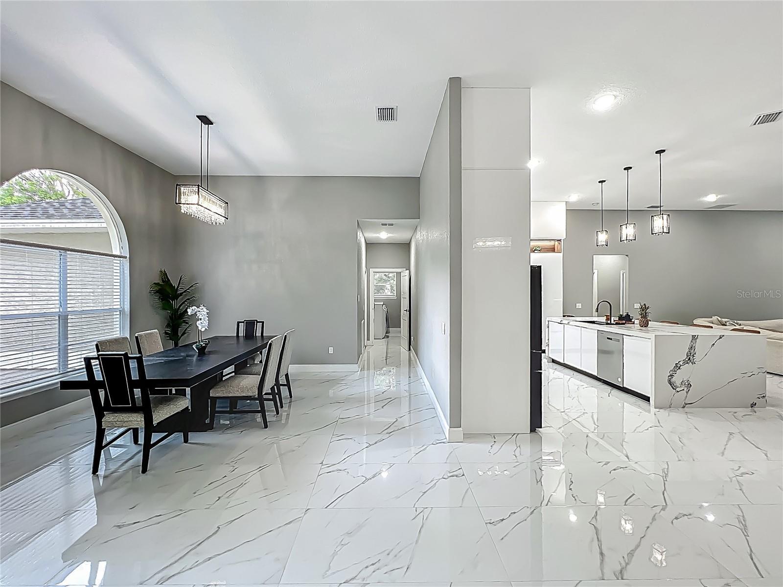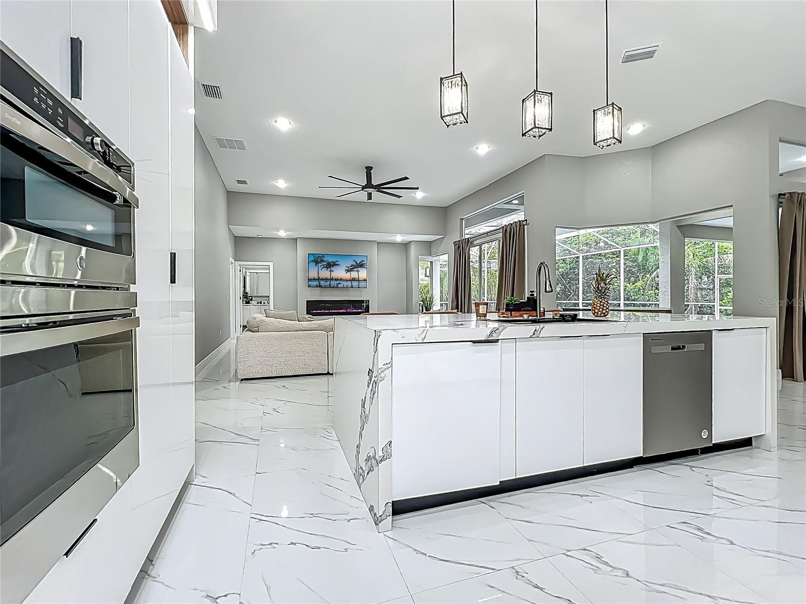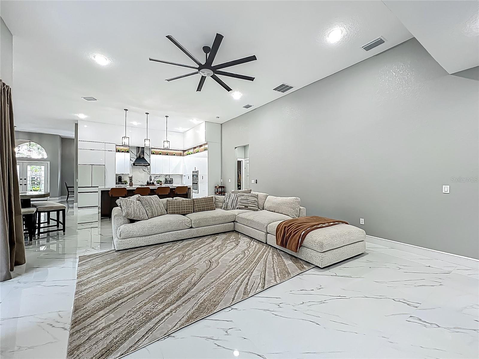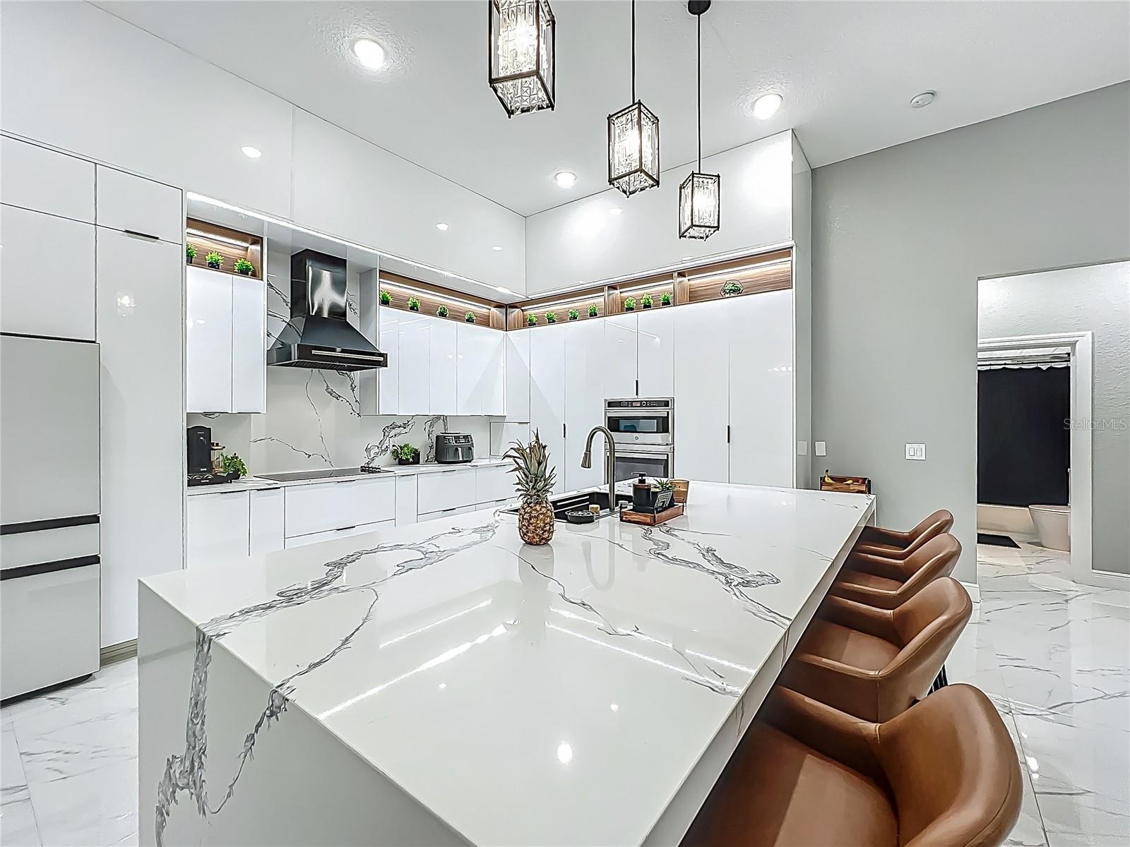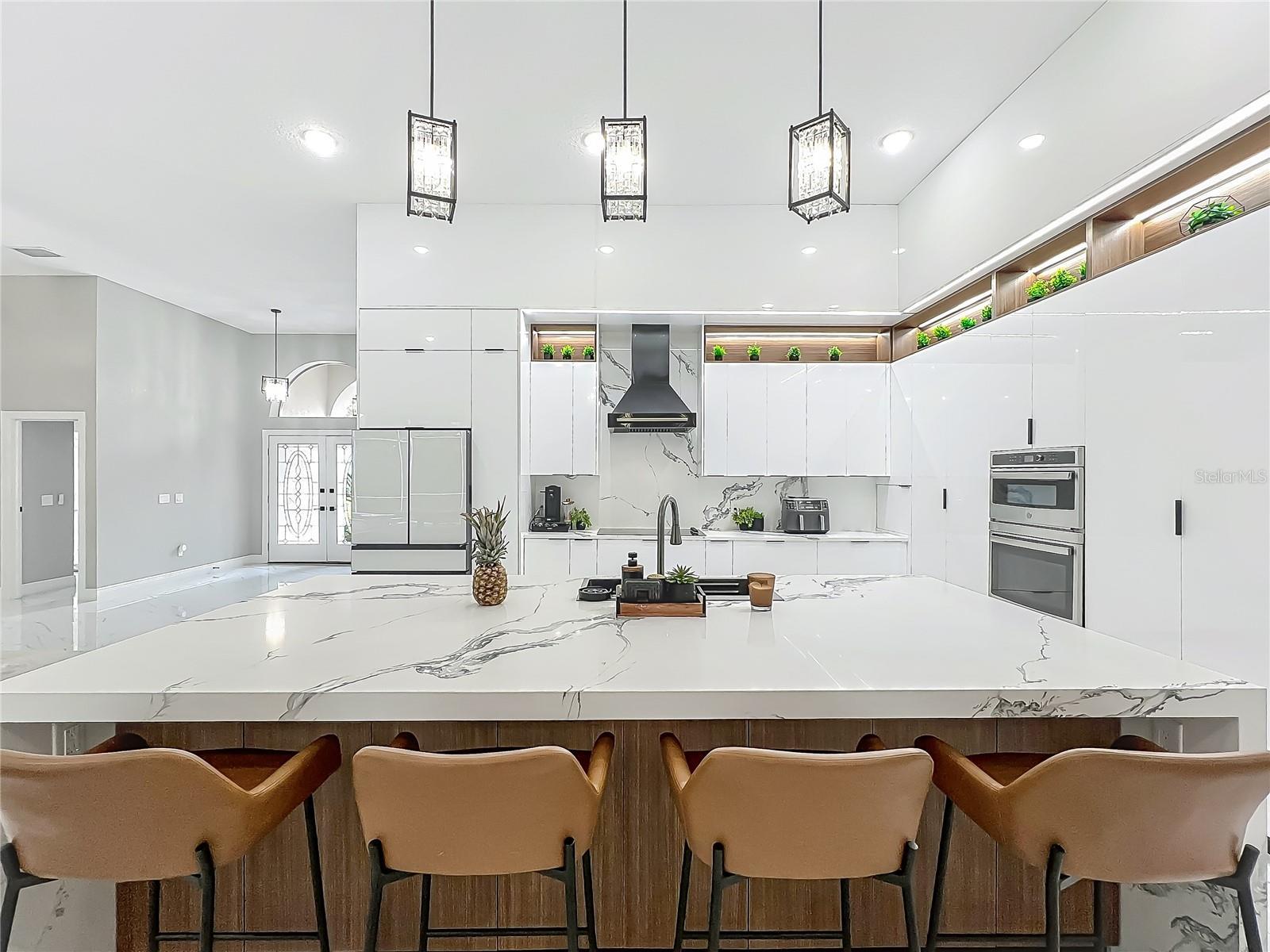 MAJOR PRICE REDUCTION - EXCEPTIONAL OPPORTUNITY! Welcome to a masterpiece of modern design and refined living in the prestigious Glen Eagle community of Tuscawilla. Built in 2023, this architectural re-imagining tucked away in a quiet cul-de-sac features 5-bedrooms and 3.5-baths and epitomizes luxury, sophistication, and thoughtful homage at every turn while encapsulating the modern family space. Bathed in natural light, the home showcases a brilliant interplay between design and illumination. Stunning porcelain tile with a marble-like finish flows seamlessly throughout the home, complementing the extravagant yet refined lighting fixtures that accentuate the home’s elevated aesthetic. The heart of the home is a show-stopping central kitchen, complete with sleek floor-to-ceiling white cabinetry accented with warm woodgrain niches and integrated LED lighting. A grand, white granite island offers an inviting centerpiece ideal for entertaining, culinary artistry, and family interconnectivity. The open-concept layout is enhanced by soaring ceilings and expansive windows, creating palatial living spaces that exude elegance and warmth. A substantial formal dining room is perfect for lavish dinner parties, while the stylish formal living room provides a serene space for conversation. The inviting family room, anchored by a sleek electric fireplace, flows effortlessly into the kitchen and living area—all overlooking the resort-style pool deck. The primary suite is a private sanctuary—expansive and serene, featuring a sun-kissed sitting area and direct pool access via a sliding glass door. The spa-inspired en suite bath is a statement in luxury, boasting a floating dual vanity with LED smart mirrors, an oversized walk-in shower, a single-piece designer toilet, and a custom walk-in closet designed for the discerning homeowner. Every secondary bedroom offers generous proportions and comfort, while the home’s layout has been meticulously planned for both privacy and flow. Step outside to a covered pool oasis with a pavered deck designed for year-round enjoyment. Whether hosting guests or relaxing in solitude, this outdoor haven is the perfect complement to the modern interior. Glen Eagle lies in the heart of the Tuscawilla community which features miles of walking trails, golf cart friendly roads, multiple parks and greenspaces including tennis and pickleball courts, as well as the Tuscawilla Country Club. A rare opportunity to own a truly bespoke residence in one of Central Florida’s most sought-after communities.