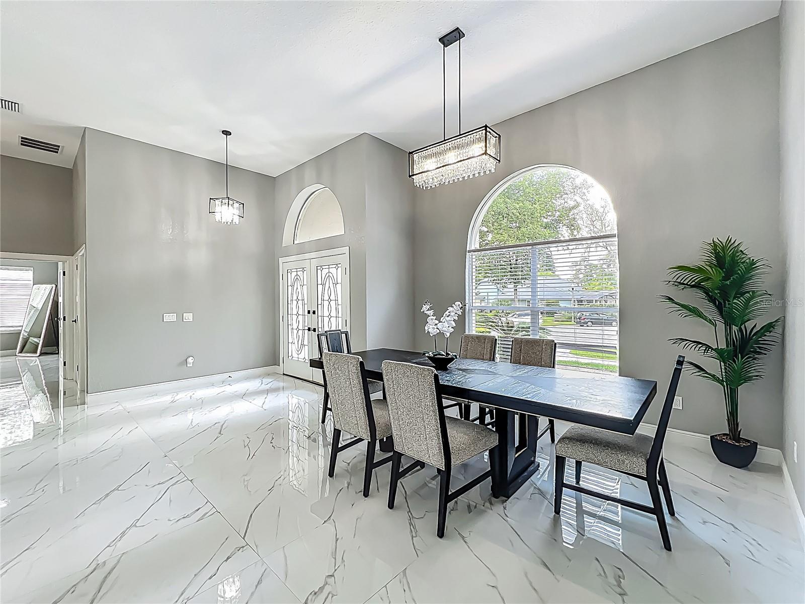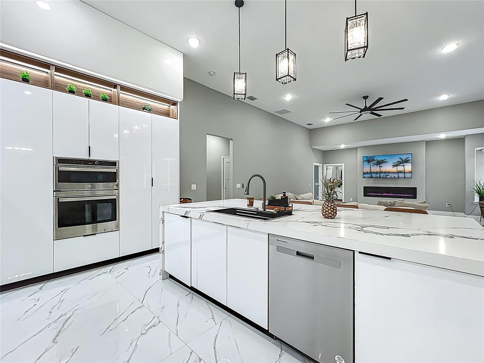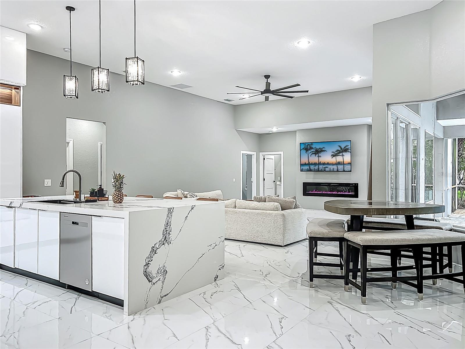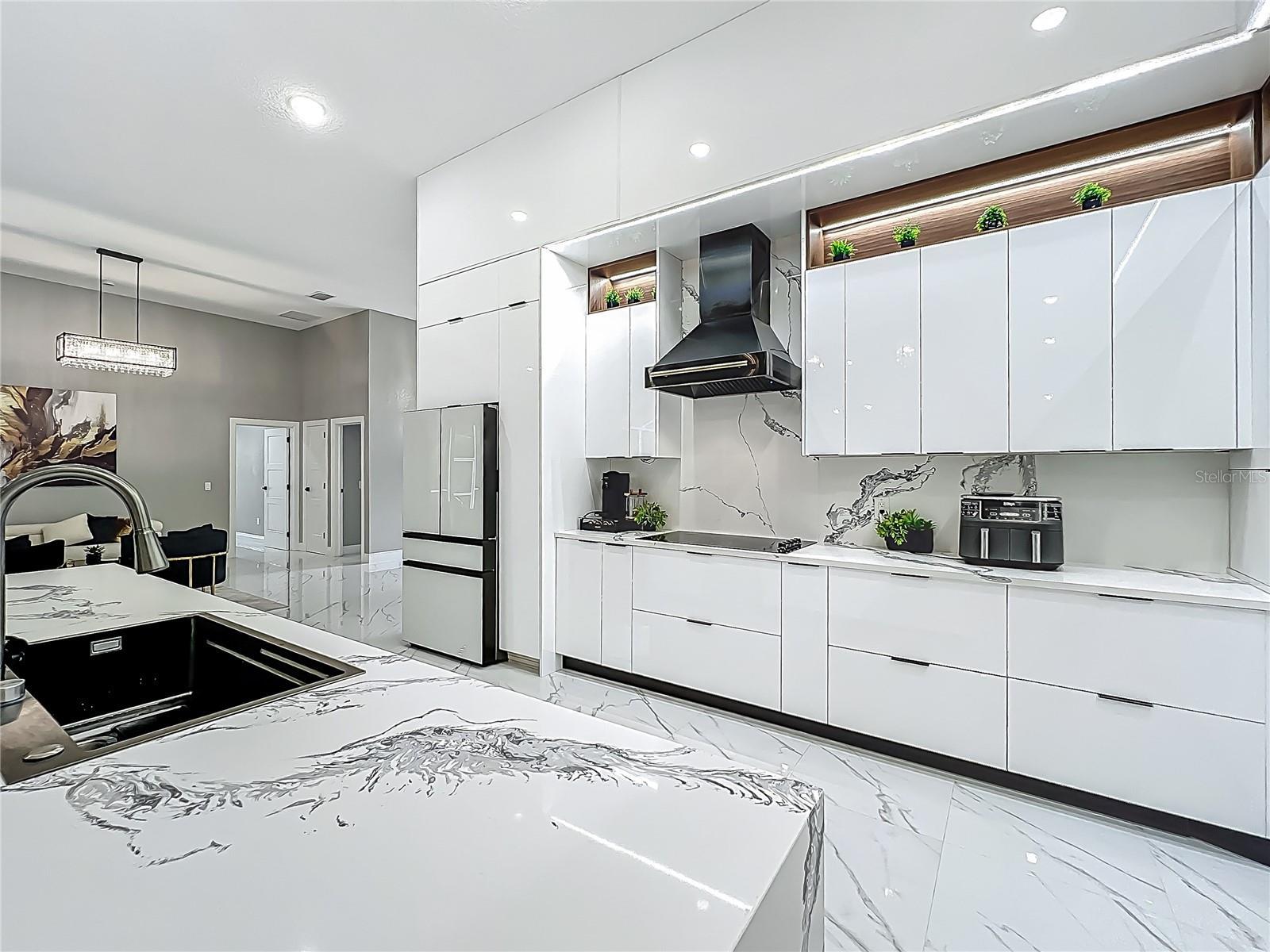 MAJOR PRICE REDUCTION - EXCEPTIONAL OPPORTUNITY! Welcome to a masterpiece of modern design and refined living in the prestigious Glen Eagle community of Tuscawilla. Built in 2023, this architectural re-imagining tucked away in a quiet cul-de-sac features 5-bedrooms and 3.5-baths and epitomizes luxury, sophistication, and thoughtful homage at every turn while encapsulating the modern family space. Bathed in natural light, the home showcases a brilliant interplay between design and illumination. Stunning porcelain tile with a marble-like finish flows seamlessly throughout the home, complementing the extravagant yet refined lighting fixtures that accentuate the home’s elevated aesthetic. The heart of the home is a show-stopping central kitchen, complete with sleek floor-to-ceiling white cabinetry accented with warm woodgrain niches and integrated LED lighting. A grand, white granite island offers an inviting centerpiece ideal for entertaining, culinary artistry, and family interconnectivity. The open-concept layout is enhanced by soaring ceilings and expansive windows, creating palatial living spaces that exude elegance and warmth. A substantial formal dining room is perfect for lavish dinner parties, while the stylish formal living room provides a serene space for conversation. The inviting family room, anchored by a sleek electric fireplace, flows effortlessly into the kitchen and living area—all overlooking the resort-style pool deck. The primary suite is a private sanctuary—expansive and serene, featuring a sun-kissed sitting area and direct pool access via a sliding glass door. The spa-inspired en suite bath is a statement in luxury, boasting a floating dual vanity with LED smart mirrors, an oversized walk-in shower, a single-piece designer toilet, and a custom walk-in closet designed for the discerning homeowner. Every secondary bedroom offers generous proportions and comfort, while the home’s layout has been meticulously planned for both privacy and flow. Step outside to a covered pool oasis with a pavered deck designed for year-round enjoyment. Whether hosting guests or relaxing in solitude, this outdoor haven is the perfect complement to the modern interior. Glen Eagle lies in the heart of the Tuscawilla community which features miles of walking trails, golf cart friendly roads, multiple parks and greenspaces including tennis and pickleball courts, as well as the Tuscawilla Country Club. A rare opportunity to own a truly bespoke residence in one of Central Florida’s most sought-after communities.