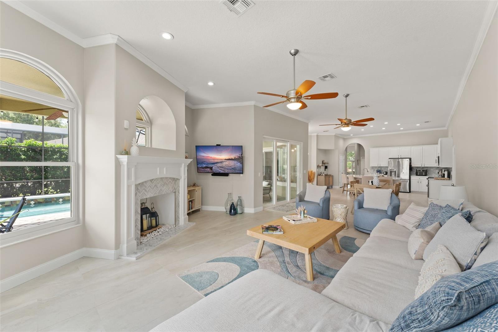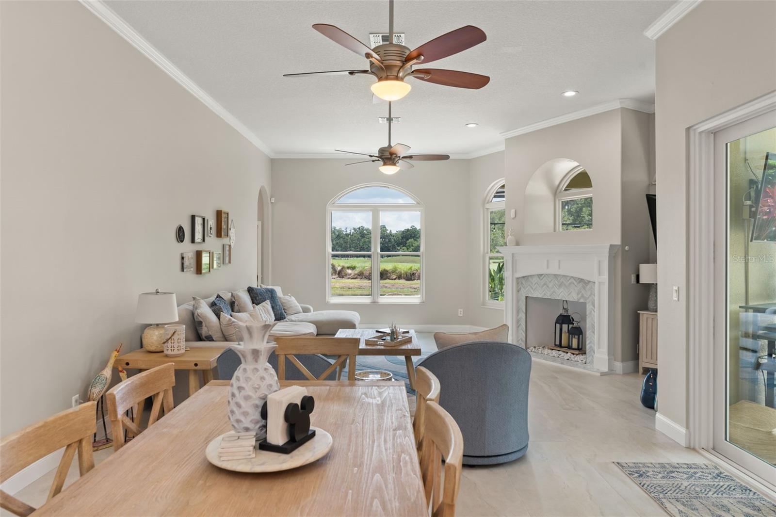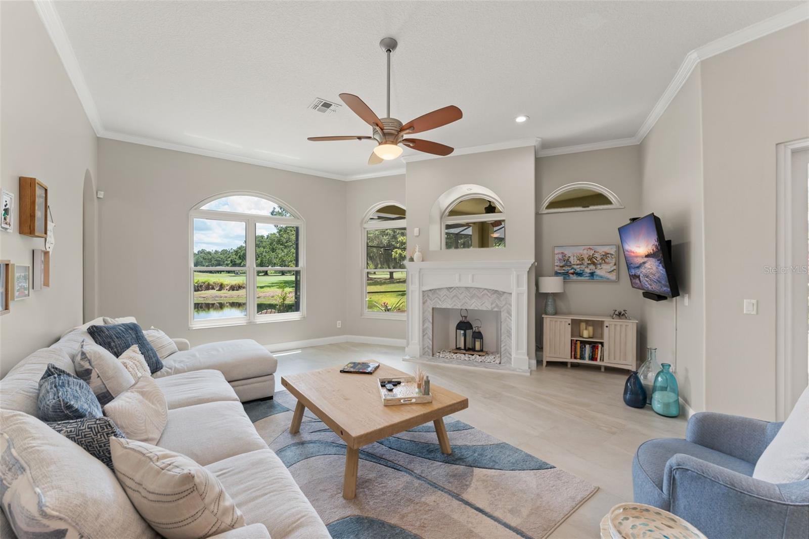 One or more photo(s) has been virtually staged. Recent structural upgrades include ROOF 2023, A/Cs 2023, WATER HEATER 2023, updated DOORS AND WINDOWS (2019). Welcome to a home where warmth, comfort, and elegance come together in the heart of Orlando’s sought-after North Shore at Lake Hart gated golf community. Nestled on over 9,600 square feet of land, this lovingly maintained residence offers 5 spacious bedrooms, 3 full bathrooms, and a 3-car garage—all thoughtfully designed across 3,662 square feet of inviting living space perfect for both quiet family moments and joyful gatherings. As you step through the front door, you're greeted by a graceful formal living and dining area filled with soft natural light that sets the tone for the rest of the home. Just beyond, the spacious family room invites connection and relaxation. The heart of the home is the beautifully updated kitchen—featuring stainless steel appliances, crisp white cabinetry, and a sunlit breakfast nook with a picture window that perfectly frames peaceful views of the pool and golf course. The main-floor primary suite is a serene retreat tucked away for privacy, offering dual walk-in closets and a luxurious ensuite bath with dual vanities, a spacious walk-in shower, and a soaking tub perfect for unwinding after a long day. Three additional bedrooms and a full bath are located on the main level, along with a dedicated office that’s ideal for working from home or managing life’s daily tasks. Upstairs, a versatile loft space awaits with vaulted ceilings—ready to become the perfect private golf simulator, game room, media lounge, or creative escape. Step outside and you'll find a true backyard sanctuary. The screened-in saltwater pool and spa overlook a peaceful pond and the rolling green of the golf course beyond—creating a tranquil, resort-style atmosphere ideal for relaxing weekends or summer celebrations. Throughout the home, tile flooring provides durability and easy maintenance, adding to the home's functionality and timeless style. Please note that while a fireplace is pictured, the gas line has been disconnected and is simply now decorative. This home has been carefully upgraded to offer comfort and peace of mind for years to come. Life in North Shore at Lake Hart offers more than just a beautiful home—it offers a vibrant lifestyle. Enjoy access to a community clubhouse, fitness center, tennis and basketball courts, walking trails, playgrounds, and more. Just minutes from major roadways, Orlando International Airport, Lake Nona Medical City, and top-rated schools, everything you need is close at hand—yet your home feels like a peaceful escape from it all. At 10254 Hart Branch Circle, you’ll find more than a place to live—you’ll find a place to belong. A home that’s ready to hold your best memories, your biggest dreams, and your next chapter. Welcome home.