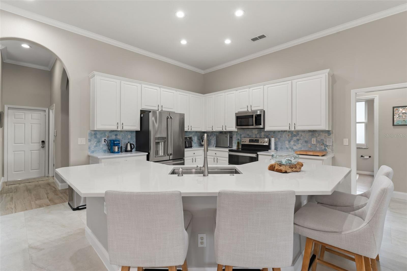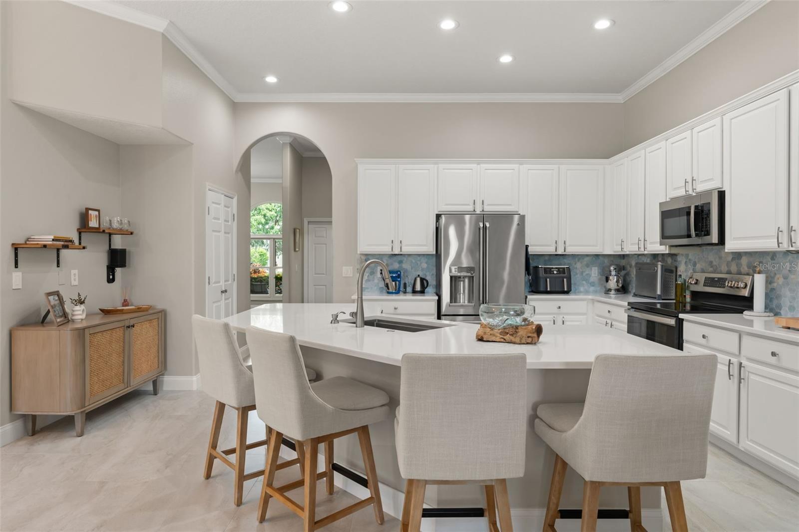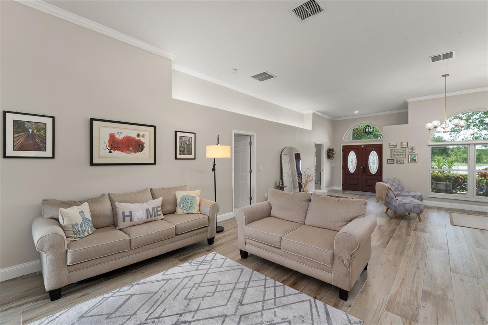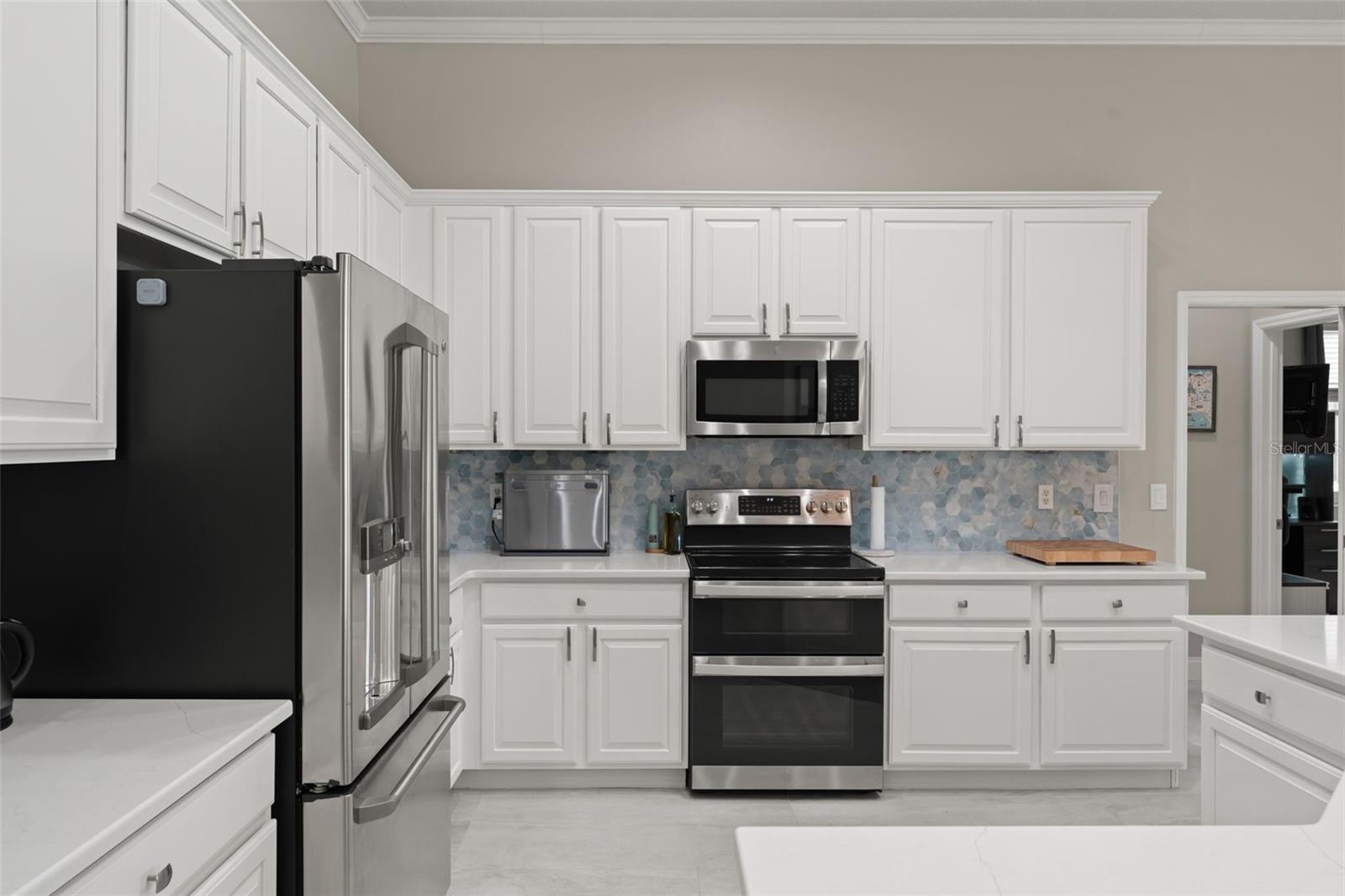One or more photo(s) has been virtually staged. Recent structural upgrades include ROOF 2023, A/Cs 2023, WATER HEATER 2023, updated DOORS AND WINDOWS (2019). Welcome to a home where warmth, comfort, and elegance come together in the heart of Orlando’s sought-after North Shore at Lake Hart gated golf community. Nestled on over 9,600 square feet of land, this lovingly maintained residence offers 5 spacious bedrooms, 3 full bathrooms, and a 3-car garage—all thoughtfully designed across 3,662 square feet of inviting living space perfect for both quiet family moments and joyful gatherings. As you step through the front door, you're greeted by a graceful formal living and dining area filled with soft natural light that sets the tone for the rest of the home. Just beyond, the spacious family room invites connection and relaxation. The heart of the home is the beautifully updated kitchen—featuring stainless steel appliances, crisp white cabinetry, and a sunlit breakfast nook with a picture window that perfectly frames peaceful views of the pool and golf course. The main-floor primary suite is a serene retreat tucked away for privacy, offering dual walk-in closets and a luxurious ensuite bath with dual vanities, a spacious walk-in shower, and a soaking tub perfect for unwinding after a long day. Three additional bedrooms and a full bath are located on the main level, along with a dedicated office that’s ideal for working from home or managing life’s daily tasks. Upstairs, a versatile loft space awaits with vaulted ceilings—ready to become the perfect private golf simulator, game room, media lounge, or creative escape. Step outside and you'll find a true backyard sanctuary. The screened-in saltwater pool and spa overlook a peaceful pond and the rolling green of the golf course beyond—creating a tranquil, resort-style atmosphere ideal for relaxing weekends or summer celebrations. Throughout the home, tile flooring provides durability and easy maintenance, adding to the home's functionality and timeless style. Please note that while a fireplace is pictured, the gas line has been disconnected and is simply now decorative. This home has been carefully upgraded to offer comfort and peace of mind for years to come. Life in North Shore at Lake Hart offers more than just a beautiful home—it offers a vibrant lifestyle. Enjoy access to a community clubhouse, fitness center, tennis and basketball courts, walking trails, playgrounds, and more. Just minutes from major roadways, Orlando International Airport, Lake Nona Medical City, and top-rated schools, everything you need is close at hand—yet your home feels like a peaceful escape from it all. At 10254 Hart Branch Circle, you’ll find more than a place to live—you’ll find a place to belong. A home that’s ready to hold your best memories, your biggest dreams, and your next chapter. Welcome home.