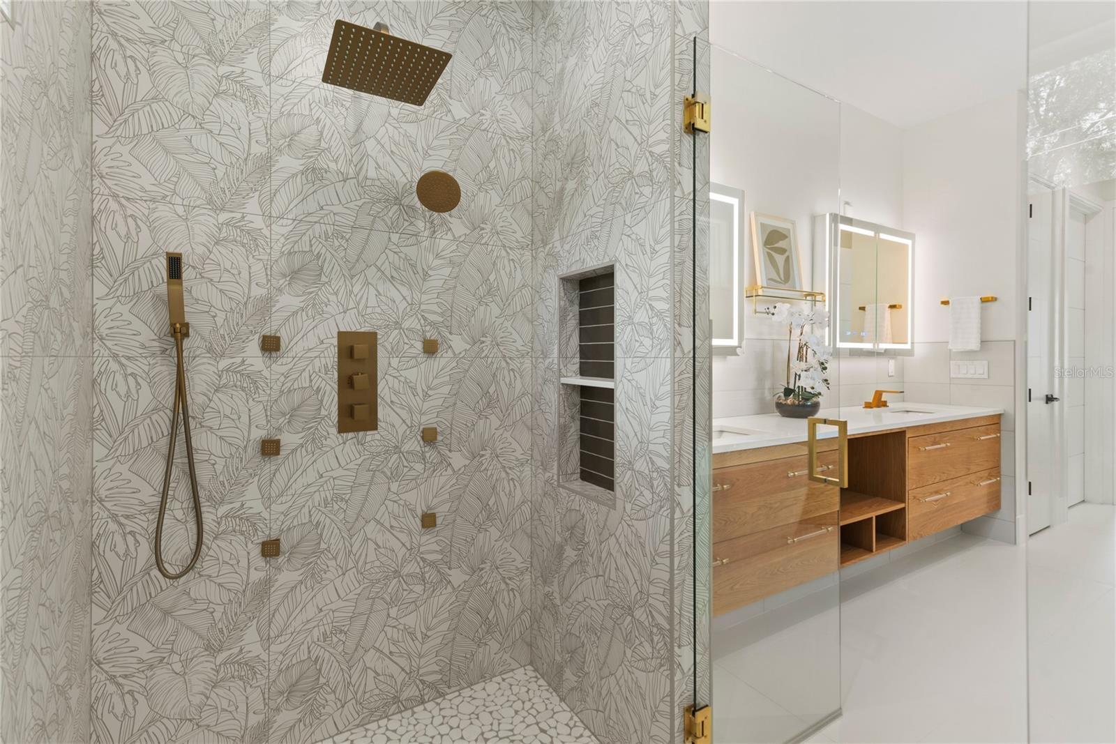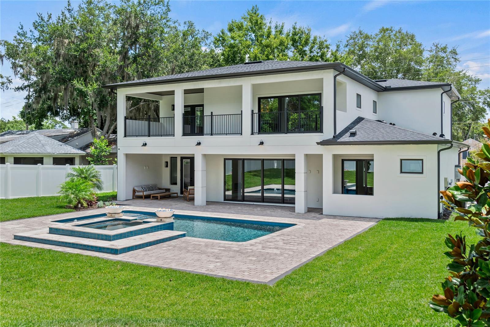 Under contract-accepting backup offers. Welcome to this stunning newly constructed home, perfectly situated on a spacious ¼-acre lot in the highly coveted Delaney Park neighborhood. Offering over 4,000 square feet of thoughtfully designed living space, this 5-bedroom, 5.5-bathroom residence showcases luxury, sophistication, and impeccable craftsmanship throughout. From the moment you step inside, you’ll be captivated by the wide plank white oak hardwood flooring, soaring ceilings, custom solid core doors, and high-end designer finishes. At the front of the home, a light-filled office with a closet provides the flexibility of a 5th bedroom. The expansive primary suite is a serene retreat featuring an electric fireplace, French doors for direct access to the backyard, a large walk-in closet, and a spa-like en suite bathroom complete with dual sinks, soaking tub, and an oversized walk-in shower with built-in massage system. The heart of the home is the open-concept living area, where the spacious family room, dining space, and gourmet kitchen seamlessly blend for effortless entertaining. The kitchen is a true showstopper—equipped with a premium Café appliance suite, quartz waterfall island, walk-in pantry with custom cabinetry and shelving, designer pendant lighting, gas range with pot filler, and a stunning fluted white oak range hood. A stylish wet bar with wine fridge and electric fireplace flanked by custom built-ins completes the family room. Expansive sliding glass doors lead to a beautifully landscaped, fenced backyard oasis. Enjoy outdoor living year-round with a covered lanai featuring tongue & groove ceilings, a full outdoor kitchen with sink, gas grill, beverage fridge and bar seating, plus a luxurious heated PebbleTec saltwater pool and spa with sunshelf, water feature, and two dramatic gas fireballs. Additional features include a full pool bath, white vinyl privacy fence, irrigation system, landscape lighting, and rain gutters. The first floor also includes a half bath and a well-appointed laundry room with custom cabinetry and utility sink. Upstairs, you’ll find three generously sized bedrooms, each with its own en suite bathroom and walk-in closet, a large loft space with wet bar, and a covered balcony overlooking the backyard. Smart & Energy-Efficient Features: Whole-property WiFi with four access points (including full outdoor coverage), Two high-efficiency HVAC systems, Three Rinnai tankless gas water heaters, Ring doorbell + four CCTV security cameras, Comprehensive ADT security system with door sensors, variable speed high efficiency pool pump. All of this is ideally located walking distance to Lake Davis, Lake Cherokee, Delaney Park’s tennis courts, baseball fields and playground, and A-rated Blankner K-8 and Boone High School. Enjoy the convenience of being near SODO, Thornton Park, Orlando Health, and the Dr. Phillips Performing Arts Center. Don’t miss your chance to own this one-of-a-kind, new construction masterpiece in one of downtown Orlando’s most sought-after neighborhoods!
