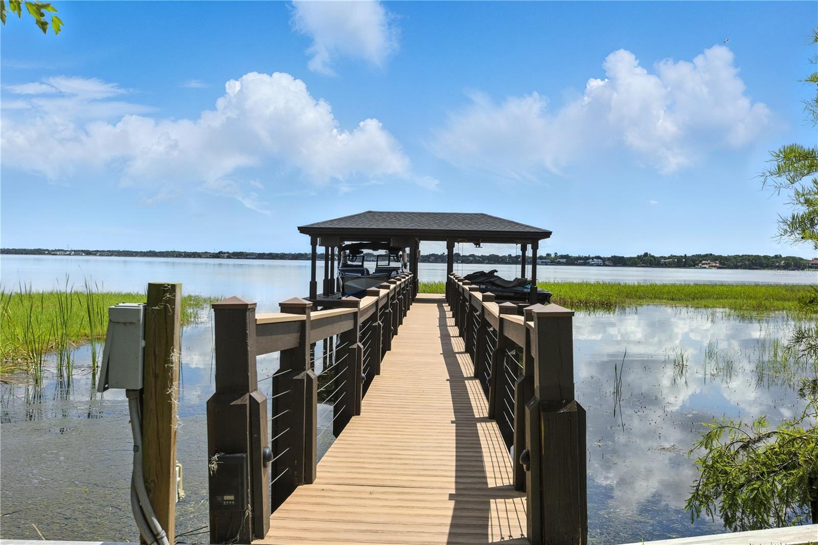 CHARMING COTTAGE ON THE BUTLER CHAIN of Lakes! This property features just under 3000 sq ft, 3 bedrooms, 2 1/2 baths and a STUNNING 100 FEET OF LAKEFRONT ON LAKE TIBET located in the coveted BUTLER CHAIN OF LAKES in Windermere/Orlando and NO HOA! LOCATED IN ORLANDO, but less than a MINUTE drive TO WINDERMERE AND within 10 minutes to downtown Windermere and ALL of the charm and activities IT HAS TO OFFER. Completely remodeled from top to bottom in recent years, it's ready to move in! The views start the moment you start walking down the meandering path to the front door as you look through the glass and see the gorgeous lake views, which only get better as you walk into the home. The generously sized foyer will greet your guests as you walk past the dining area and into the huge living space that has a wall of windows and French doors to allow the stunning views of the lake to frame your living space. This large gathering space has beautiful, newly re-finished wood floors that you will love! Through the French doors, your air-conditioned Florida family room with a wall of windows and wood paneled ceiling is the perfect place to gather overlooking the dock and then lake. This home boasts a spacious kitchen complete with new cooktop, double ovens, solid wood cabinetry, granite, and even a butcher block prep station. There is also a beautiful breakfast nook area with banquette and an amply sized walk-in pantry. The large laundry/mud room off the kitchen provides storage and a separate entrance from the garage or front porch! The tucked away, primary suite will not disappoint with its own covered lanai overlooking the lake to spend morning sipping coffee or evening with a glass of wine, a functional bathroom with soaking tub/separate shower, walk in closet as well as a wall of closets. The secondary bedrooms both have custom closets, one with a walk in, and both have low maintenance luxury vinyl plank flooring. The full guest bathroom is right off both of them and the half bath is located off the foyer. It's just under 2 acres of pristine Florida land complete with landscaping that has all been professionally redone in the last few years. The cedar fence down both sides, provides some privacy and adds to the beauty of the yard. Reconditioned in 2018 and 2024, the covered dock has low maintenance composite decking, a raised boat lift and 2 raised jet ski lifts and extends close to 100 ft into Lake Tibet for fishing off the dock or just soaking in the sun and views. Just imagine yourself living the lake life right outside your door. The roof was replaced in 2022 as well as new gutters, re-built seawall, and the exterior has been completely repainted. There is a detached, 2-car garage that you can access from the mud room and a covered breezeway protects you from the elements. The inviting front porch is the perfect place to look out onto the gorgeous front yard, which sits well off of the road. There is also another area for outside entertaining between the breezeway and front porch, there is so much outdoor living in this home! Call today for your private showing of the wonderful lakefront oasis!
