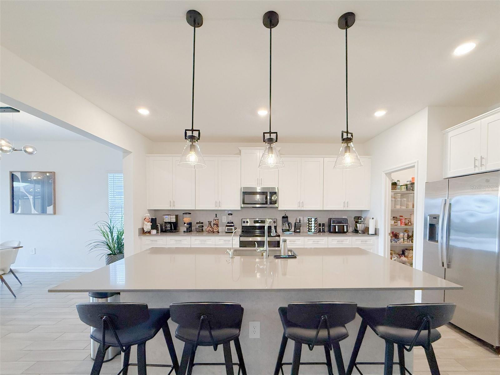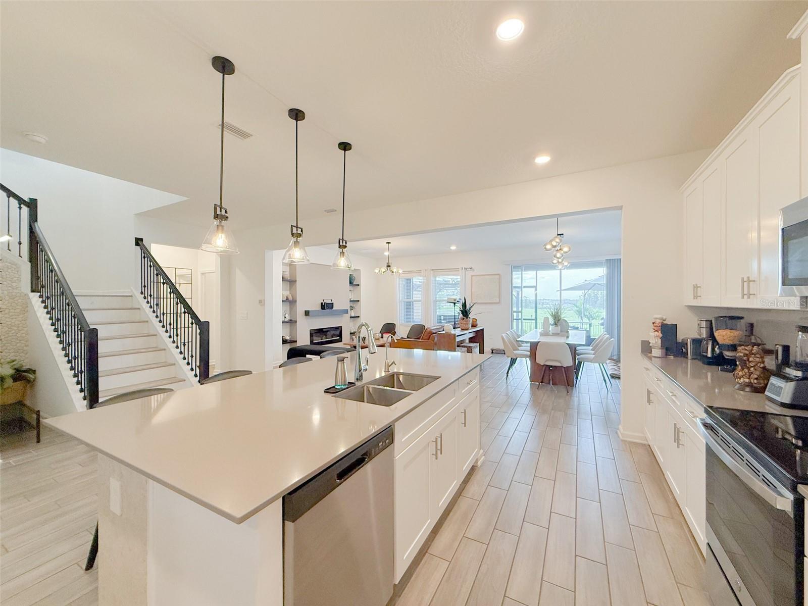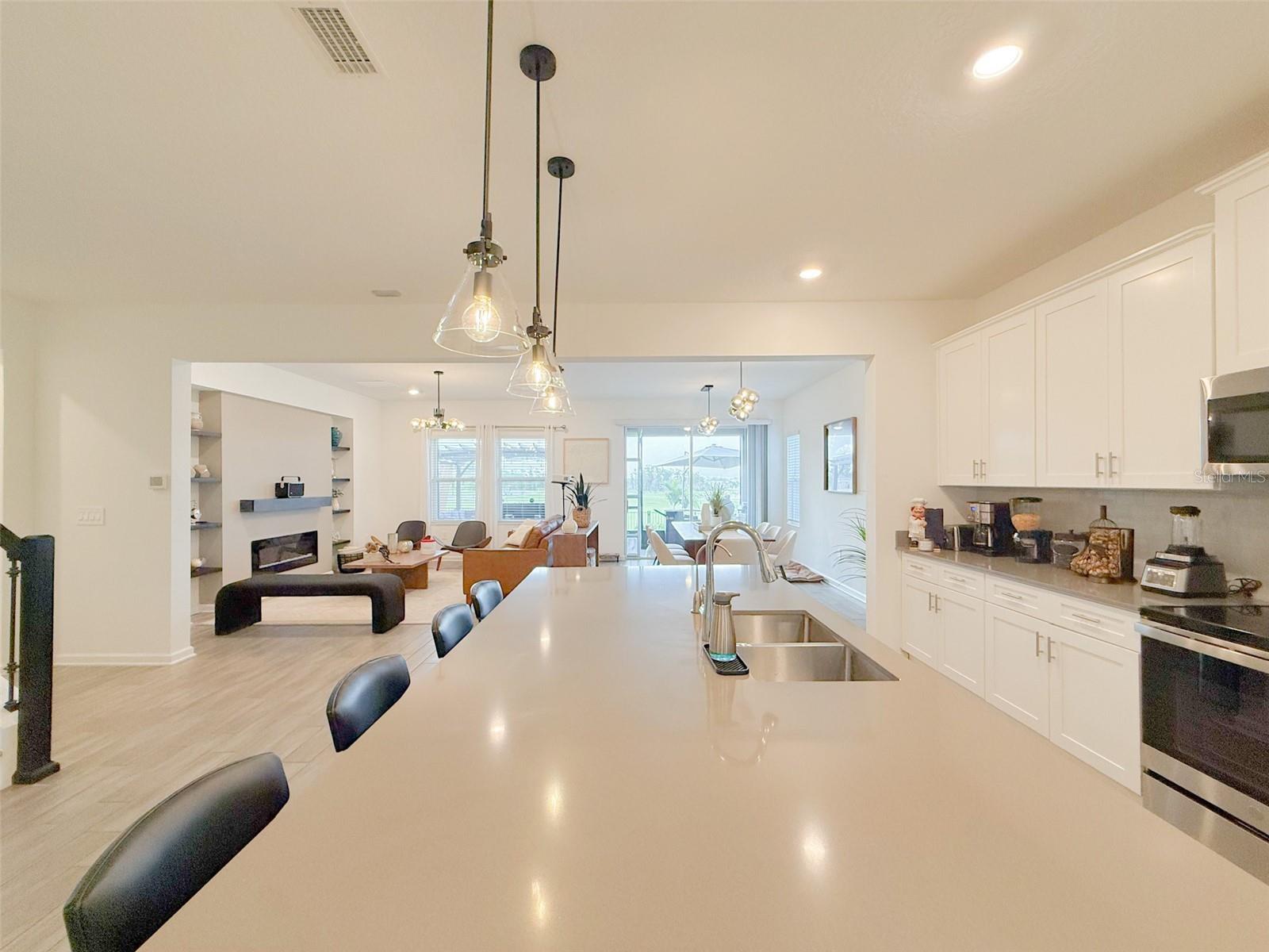 Water View, Water View, Water View! Must-See Home with Stunning Backyard Water Views! Immerse yourself in this must-see a stunning two-story home featuring 4 spacious bedrooms, 3 full bathrooms, and 3,072 SqFt, located on a premium lot with no rear neighbors. Enjoy peaceful backyard water views that offer privacy, elegance, and a sophisticated, low-maintenance lifestyle. Please note: a water view does not imply direct access, only a serene visual backdrop. Step into a bright and airy open-concept layout with soaring ceilings, designer lighting, wood-look ceramic tile downstairs, and luxury vinyl upstairs—completely carpet-free. The kitchen is a chef’s dream, showcasing an expansive countertop and high-end stainless steel appliances—perfect for cooking and entertaining. Upstairs, enjoy a versatile loft space—an ideal setting for a media room, playroom, or home office—offering flexible functionality that adapts to your lifestyle. Furnishings to convey are available for purchase as an optional add-on (all indoor furniture, TVs, décor, and appliances, styled with an elegant aesthetic) Outside, your private oasis includes a covered and screened lanai with ceiling fans, plus a beautiful backyard setup featuring a pergola, fire pit, grill, and a comfortable seating area—all designed to showcase the serene water view. Additional highlights include a 2-car garage with built-in overhead shelving, an extended driveway that fits four more vehicles, an automated irrigation system, and HOA-maintained landscaping. Just bring your suitcase, turn the key, and start enjoying your new life! Located in the sought-after Storey Grove community, enjoy resort-style amenities including a clubhouse, fitness center, resort pool, multiple playgrounds, dog parks, and scenic walking trails. Ideally situated near top-rated Horizon West schools (A Schools), the new Publix shopping center, SR429, US?192, and just minutes from Walt Disney World, this beautifully decorated, move-in-ready home in one of Winter Garden’s fastest-growing neighborhoods is truly a rare find—schedule your private tour today!