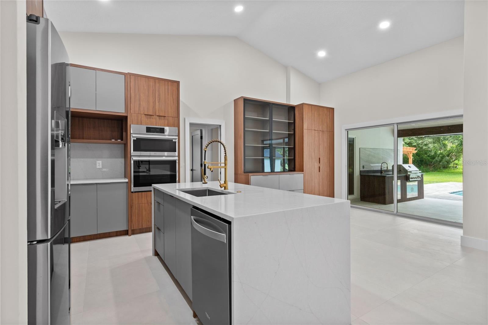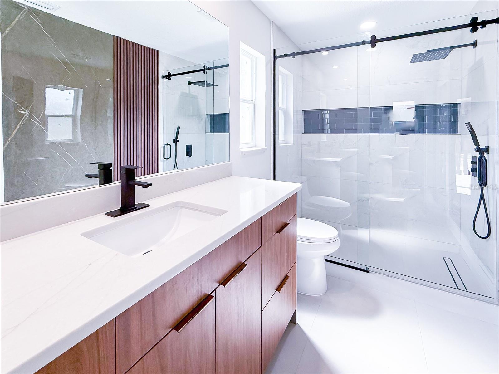 RARE 1-ACRE LOT living awaits in this fully renovated modern residence, ideally situated on a quiet CUL-DE-SAC close to Windermere Town. The unparalleled space allows you to PARK YOUR RV/VESSELS IN YOUR BACKYARD and BUILD YOUR OWN ENTERTAINMENT AREA. Inside, the home is move-in-ready, featuring a brand-new contemporary kitchen with custom cabinetry, quartz countertops, and high-end appliances. This 4-bedroom, 4-bathroom property offers expansive living areas with soaring ceilings, oversized porcelain tile flooring, and replaced windows/sliding doors for optimal natural light. Major updates include a 2021 roof, updated electrical, two brand-new AC/heater systems, and a resurfaced private pool with new equipment, complemented by a covered summer kitchen. This is a perfect blend of luxury, space, and functionality in a pleasing neighborhood.