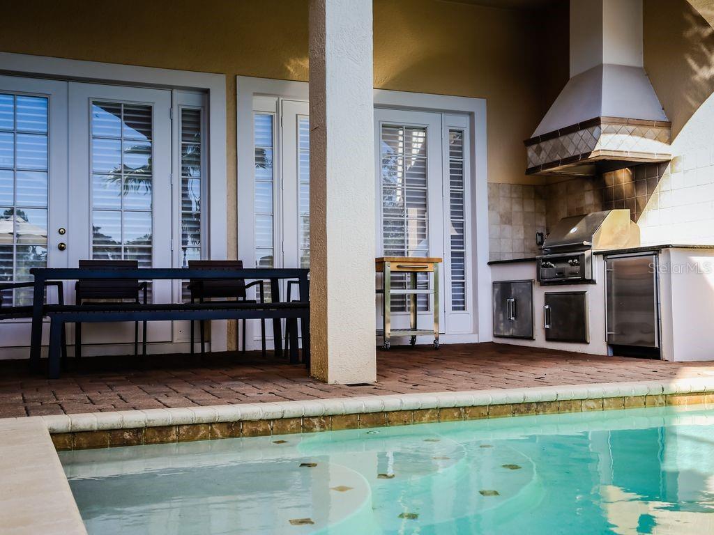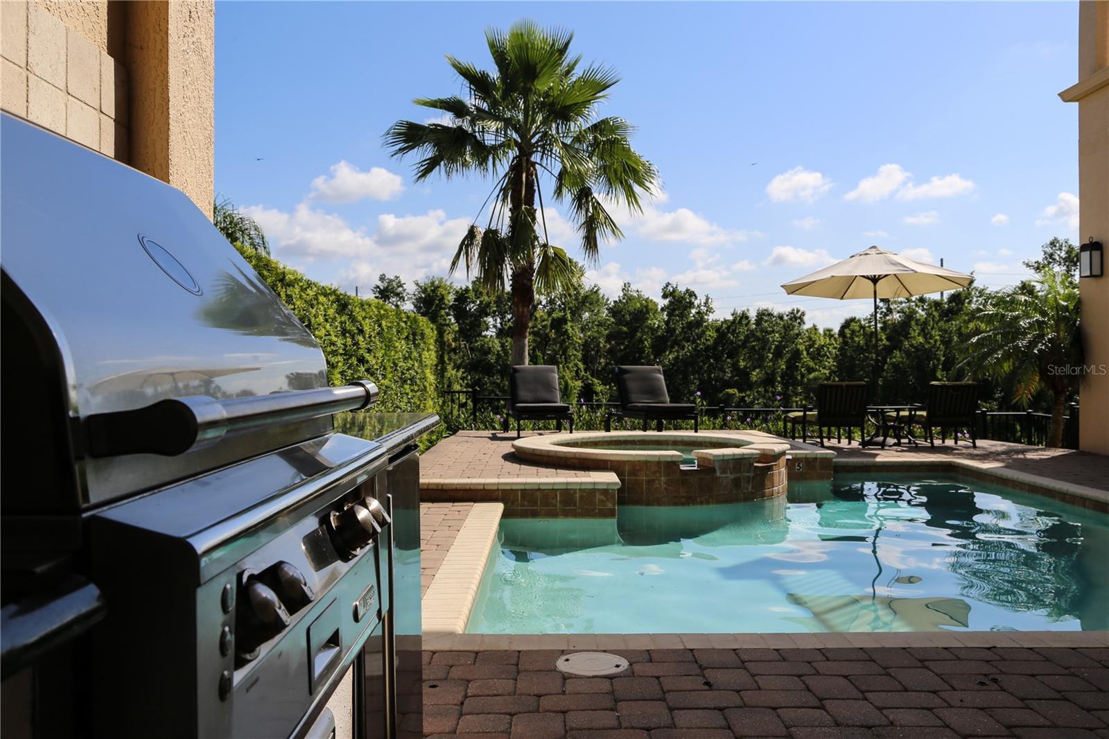 From the moment you step through the front gate and into the private courtyard , you will understand why this lovely villa is named Villa of Joy. Luxury living awaits you. This home is one of the most delightful and contemporary homes in this exclusive Community. While each room is impeccably designed, the villa maintains an environment of tranquility and relaxation. The home features 5 spacious bedrooms , all with ensuite bathrooms. The master bedroom , and two further bedrooms are located upstairs, while two bedrooms are downstairs. There are three unique living areas , perfect for families that need a lot of space.The formal living room features a built in fireplace, cathedral ceilings and modern styling surrounded with natural light from the wall of french doors. The gourmet kitchen, fully fitted with stainless steel appliances has two dining areas. The outdoor amenities will not disappoint. The pool area is paved , and boasts a summer kitchen with bbq, sink and refrigerator . From the rear of the property, either from the pool deck or viewing from the large tiled balconies above, you can enjoy a panoramic view of natural woodland and the golf course. Reunion Resort offers its own array of entertainment, amenities and restaurants and is also conveniently located minutes drive from the many other famous Orlando attractions such as Disney, Universal Studios and Sea World.