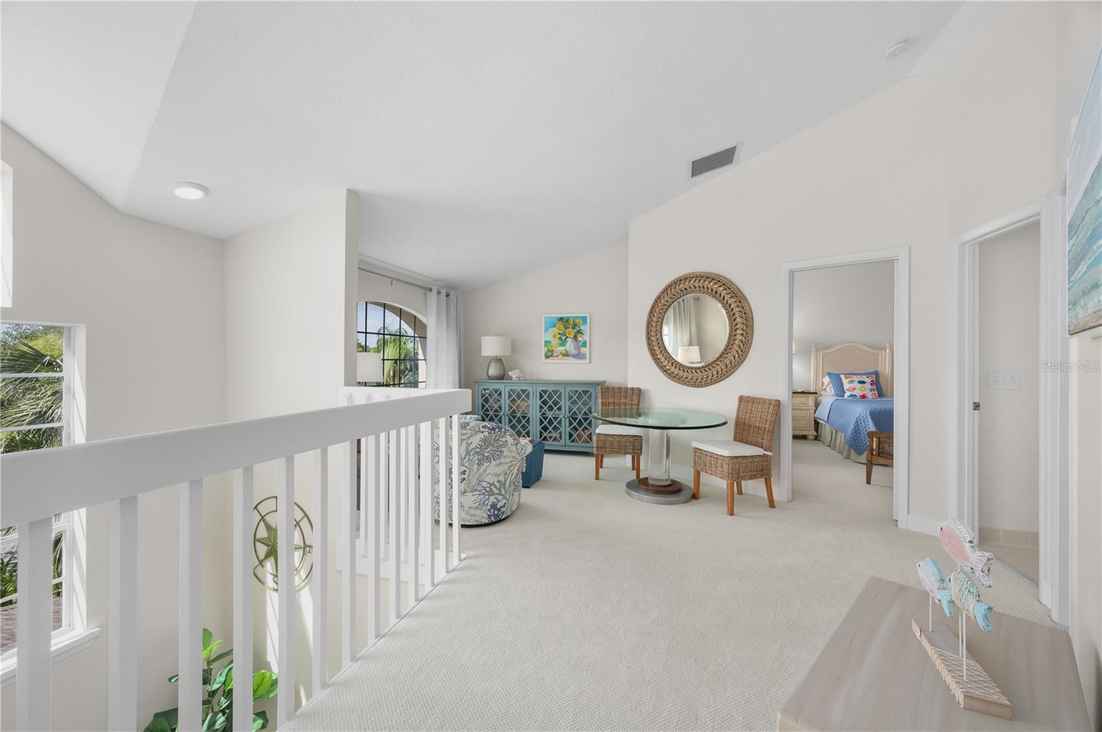 Under contract-accepting backup offers. Enjoy private tropical resort lifestyle in this rarely available 2 story Lakeside Villa featuring two primary bedrooms. The upstairs primary bedroom includes a walk-in closet and private access to the shared bath. Water and treehouse views in this completely renovated 3BR / 2.5 BA ocean to river Sea Oaks’ condominium. Enjoy spectacular natural light with volume ceilings and expansive windows. Wood floors, glass enclosed balcony, large 2 car garage. Active racquet club with 16 Har-Tru courts, Pickleball and Fitness Center. Oceanfront beach club with restaurants, pool, jacuzzi and private beach access. Enjoy sunsets at the marina and walk or bike the Historic Jungle Trail. Experience coastal living with nearby cultural, golf and seaside activities. Available furnished or unfurnished.