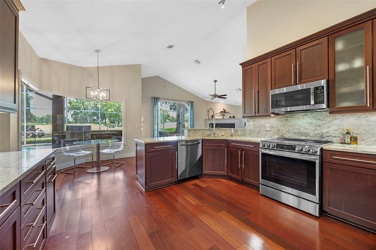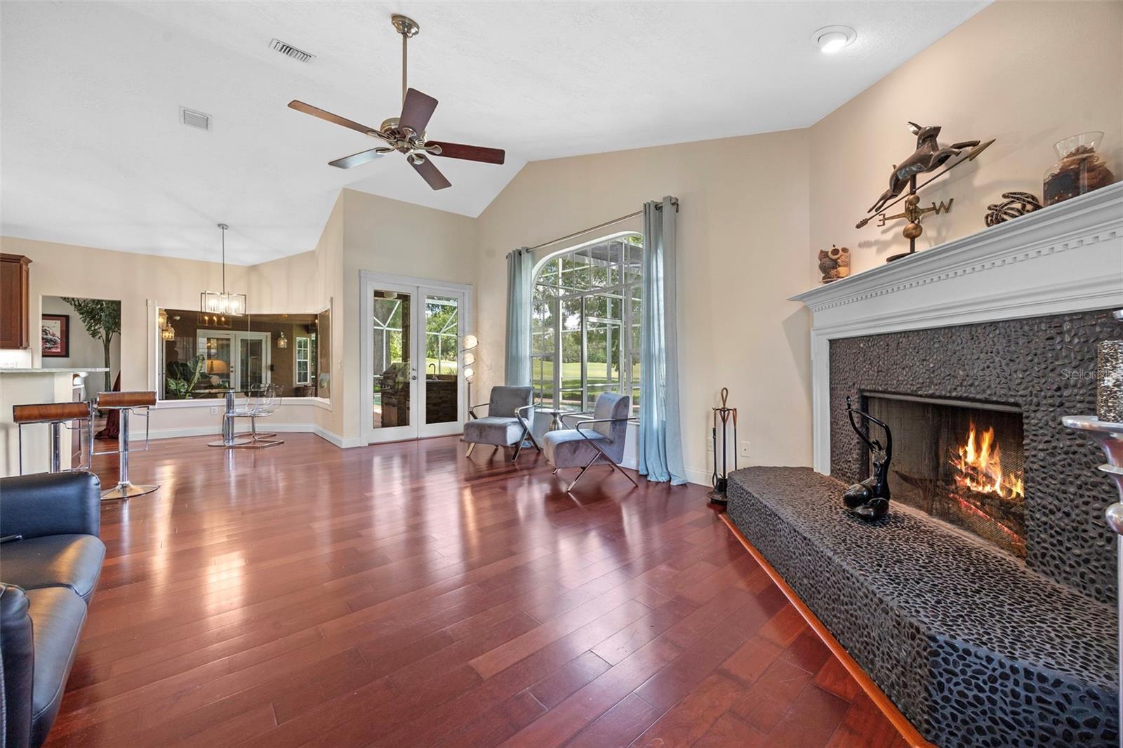 Dream Golf Front Pool Home in Desirable Fairway Cove Welcome to your private retreat on the golf course — a beautifully maintained 4-bedroom, 3-bathroom pool home perfectly positioned on a premium lot in the sought-after Fairway Cove community. From the moment you walk through the front door, you’ll feel right at home. A bright and welcoming foyer opens to a private home office and an elegant formal dining room — the perfect setting for holiday dinners and celebrations. The spacious living room features cathedral ceilings, gleaming wood floors, and large sliding doors that draw your eye straight to the stunning outdoor space. At the heart of the home, you’ll find a chef’s kitchen with tall wood cabinets, granite counters, stainless steel appliances, and plenty of prep space. The breakfast nook offers peaceful morning views of the sparkling pool and lush fairway beyond. The cozy family room, complete with a wood-burning fireplace, creates the perfect spot to unwind after a long day. The master suite feels like a private sanctuary with serene pool and golf course views, two oversized walk-in closets, and a luxurious en suite bath featuring a soaking tub, walk-in shower, and dual vanities. Step outside and enjoy your own backyard oasis — a screened-in pool and spa, covered lanai with built-in BBQ kitchen, and plenty of space for relaxing or entertaining with friends. The oversized 3-car garage offers custom cabinetry, a work sink, and laundry area — ideal for staying organized. Located just minutes from shopping, top-rated schools, highways, and local attractions, this home offers the perfect balance of luxury, comfort, and convenience. Come see this meticulously cared-for home in person — it’s everything you’ve been looking for and more.
