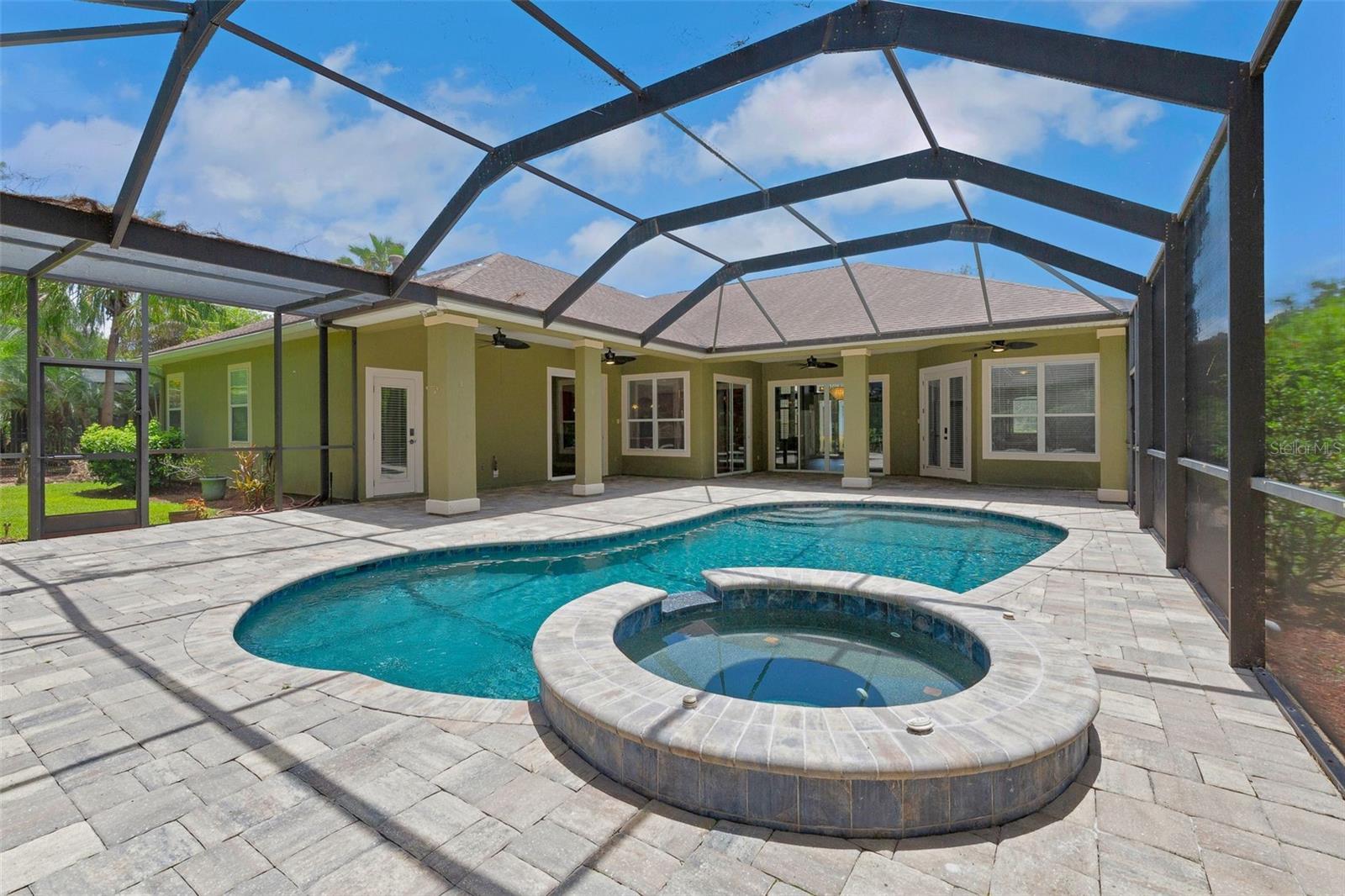Experience Florida luxury living at its finest in this beautifully upgraded 5-bedroom, 3-bath pool home, nestled on a private cul-de-sac lot in the gated community of King & Bear in World Golf Village. With over 3,000 square feet of living space, this move-in-ready home features an open-concept layout, soaring ceilings, engineered hardwood floors, crown molding, a gas fireplace, and custom finishes throughout. At the heart of the home is a gourmet kitchen with granite countertops, a large center island, stainless steel appliances, and a spacious walk-in pantry—perfect for both everyday living and entertaining. The main-level primary suite offers a tranquil retreat with a tray ceiling, dual walk-in closets, and a spa-like en-suite bath with a soaking tub and separate shower. Upstairs, a versatile bonus room provides the ideal space for a media room, playroom, or guest suite. Step outside to your own private oasis with a screened lanai, sparkling pool and spa, and a paver deck designed for relaxing and hosting guests. An oversized 3-car garage ensures ample storage. The exterior was fully repainted in October 2025. Being sold AS IS, WHERE IS, Buyer is responsible for all inspections. All information & property details set forth in this listing, including all utilities & all room dimensions, are approximate, are deemed reliable but not guaranteed, & should be independently verified if any person intends to engage in a transaction based upon it. Seller/current owner does not represent and/or guarantee that all property information & details have been provided in this MLS listing.