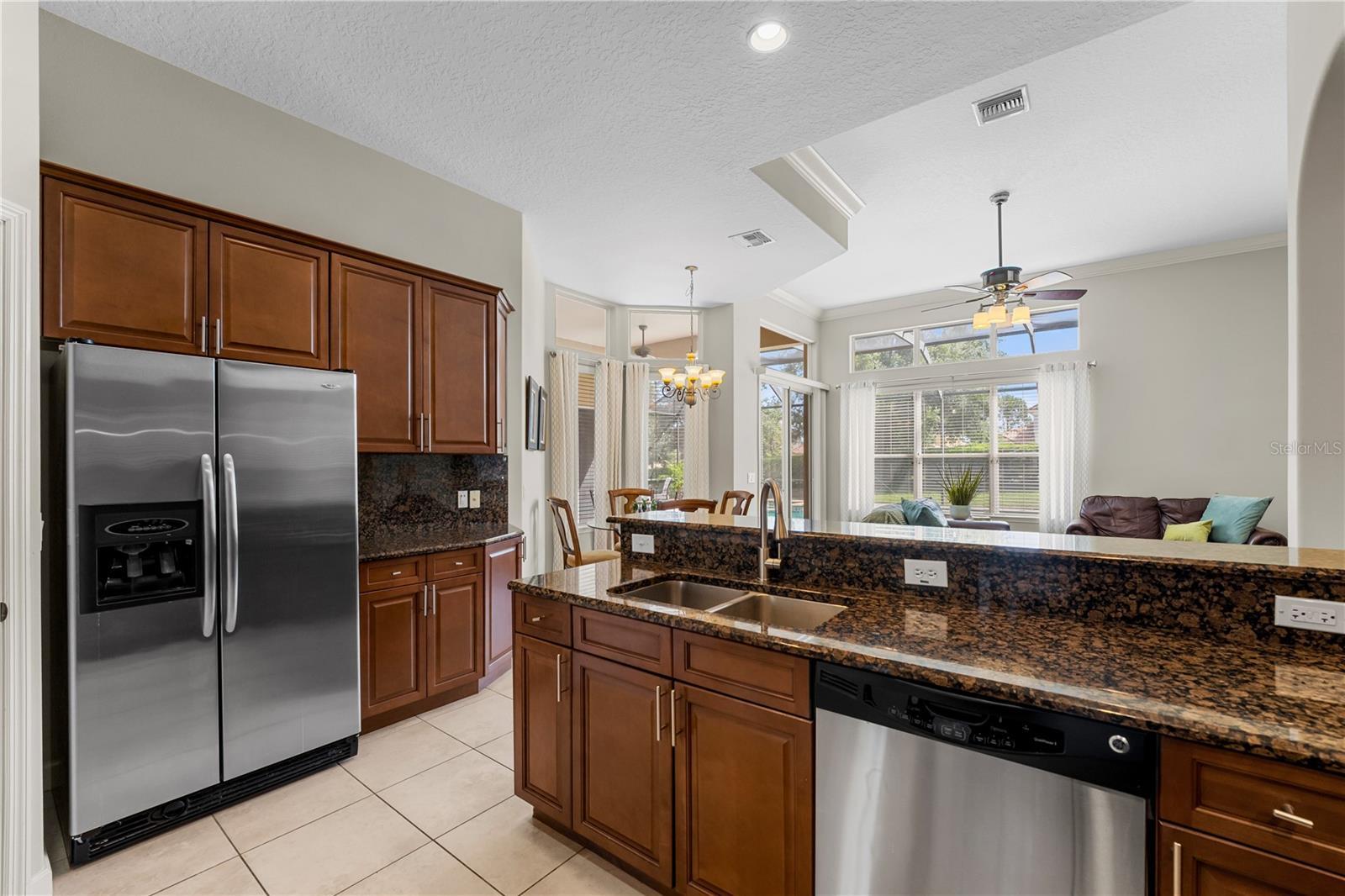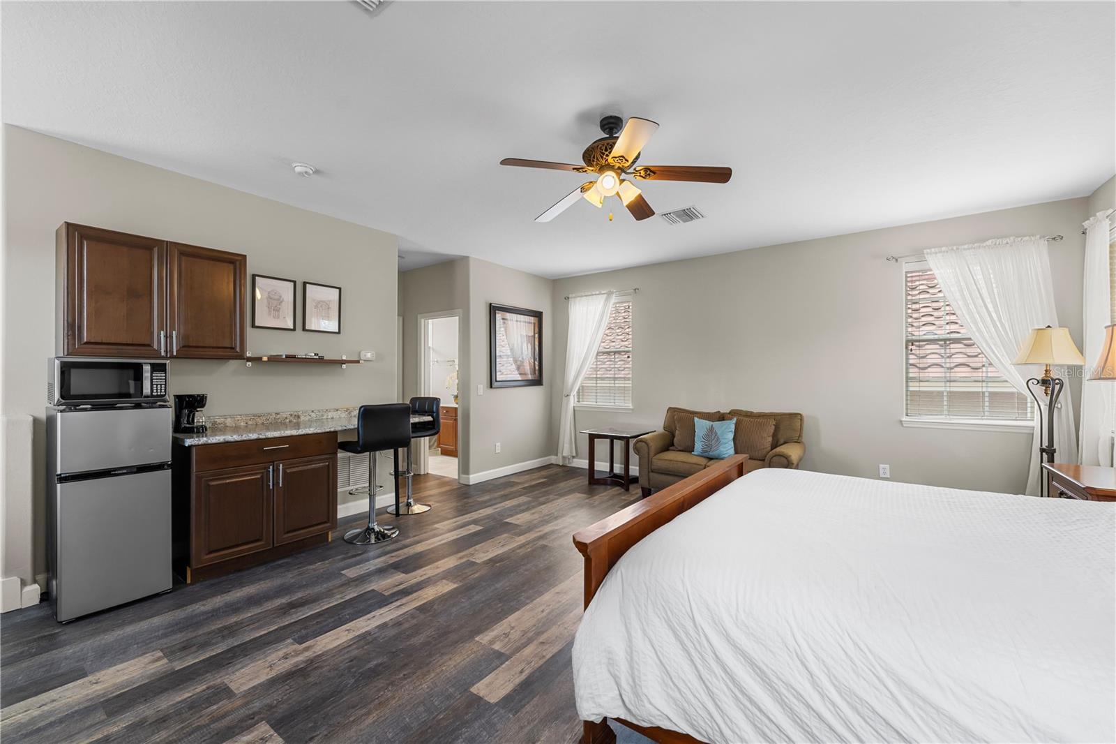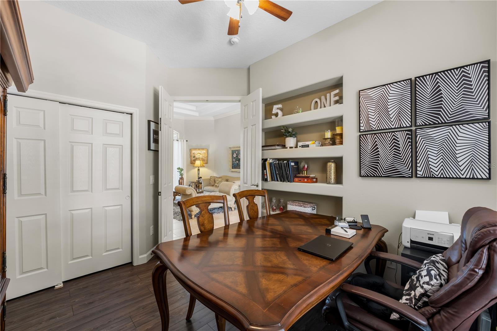 - Ceiling Fans(s), Crown Molding, Eat-in Kitchen, High Ceilings, Kitchen/Family Room Combo, Living Room/Dining Room Combo, Primary Bedroom Main Floor, Solid Wood Cabinets, Stone Counters, Thermostat, Tray Ceiling(s), Walk-In Closet(s), Window Treatments