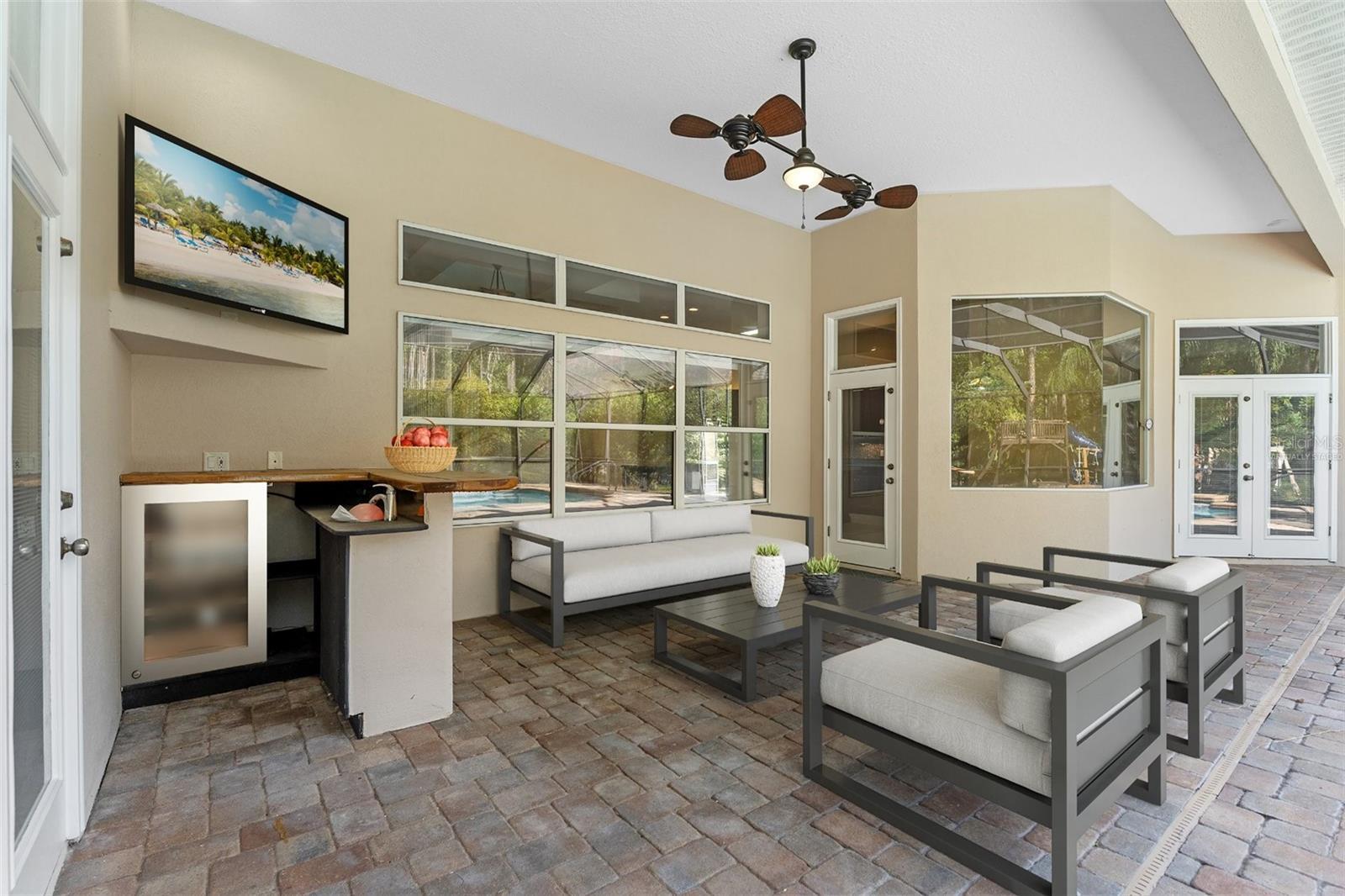 Experience refined living in this private estate gracefully positioned on more than three-quarters of an acre in the prestigious Hunters Ridge community. Encompassing 4,335 square feet, this executive pool residence blends timeless design with modern functionality, offering the ideal backdrop for intimate gatherings and grand entertaining alike. Upon entry, soaring 14-foot tray and coffered ceilings, rich hardwood flooring, and a seamless open layout connect the formal dining room, great room and gourmet kitchen. Every detail has been thoughtfully curated to elevate daily living. From the dedicated home office to the expansive bonus suite with a private balcony, ideal as a secondary en-suite, multigenerational retreat or state-of-the-art media room. Outdoors, an enclosed lanai frames a sparkling pool with water features, all overlooking a tranquil preserve backdrop that offers natural beauty and privacy. The Tesla solar system with whole-home battery backup provides efficient, sustainable power and acts as a generator during outages, while the oversized three-car garage offers built-in storage and a Tesla EV charger. Set within a tranquil enclave yet minutes from shopping, dining, major highways and multiple area beaches, this property captures a blend of luxury, innovation and Florida living.