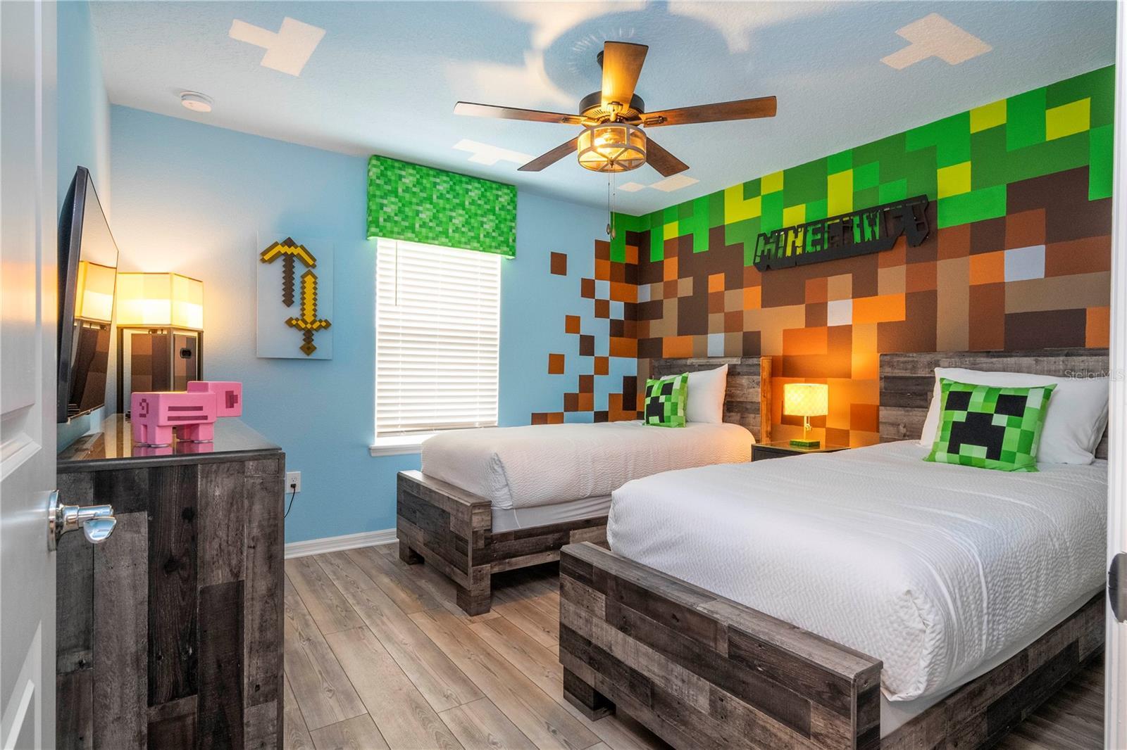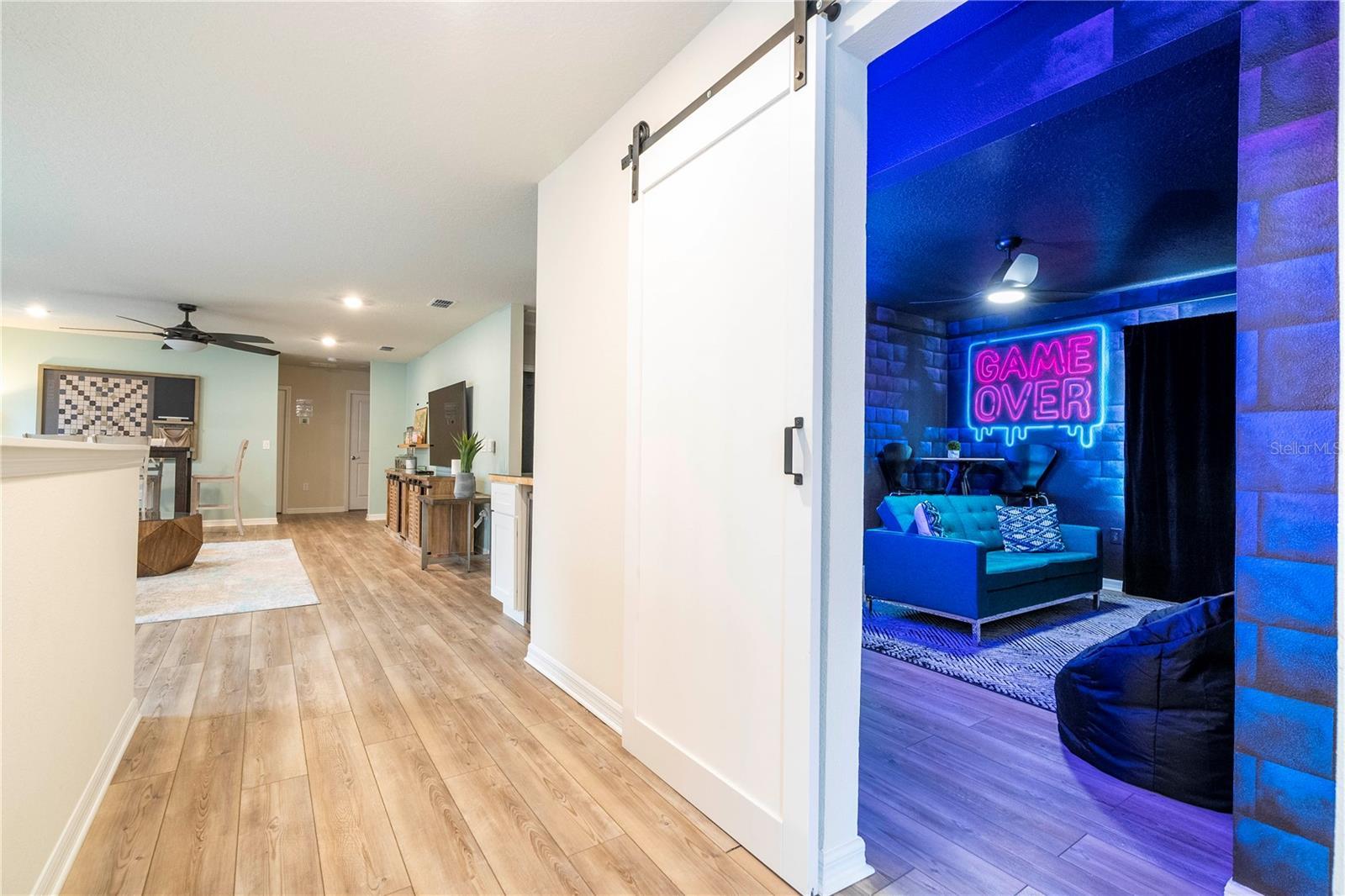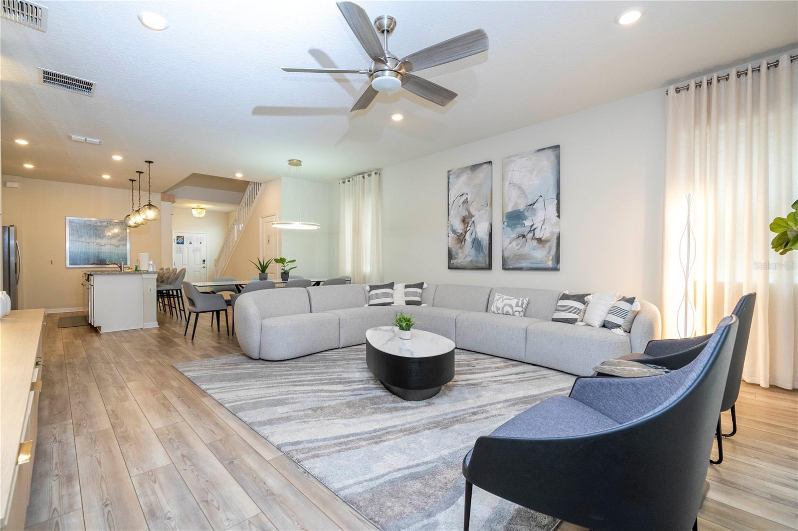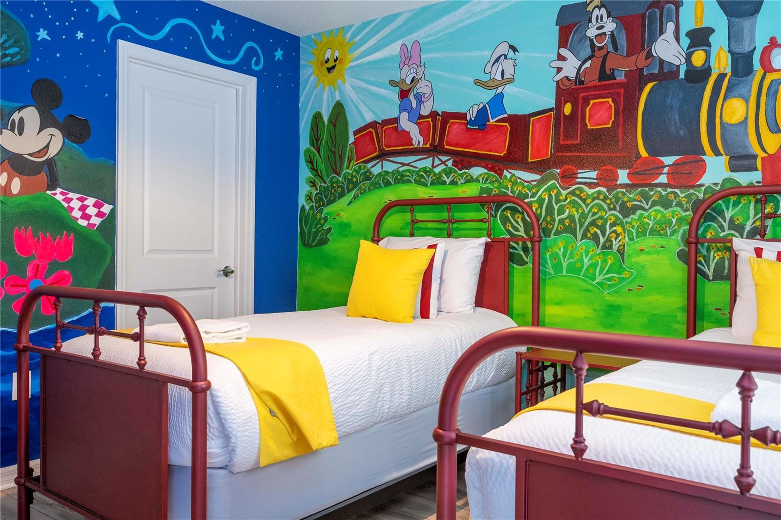 Best house in the neighborhood, turn key, nothing to do after receive the keys. Great opportunity to own this exceptional 7-bedroom, 5.5-bath vacation retreat was thoughtfully designed for luxury, comfort, and entertainment. One room was custom converted into a vibrant kids' game zone, complete with a full-size arcade machine, black lighting, and a dedicated video gaming station. Situated in one of the best locations within Windsor Island Resort, this home is just a short walk to the Clubhouse—providing quick access to all resort amenities. The home also enjoys a private rear view with no rear neighbors and a southeast-facing pool, offering sun exposure throughout most of the day—perfect for relaxing poolside or enjoying the heated spa. Inside, the home boasts designer modern furnishings, stylish décor, and modern vinyl plank flooring throughout, creating a fresh, upscale ambiance. The open-concept kitchen and living area open directly to the screened-in pool deck and covered patio, with peaceful views and beautiful sunrises. The main living area includes a 65” TV and very modern furniture. The downstairs master suite features a king bed and en-suite bath. The air-conditioned garage has been transformed into a game room with air hockey, ping pong, shuffleboard, and foosball. Upstairs, a second family room offers additional lounge space, board games, and a large-screen TV. The home features 3 king suites, 2 themed twin rooms, and a toddler reading nook incorporated into the Disney suite. This property is not only a luxurious retreat—it’s also a strong income-producing vacation rental. It comes with a solid track record of bookings and numerous future reservations already in place. The current professional management company has done a fantastic job and can continue managing the home for seamless income, although you're not obligated to keep them. Located in the highly desirable Windsor Island Resort, you’ll enjoy access to incredible amenities including a lagoon-style pool, lazy river, water slides, mini-golf, splash pad, fitness center, full-service restaurant and bar, hammock garden, and multiple sports courts. With its unbeatable location, private setting, resort access, and proven rental performance, this home is truly one of the finest opportunities in the Orlando short-term rental market.