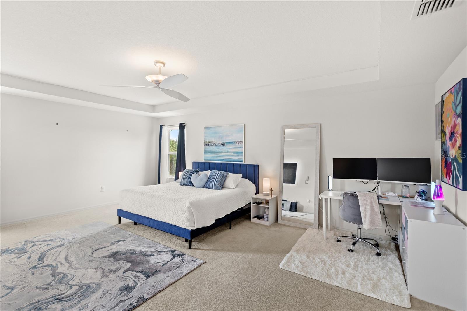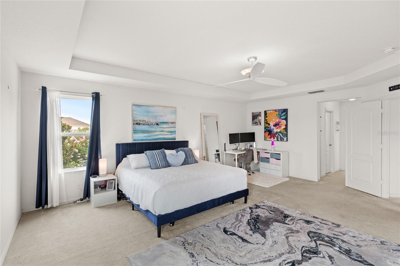- Ceiling Fans(s), Eat-in Kitchen, Kitchen/Family Room Combo, PrimaryBedroom Upstairs, Tray Ceiling(s), Walk-In Closet(s)