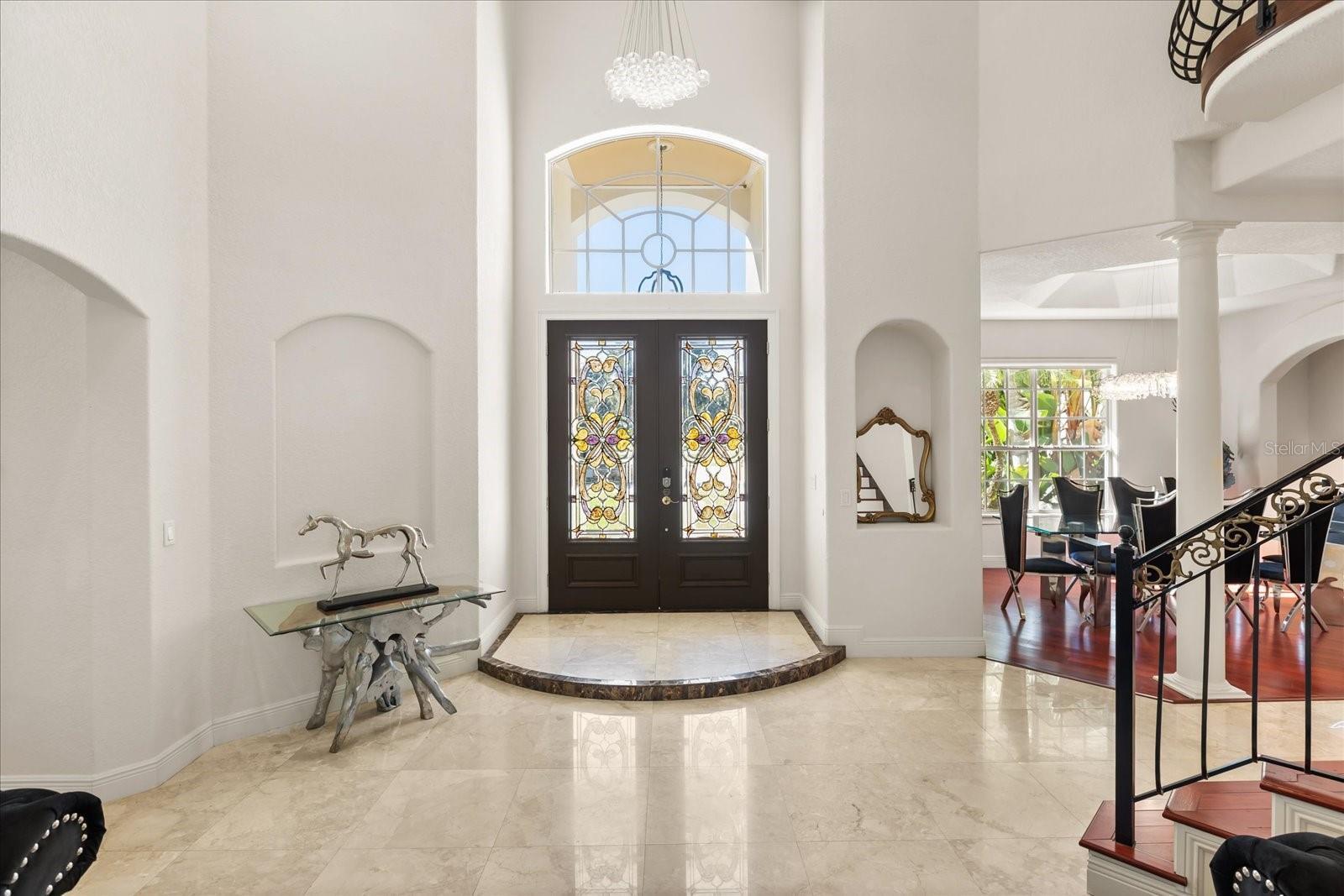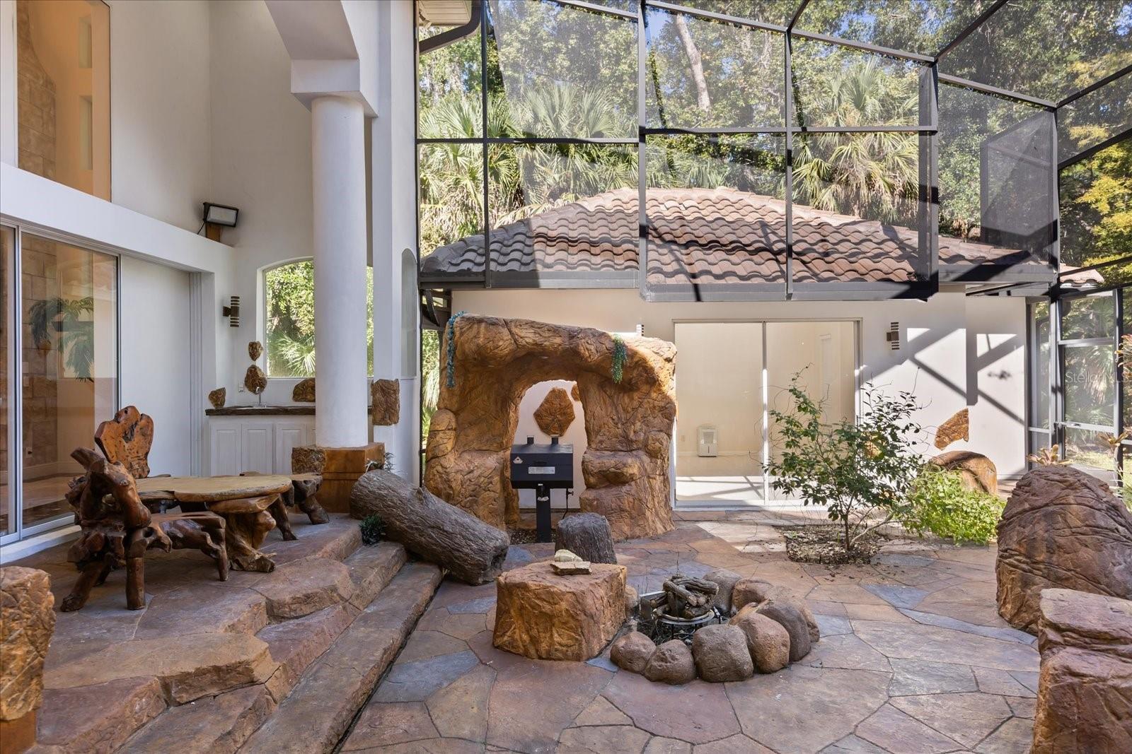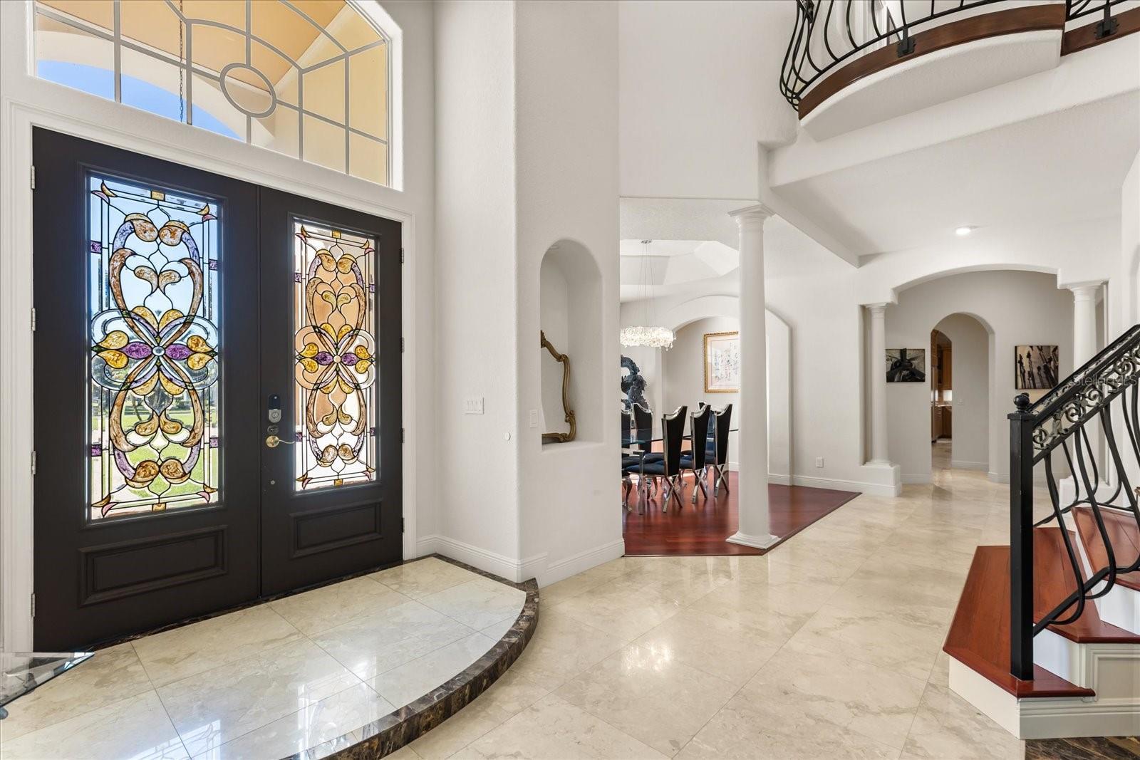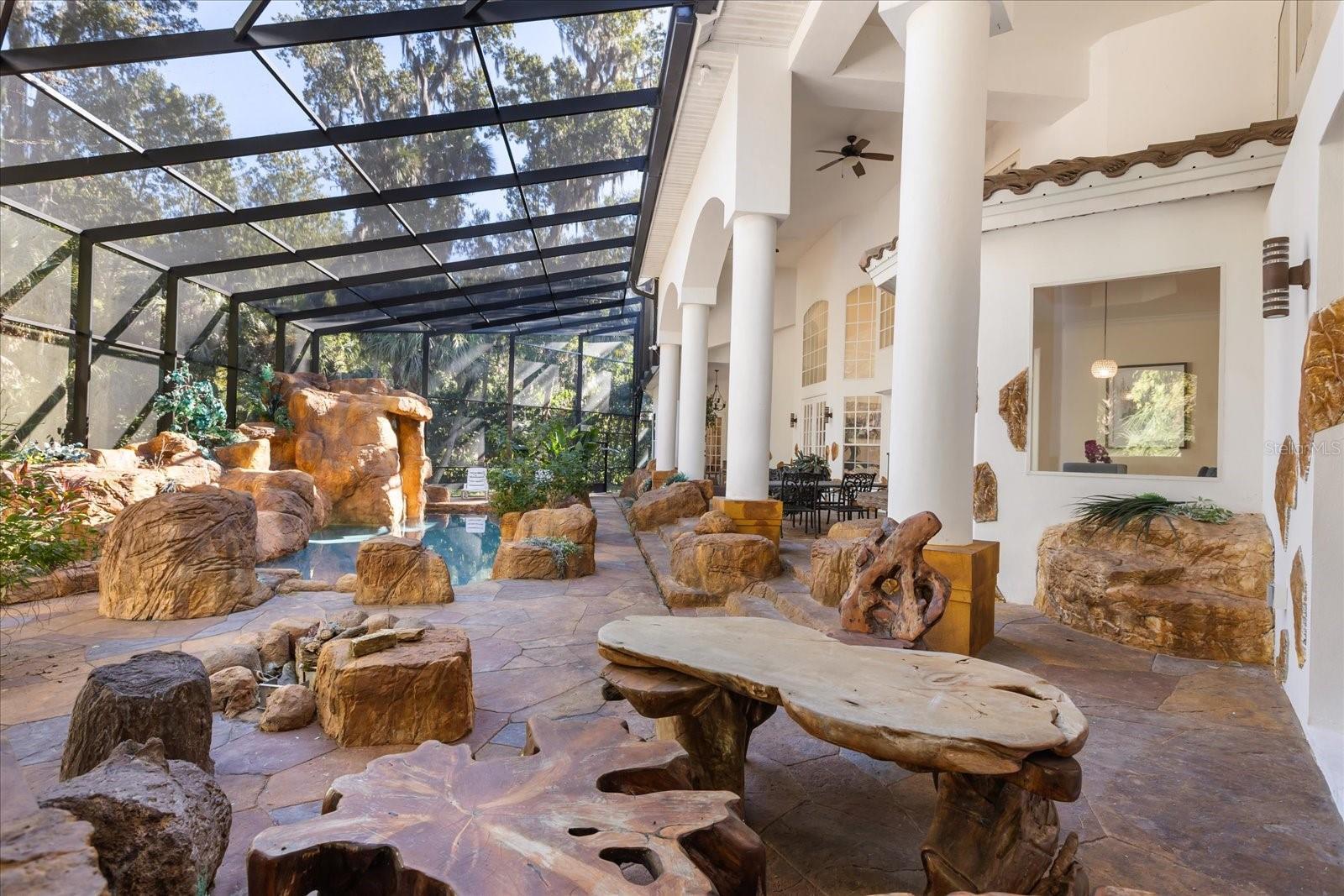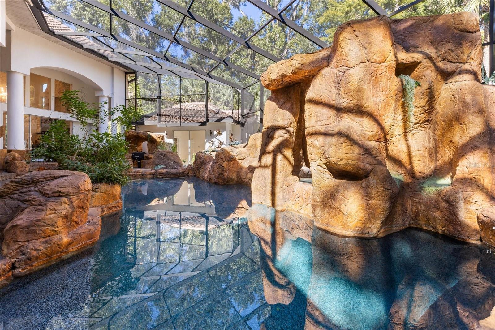 Welcome, to an elegant luxury estate blending architectural scale, premium finishes, and resort living in one of Lake Mary’s most private settings. Refined craftsmanship is evident throughout, with soaring ceilings, layered trim-work, rich bamboo and crema marfil marble floors, and remote-controlled blinds enhancing the home’s expansive living spaces. Designed for comfort and sophistication, the estate offers formal and casual living areas, plus a dedicated office framed with French doors. The chef’s kitchen features granite surfaces, upgraded cabinetry, premium appliances, and a true butler’s pantry for service, storage, and prep. The primary master suite is located on the first floor, offering privacy and serenity with dual custom walk-in closets and a spa caliber en suite. Here, floor-to-ceiling tile, frameless glass, a stone-lined niche, upgraded flooring, and refined fixtures create a retreat tier experience. A second master suite upstairs acts as its own private wing, complete with a personal sitting area, walk-in closet, and a beautifully upgraded en suite bathroom. In total, the home showcases five spacious bedrooms, with additional guest suites featuring balcony access and fully updated baths with premium tile-work, modern vanities, and upscale fixtures. Separate from the main residence is a guest house, perfect for in-laws, extended stays, or private hosting. It includes its own upgraded bathroom with frameless glass shower enclosure, tile niche, modern vanity, and refined finishes, offering comfort, independence, and luxury equal to the main residence. The estate’s crown jewel is its dramatic, fully screened pool retreat, a breathtaking grotto style environment carved with stone formations, spa-style alcoves, integrated greenery, multiple lounge zones, and serene viewing angles from nearly every indoor space. This indoor-outdoor oasis delivers year round comfort, privacy, and destination level ambience. Every detail from upgraded baths, granite surfaces, induction cooking, customized closets, and butler’s pantry to the private office, dual master suites, guest house, and extraordinary grotto pool, reflects a standard of living rarely found. Thoughtful enhancements, newer roof(2019), entire house replumbed (2025), upgraded bathrooms, induction kitchen, remote blinds, customized closets, butler’s pantry, private office, multi-suite layout, and one of a kind pool design, define the elevated lifestyle of this exceptional estate. Experience luxury, privacy, and resort serenity at this exclusive residence!